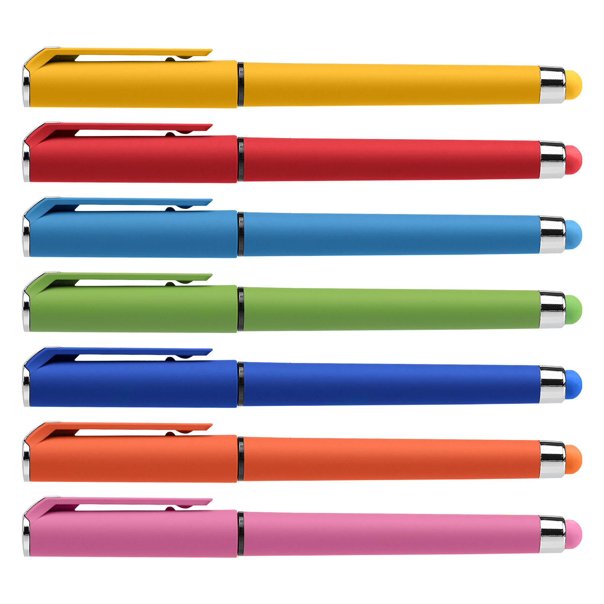 The Islander Softy Brights Gel pen combines three top customer-favorites: gel ink, soft-touch rubberized finish, and bright colors. This colorful cap-off pen also features a black rubberized grip and chrome accents, and a colorful stylus that matches the barrel. This is a fantastic item for trade shows, job fairs, and so much more. .