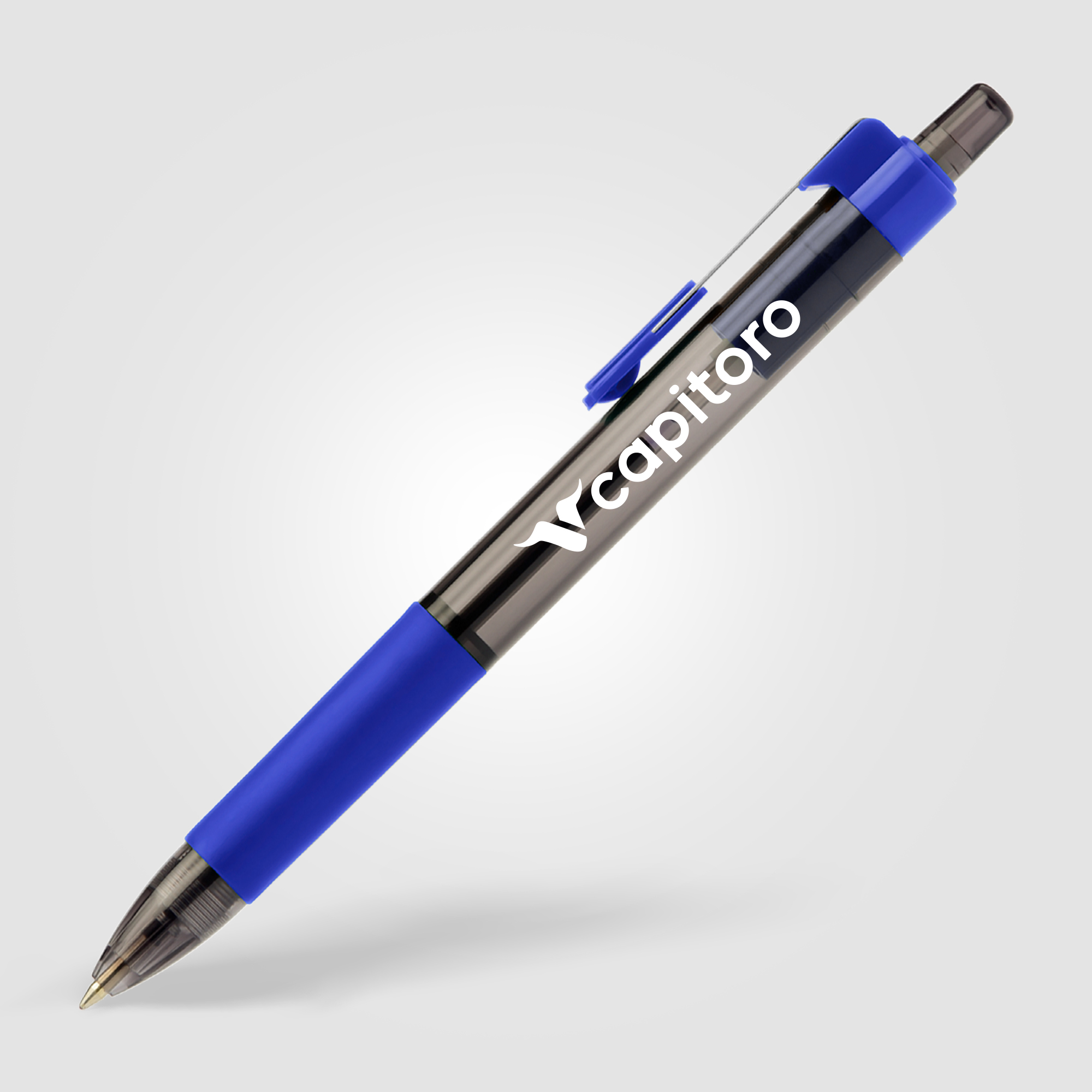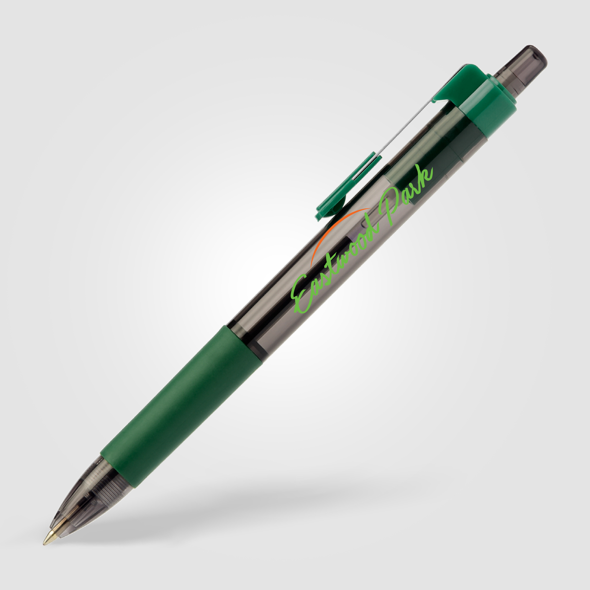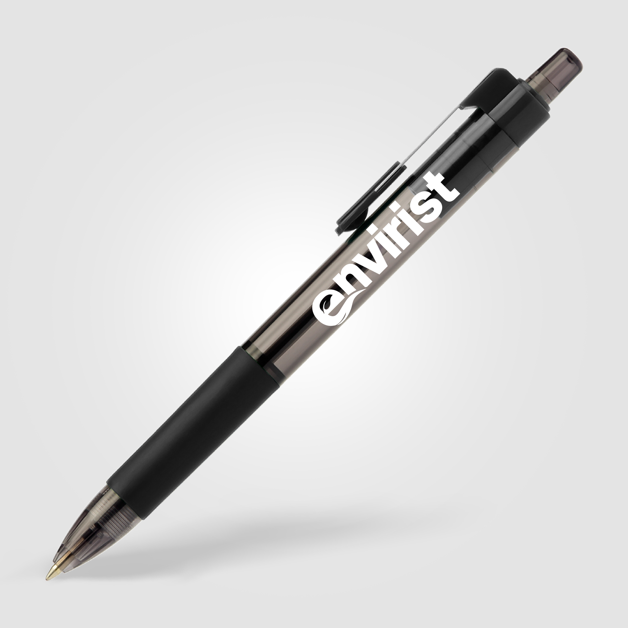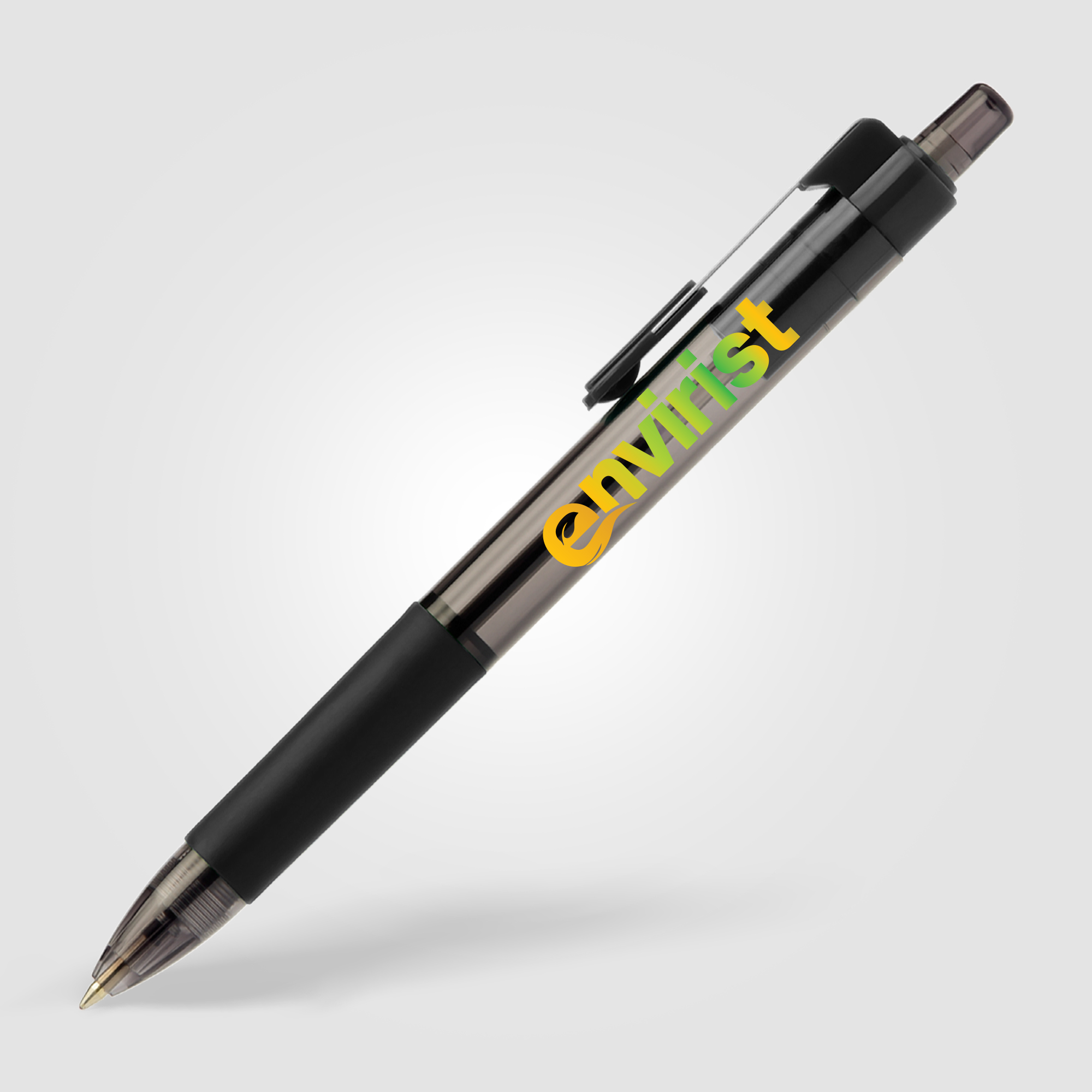 Maximize your writing experience with the new StarGlide Gel pen - now with smooth, satisfying Gel ink. This plastic pen features a smoky-black translucent barrel, plus a comfortable rubberized grip for added comfort. We'll customize the pen with your company's logo using a crisp, white silkscreen imprint.