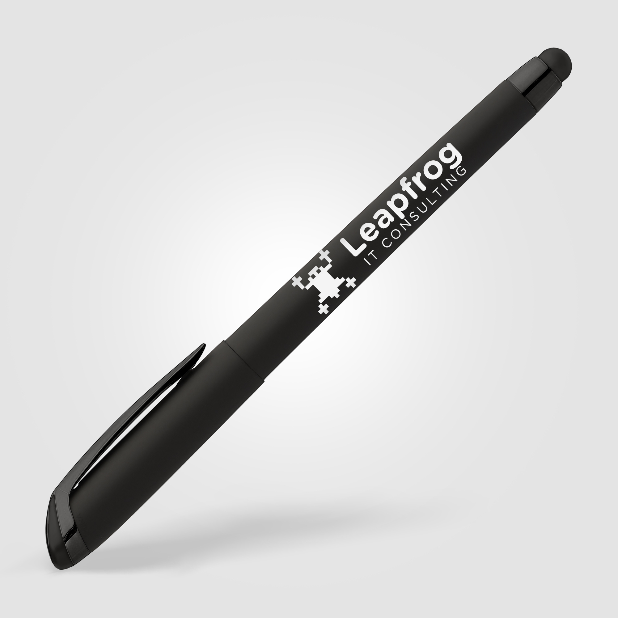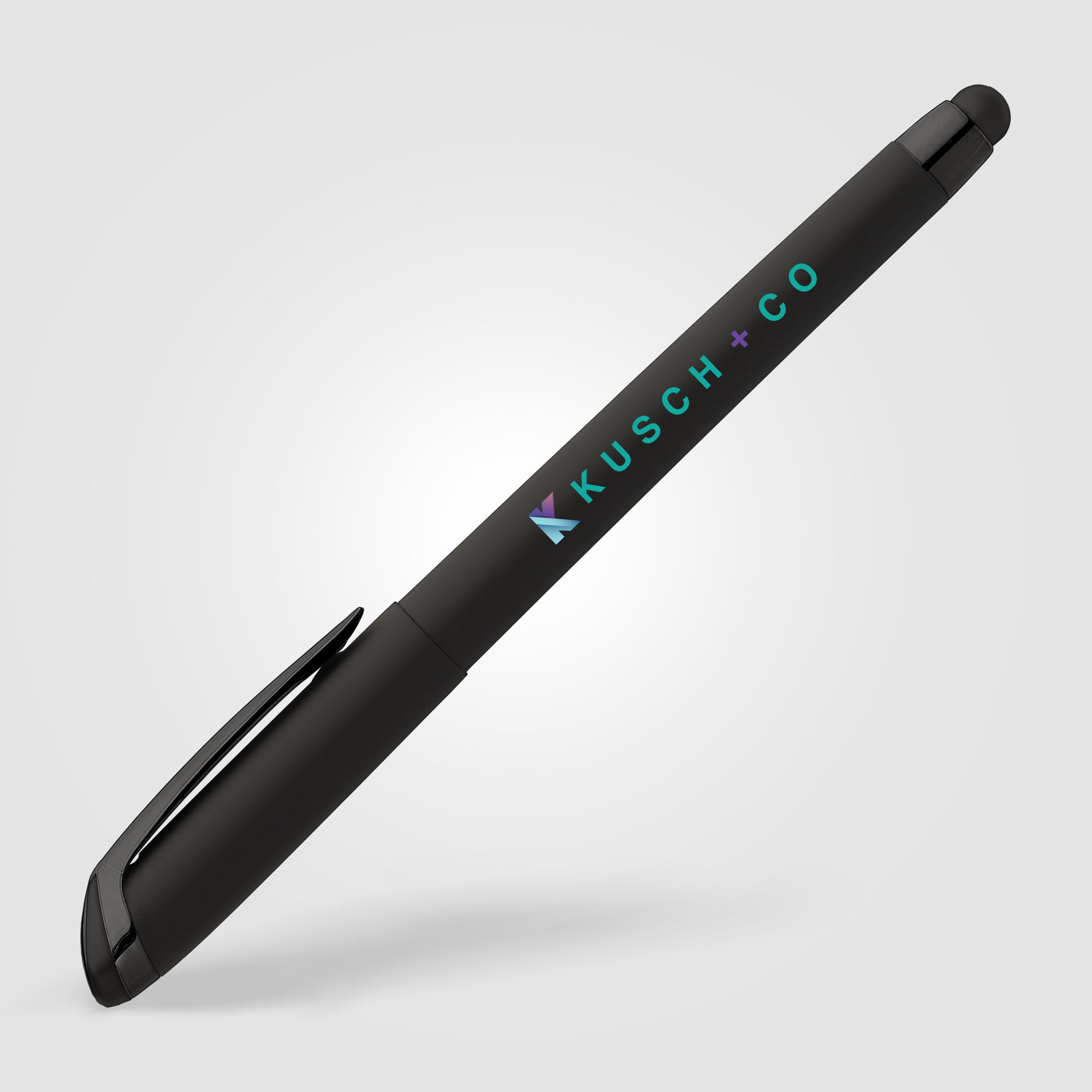 Our Gazelle Gel Softy Monochrome Pen will be a fast favorite for your customers - they'll love the comfortable rubber finish barrel, matching cap, accents, contoured grip, and touchscreen-compatible stylus. Plus, enjoy smooth gel ink for a premium writing experience. Show your brand's true colors with ColorJet, our full-color inkjet imprint process.