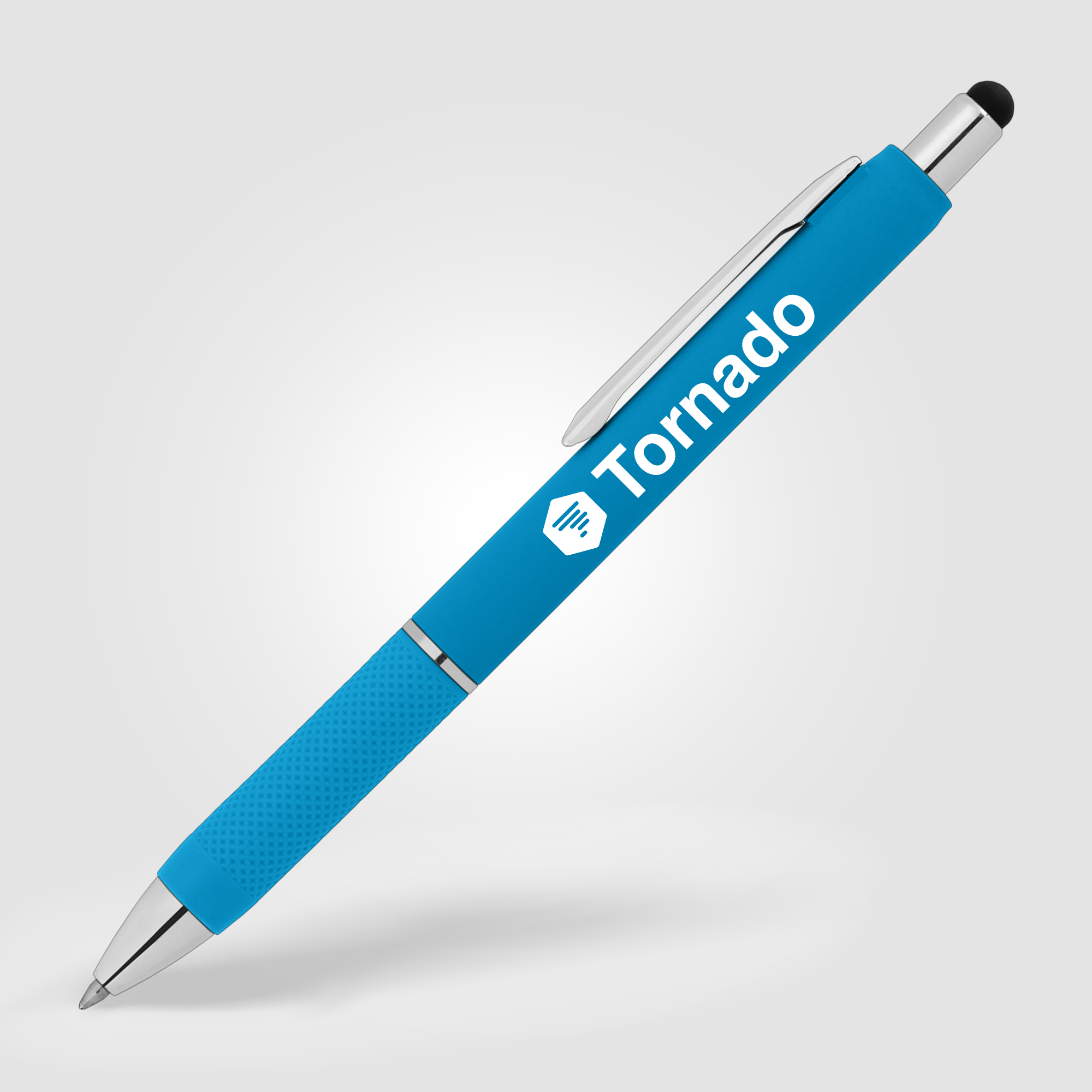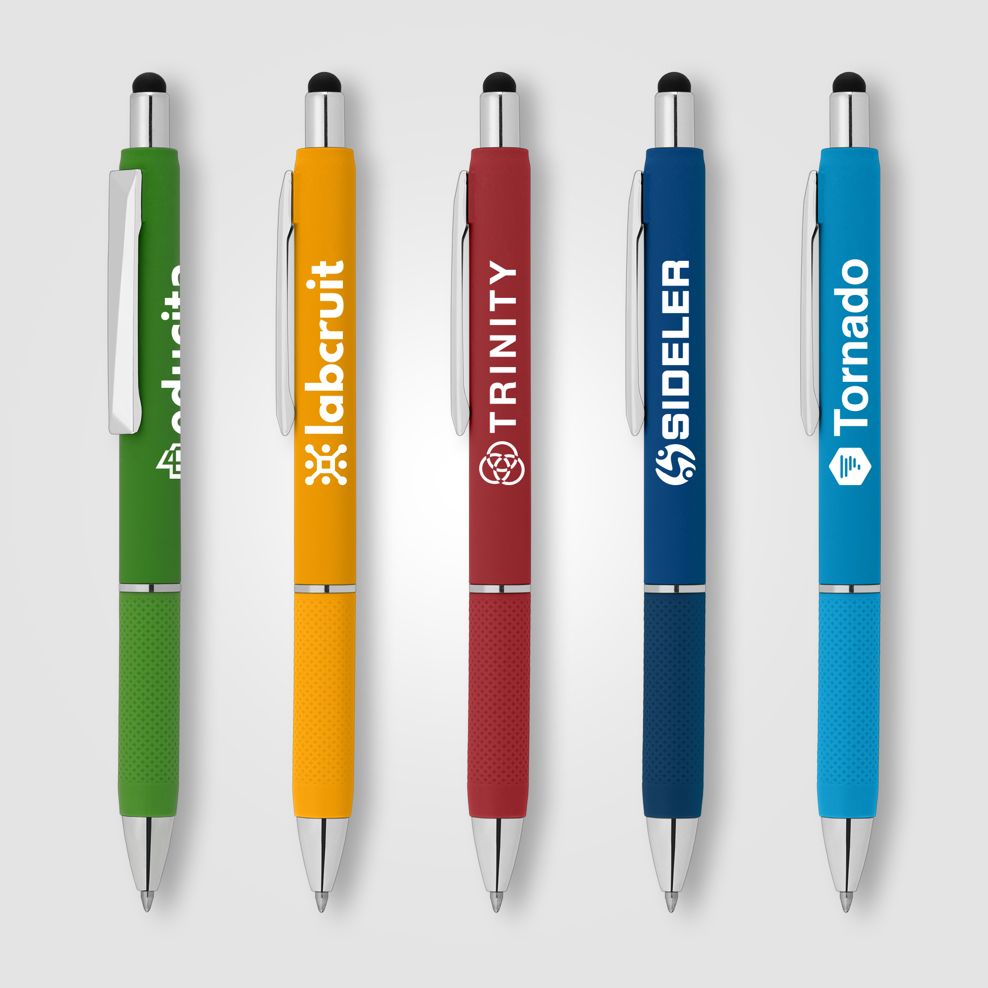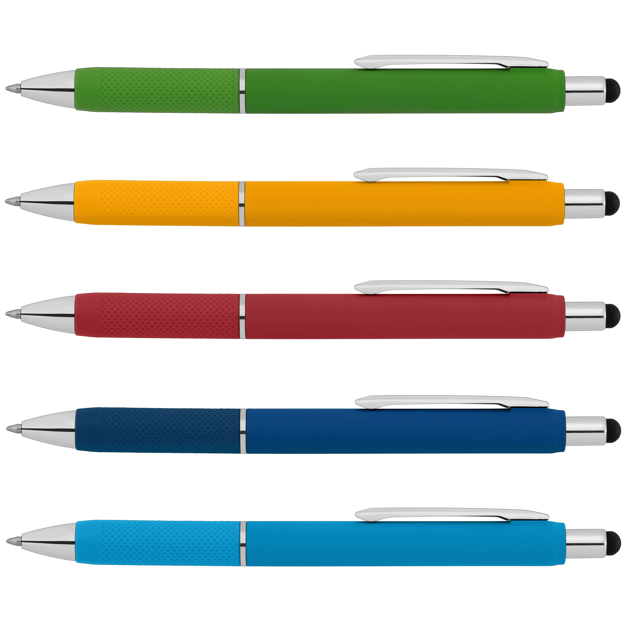 Experience the effortless joy of writing with our Serena Retractable Gel Stylus Pen. This retractable plastic pen combines vibrant colors with a comfortable grip, offering a smooth and enjoyable writing experience with its sleek gel ink. The bright ABS plastic barrel features a colorful rubber finish, while the chrome-trimmed tip, ring, clip, and plunger add a touch of sophistication. The pen is not only a pleasure to write with but also includes a black stylus for seamless transitions between paper and digital devices.