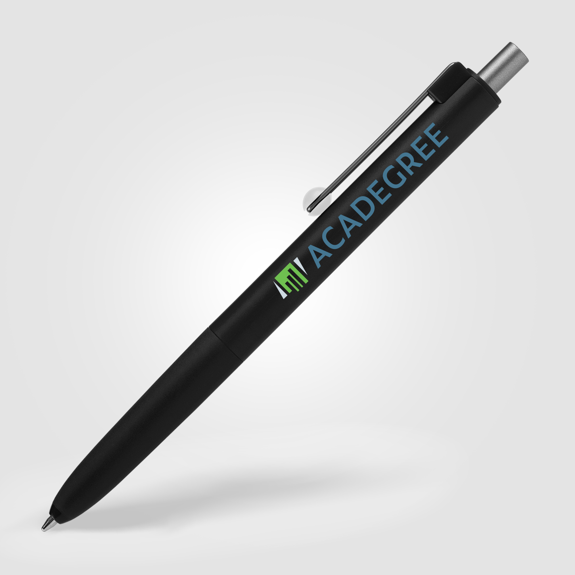 Introducing our innovative Serenity Fidget Recycled Pen, designed to elevate your focus and productivity while relieving stress and anxiety. Thoughtfully designed with Recycled ABS plastic, this fidget pen is more than just a writing tool—it's a companion for channeling your concentration. The smooth gliding plastic ball, effortlessly moves up and down the classy steel gunmetal clip, providing tactile stimulation to keep you engaged and centered on your tasks. With a retractable slim refill and featuring a plastic plunger with gunmetal finish, this pen combines functionality with style seamlessly.