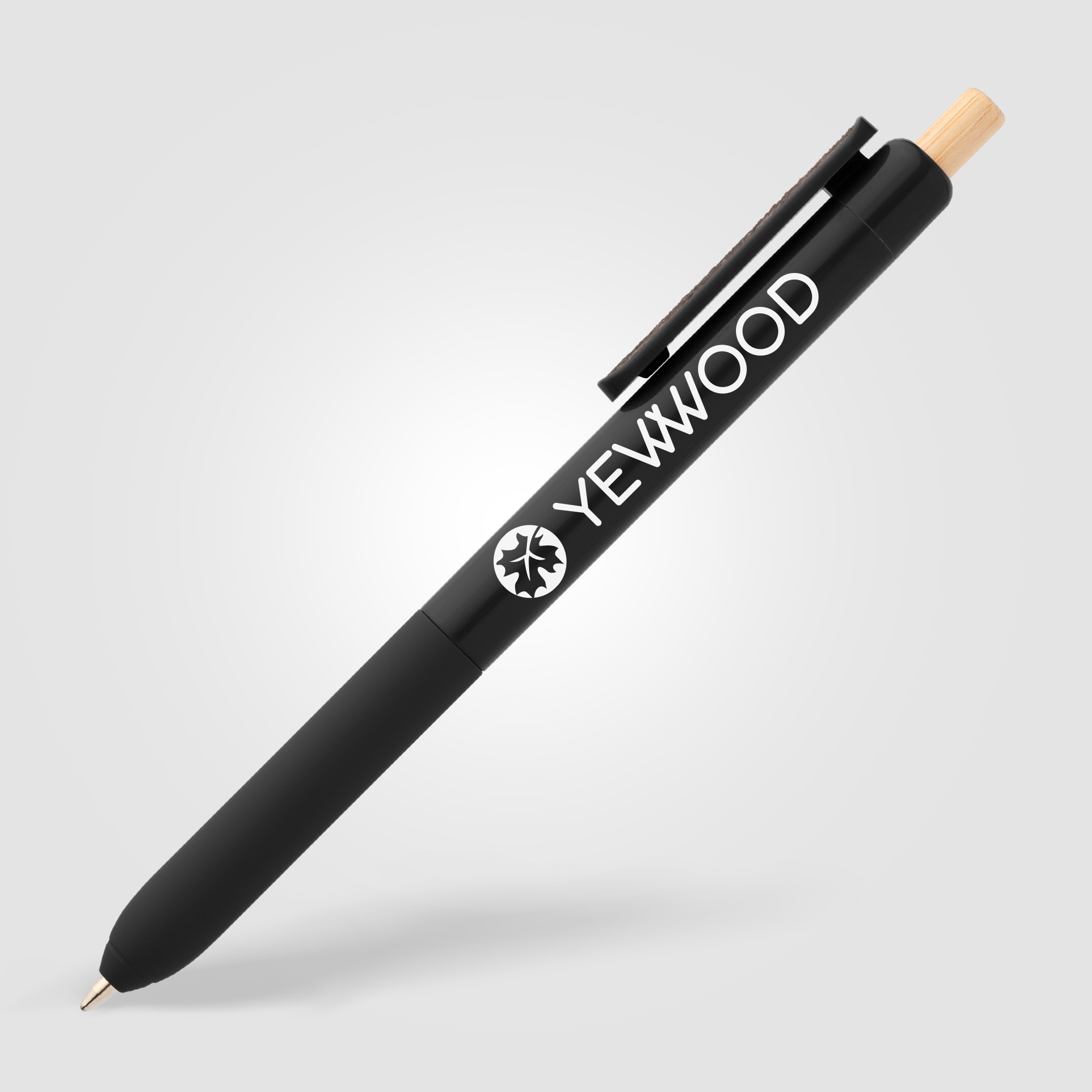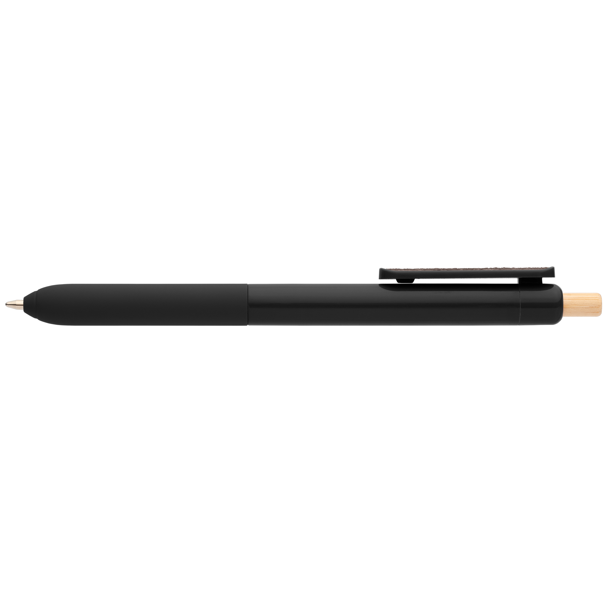 Designed for comfort and calm, the Echo Recycled Plastic Sensory Clip Pen made of RABS plastic, features a double-injected barrel with a soft-touch grip for a pleasant writing experience. A sensory sticker, affixed to the clip and color-matched to the barrel, adds a calming element to help ease stress and anxiety. The bamboo plunger offers a natural touch, while the Parker ballpoint refill with Dokumental ink provides a smooth 800m write-out.