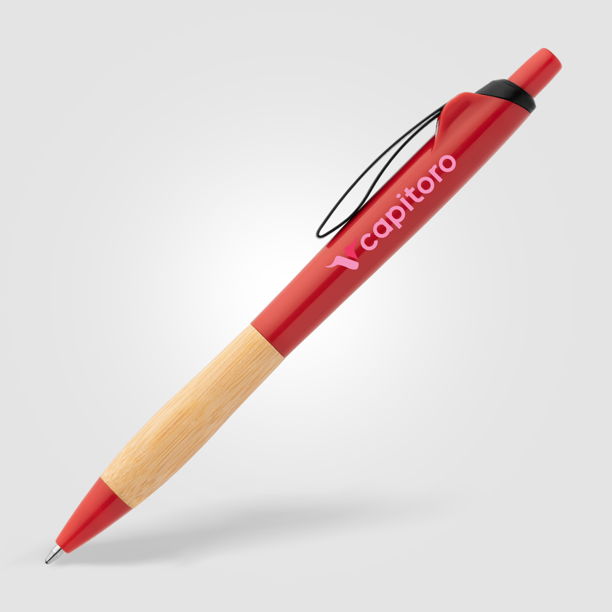 The Crest Recycled Plastic Curvy Pen features an RABS molded plastic tip, barrel, and plunger, with a curvy bamboo grip for a comfortable writing experience. The black-painted steel clip adds a sleek contrast, and the plunger color matches the barrel for a unified look. Equipped with a slim refill and Dokumental ink, it provides a smooth 800m write-out with a 1.0mm tip.