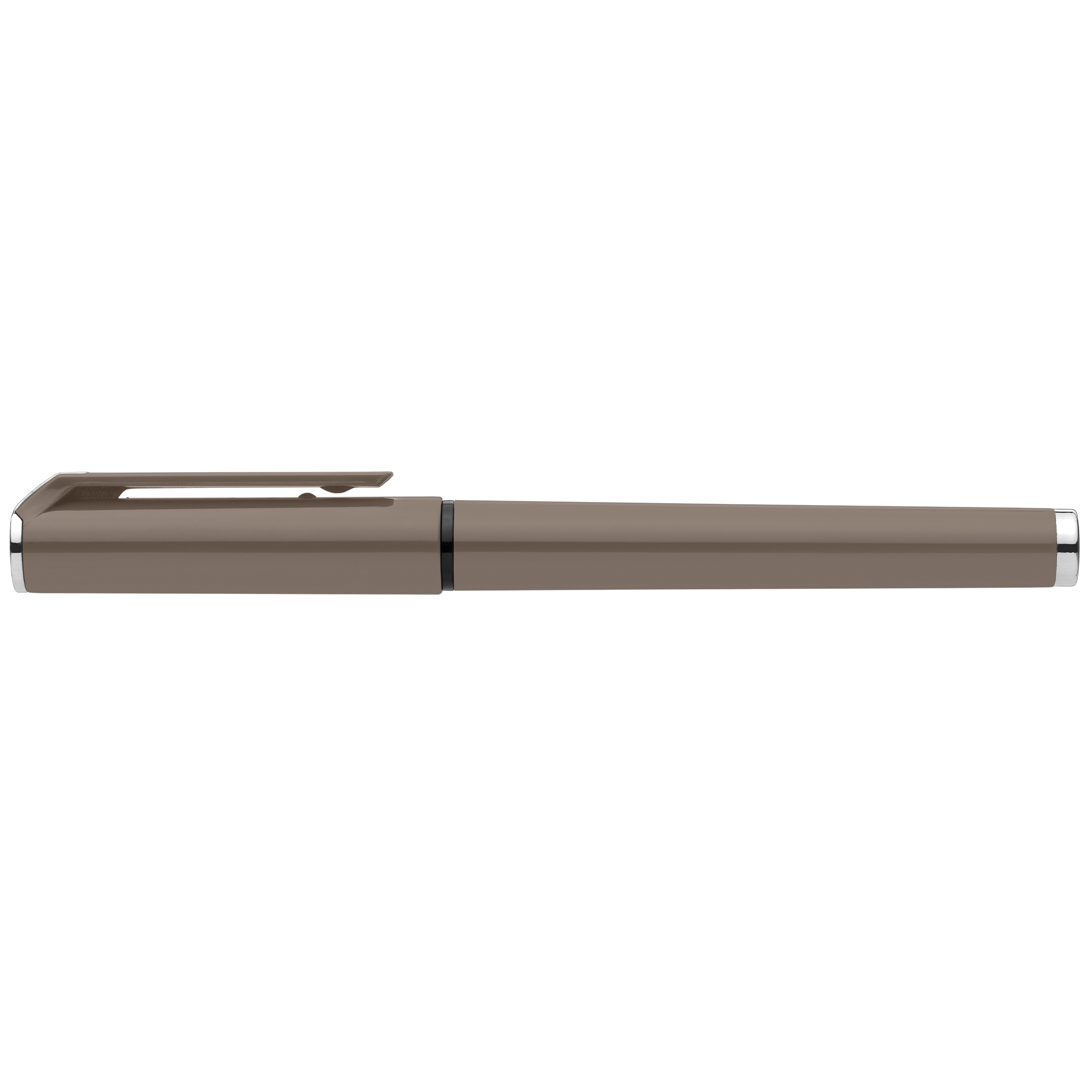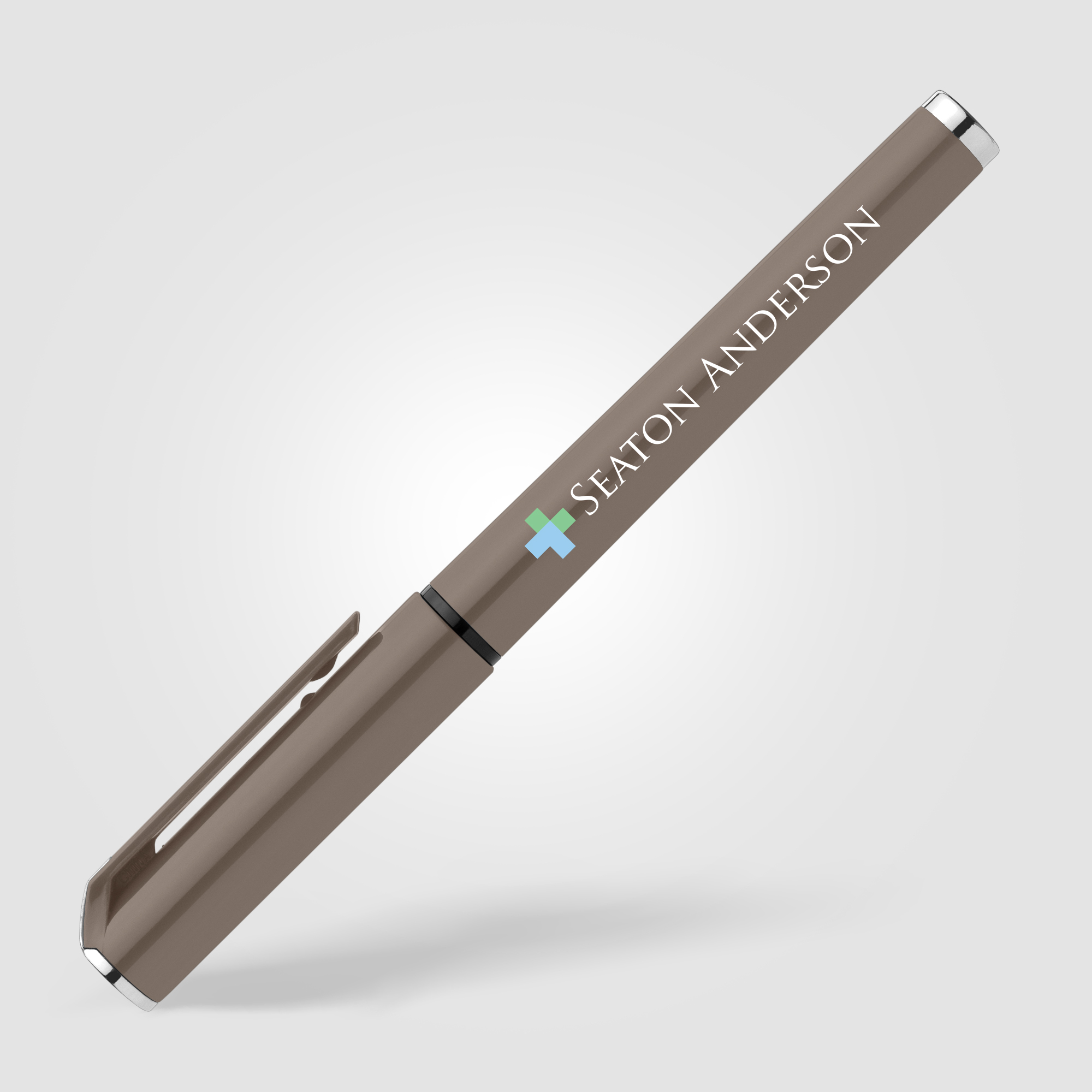 Discover the Islander, a smooth-writing gel pen with a chic, sophisticated style. This monochrome pen's barrel is made from recycled plastic (rABS), featuring a shiny, molded color and cap. The design is subtly elegant, featuring a comfortable black rubber grip and sophisticated gunmetal accents on the tip, top, and end plug that enhance its cohesive, high-end look. The Islander is equipped with a slim gel ink refill and 0.7mm tip that offers a 400-meter write out. Available in both black and blue ink, this pen provides a premium writing experience with a modern, monochromatic finish.