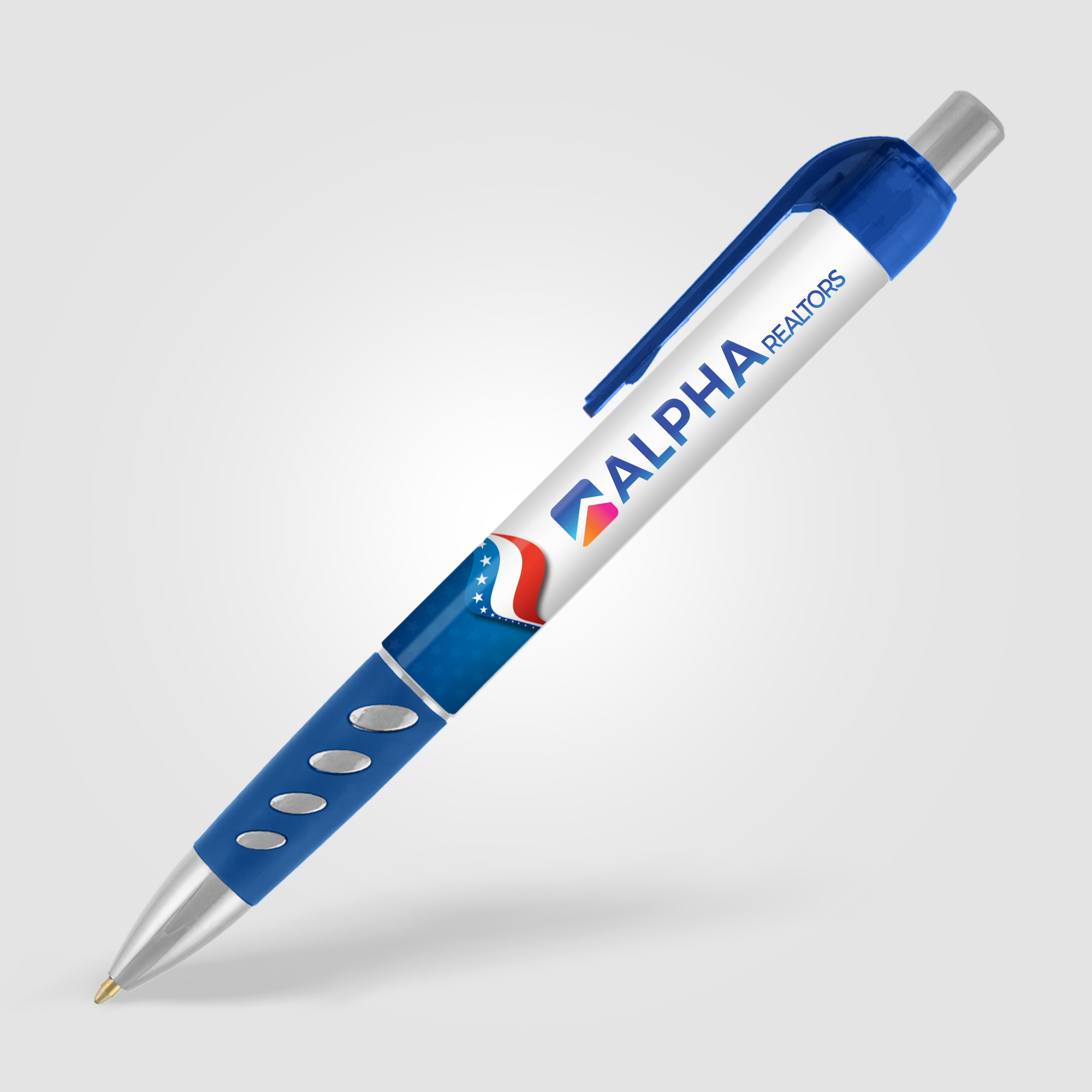 ***Temporarily unavailable.*** See your path to success clearly with the help of the Sprinter Pen! This unique design features a colored grip and matching translucent plastic clip along with contemporary chrome highlights. It features our SimpliColor printing process, yielding one of the largest one to four color process imprints and virtually unlimited color options. Our gelike Eversmooth® hybrid ink gives an extraordinary writing experience in black and blue ink choices.