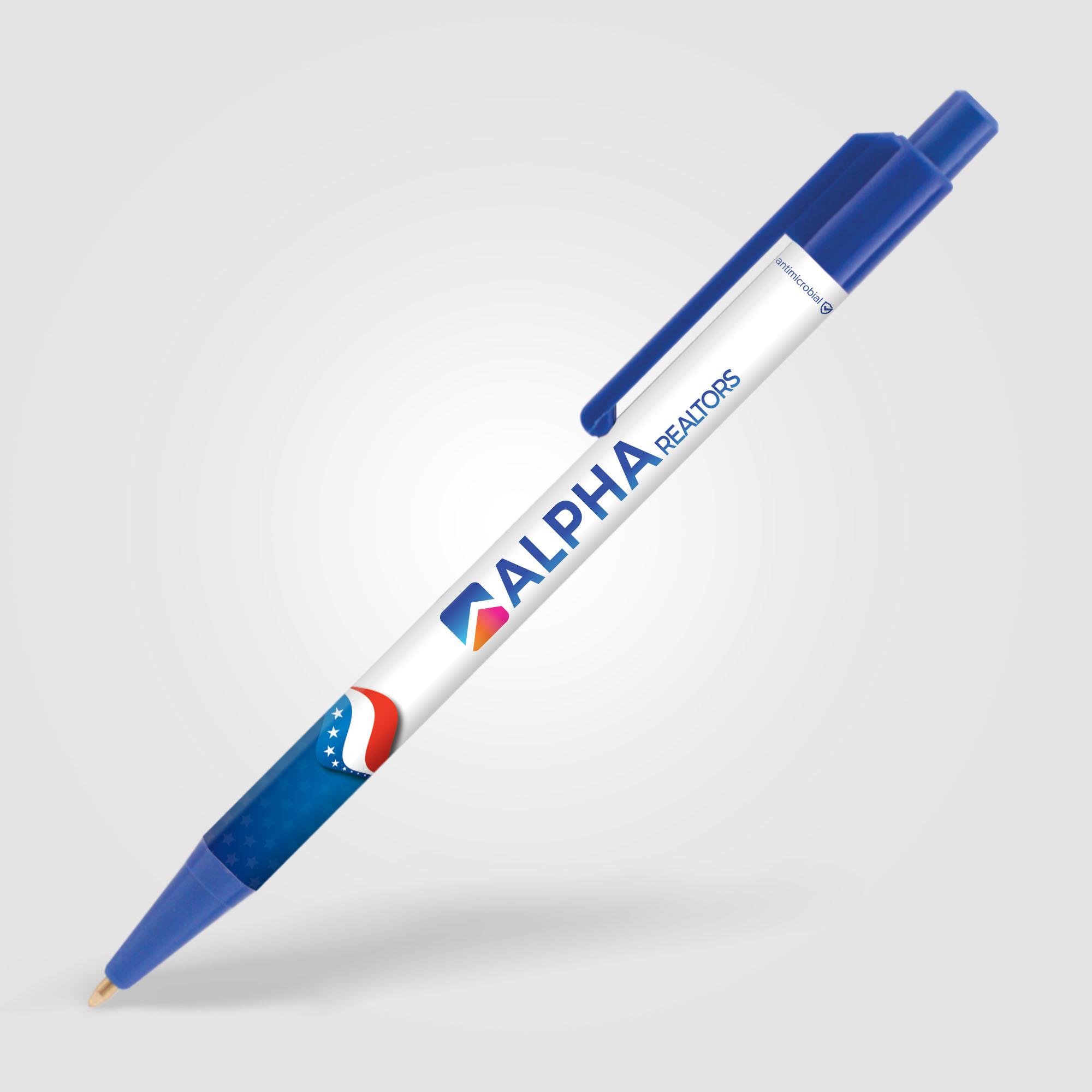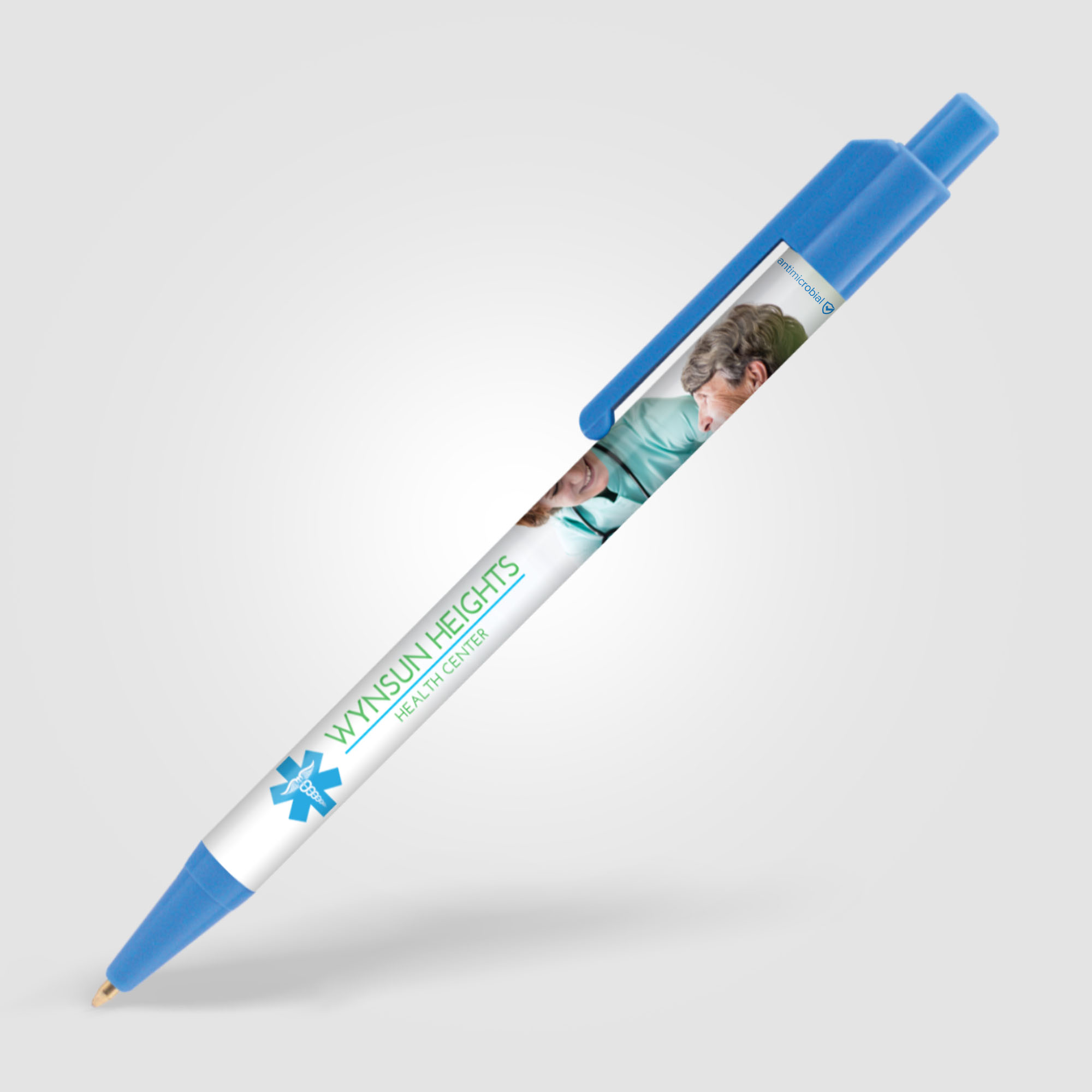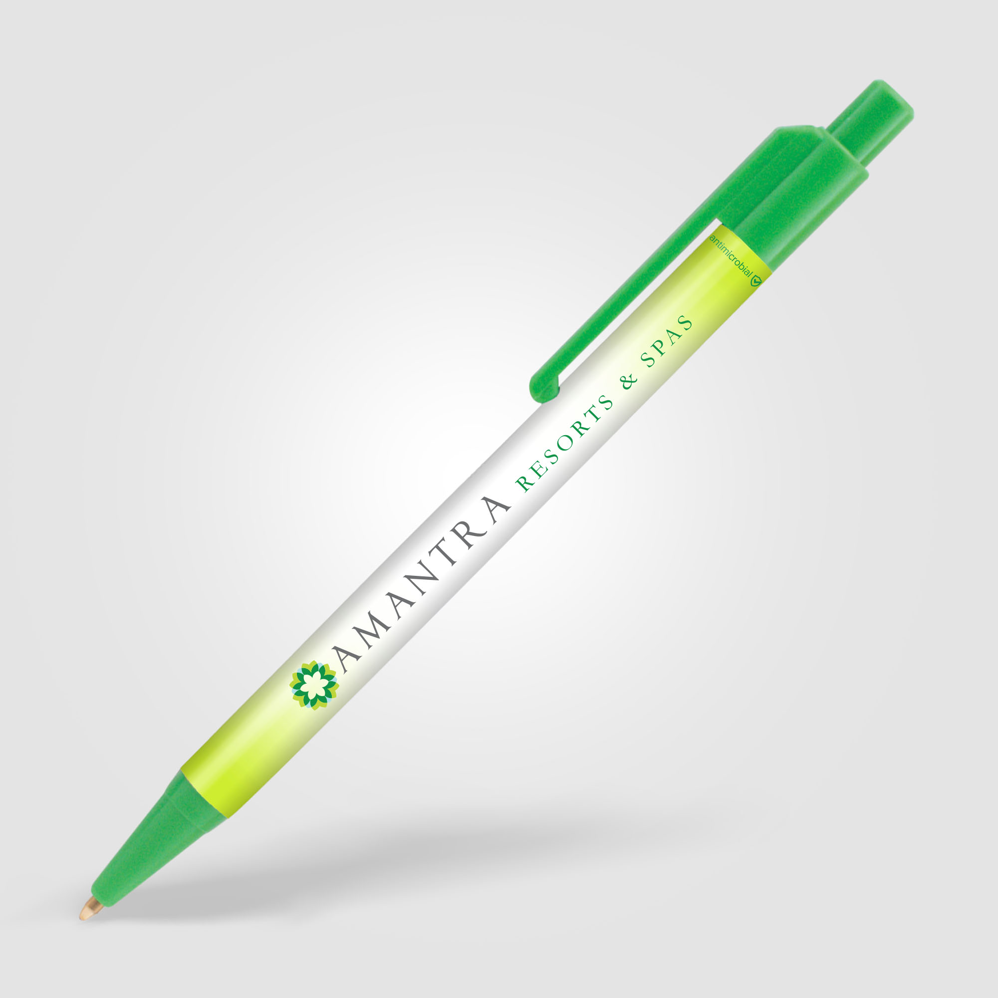 ***Temporarily unavailable.*** Our new Colorama AM Pen is formulated with an antimicrobial additive that is included in the exterior plastic parts. The additive technology provides antimicrobial product protection against unwanted microorganisms that could damage the pen. Decorated with our full-color, SimpliColor 360 full-wrap imprint technology and offered with our gel-like, black Eversmooth (R) Ink, this retractable ballpoint is a great addition to any business.