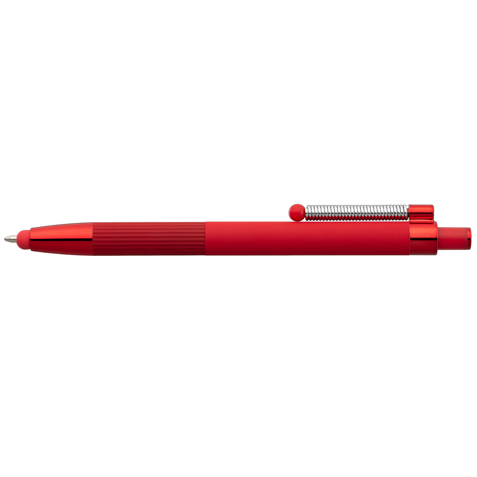 Experience the perfect blend of focus and function with the Lisbon Recycled Aluminum Monochrome Fidget Stylus Pen. Crafted from recycled aluminum with a soft-touch finish, it features a Parker-style refill with 1.0 mm Dokumental® ink for smooth writing. The RABS plastic tip and plunger are UV color-matched to the barrel for a seamless monochrome look, while the color-matched rubber stylus ensures smooth touchscreen interaction. A steel spring clip with a molded RABS ball tip adds a satisfying fidget element—perfect for easing busy hands during the day. Available in Red, Royal, Teal, White, and Black, Lisbon delivers writing comfort, visual harmony, and subtle stress relief in one sleek tool.