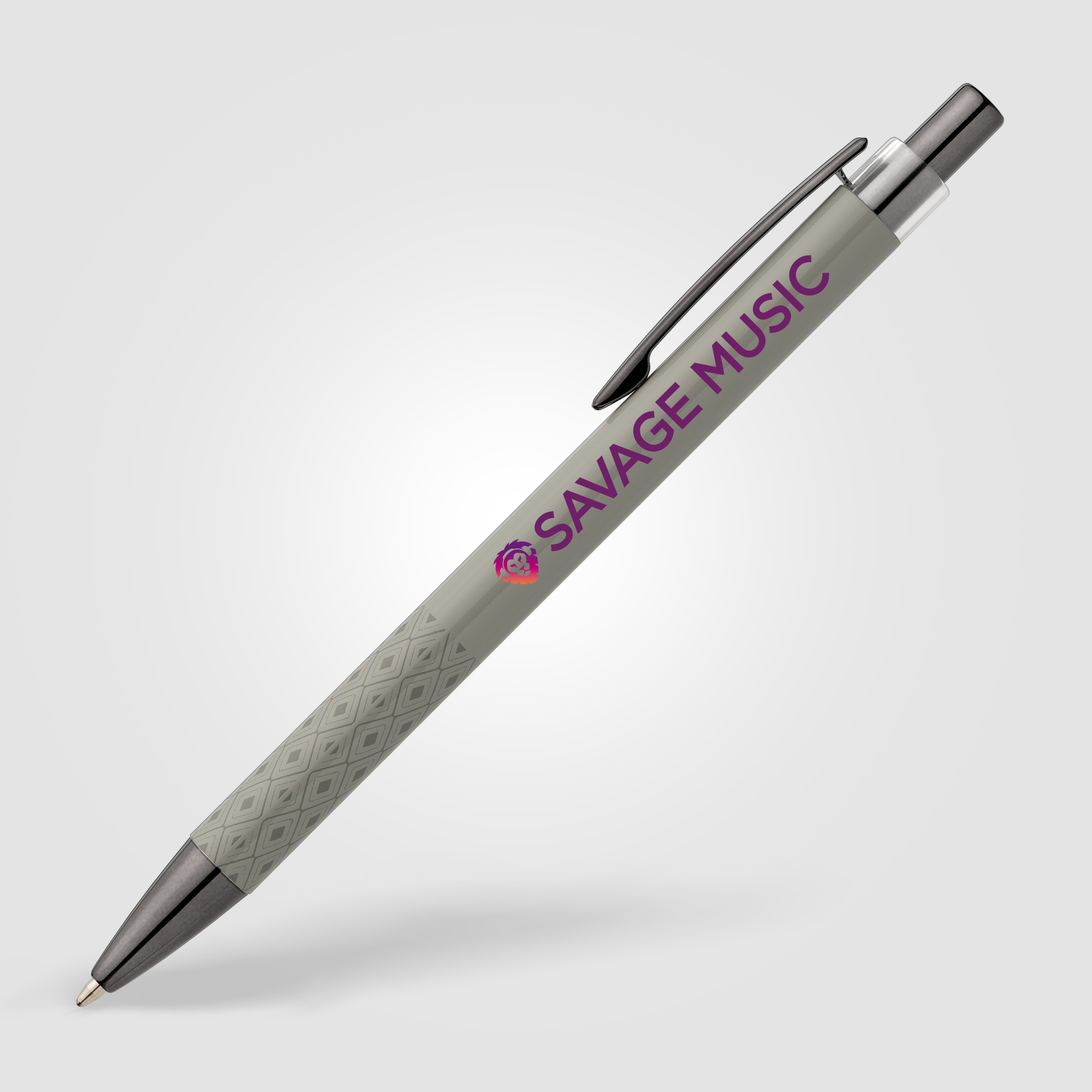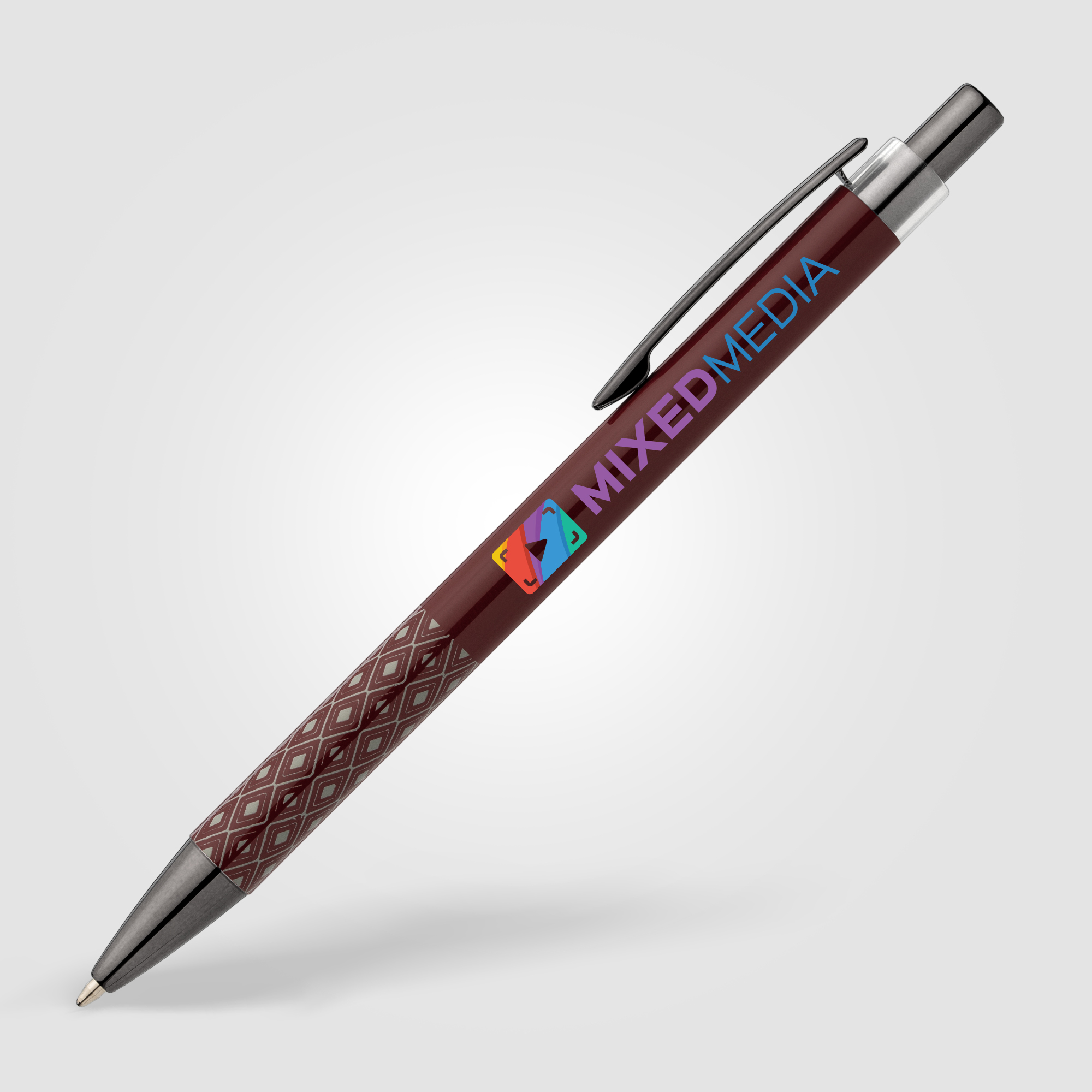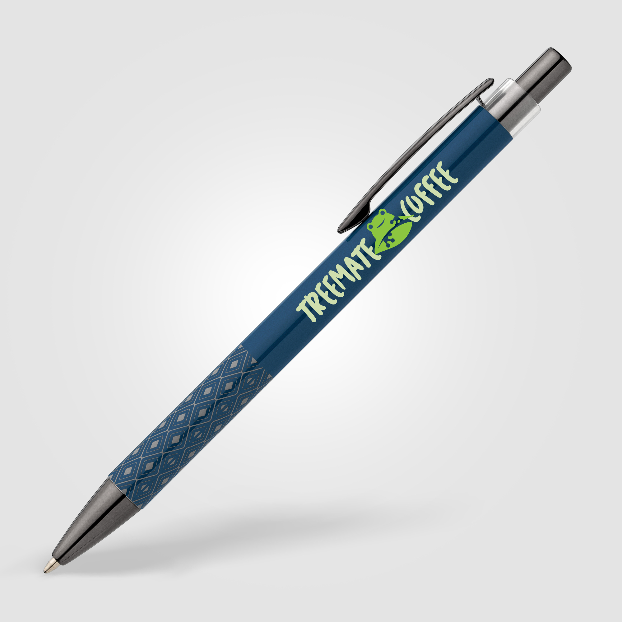 Meet a modern writing tool that beautifully balances alternative materials and sophisticated design. This retractable pen features a sleek, anodized barrel crafted from recycled aluminum. A subtle tonal pattern is printed on the grip area for enhanced feel and style. The pen boasts a high-end look with dark shiny gunmetal finishes on the tip, plunger, and the steel clip, which contrasts beautifully with the colored barrel. Equipped with a slim German Dokumental ink refill, this pen delivers smooth black ink through a 1.0mm tip and provides a reliable 500-meter write out length, making it a stylish and dependable choice for daily use.