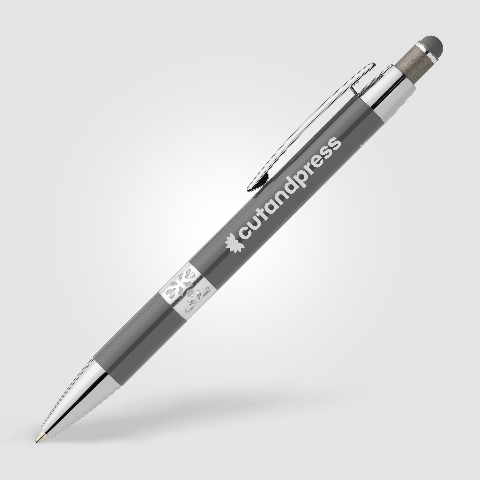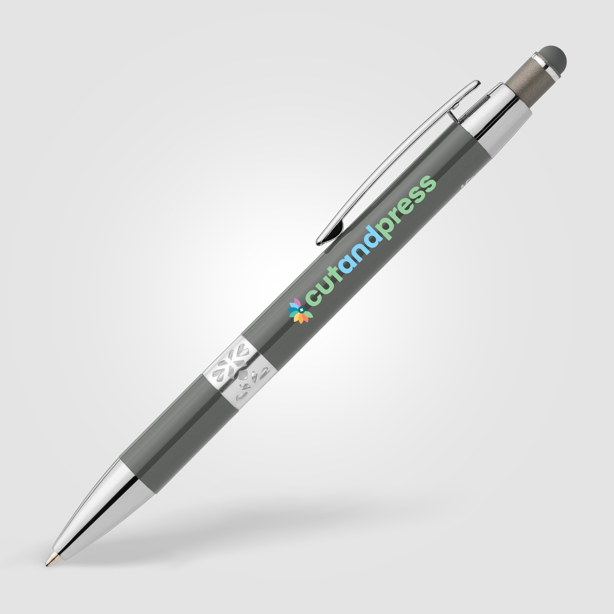 Meet true precision, the Adorn Pen is a stylish, retractable ball pen designed for modern efficiency. This pen features a sleek, painted barrel crafted from recycled aluminum for a premium feel. Its distinctive design element is the special cutting ring near the grip, which is covered with a clear layer, adding a subtle touch of elegance and visual texture. The pen boasts chrome trim on the tip, clip, and plunger, while a matching colored rubber stylus is conveniently integrated into the top of the plunger. Equipped with a slim German Dokumental ink refill, the Adorn delivers smooth writing through a 1.0mm tip and provides a reliable 500-meter write out length in both black and blue ink, making it a perfect blend of form and function.