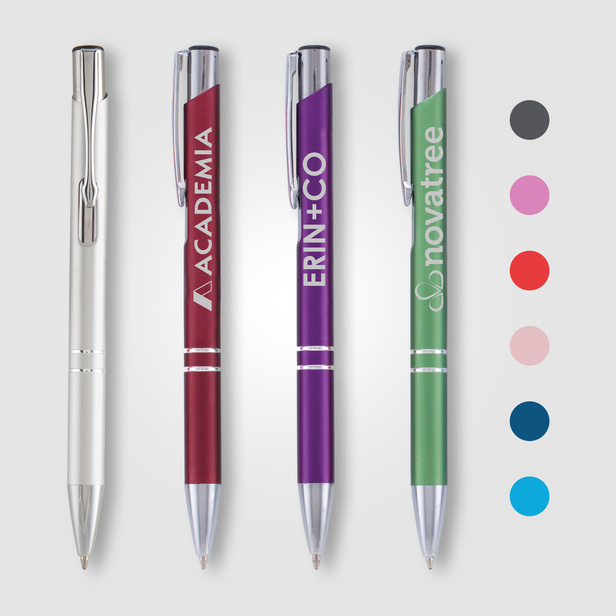 Spruce up your advertising campaign by adding a fun splash of color with this aluminum Matte Tres-Chic pen! Our best-selling Tres Chic pen just got better with a variety of vibrant matte color choices that are paired with polished chrome accents. The medium ballpoint pen features black ink and plunger action, helping your company click with new and potential customers right away. Customize this pen using ColorJet, our full-color, photo-quality direct imprint process that makes it easy to show your brand's true colors.