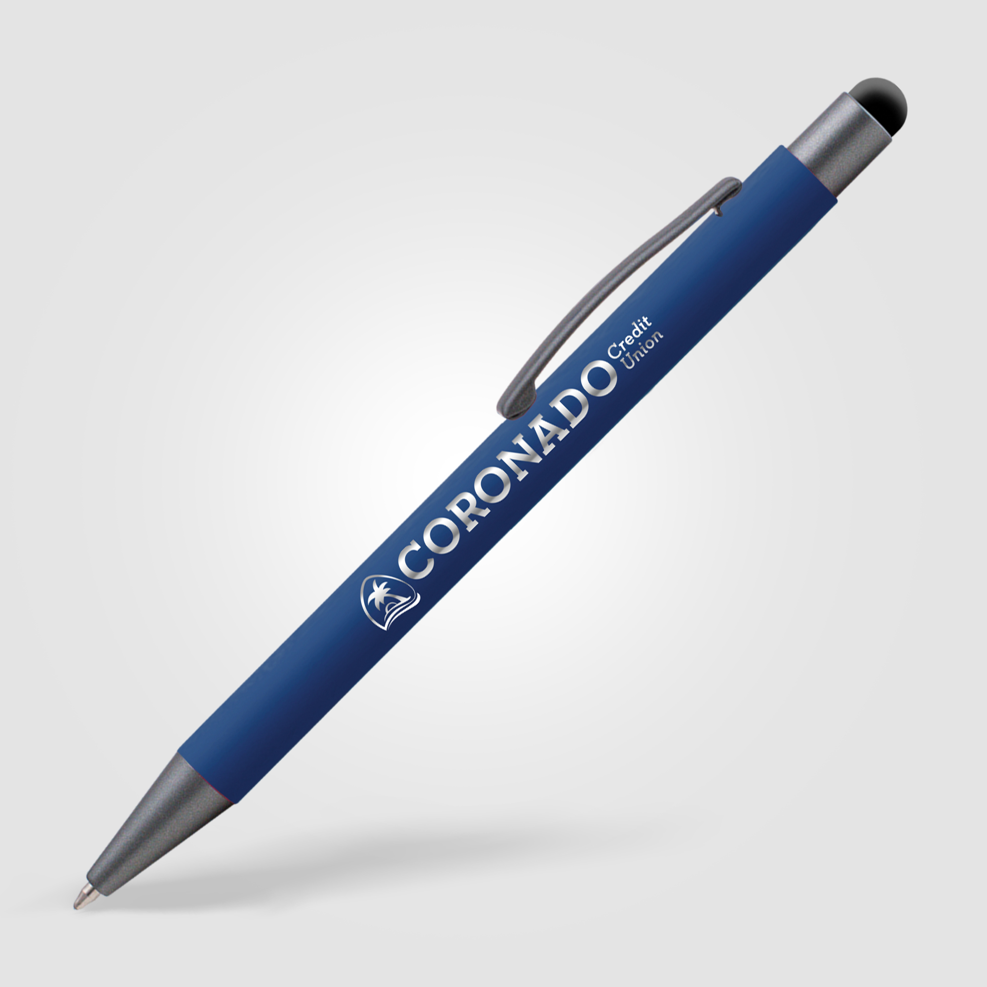 Take your brand to a higher level with the Bowie Softy Pen with Stylus! This sleek and elegant metal pen features a trendy soft-touch rubberized finish barrel, allowing you to write in comfort, and a capacitive stylus for all your devices. Your logo will be engraved in reflective mirror-finish metal, so your brand will truly shine. This medium ballpoint aluminum pen comes with a Premium Italian refill with German ink.