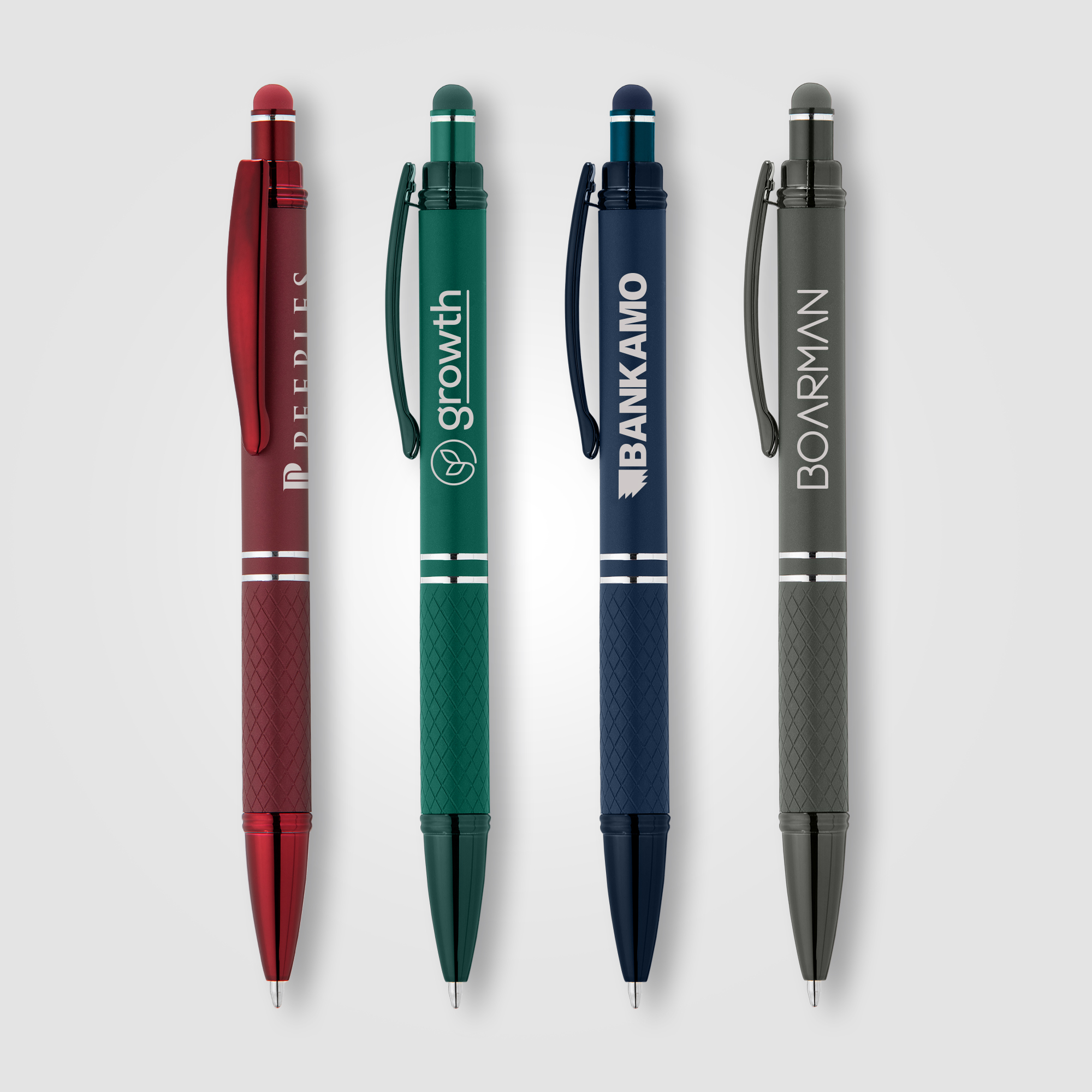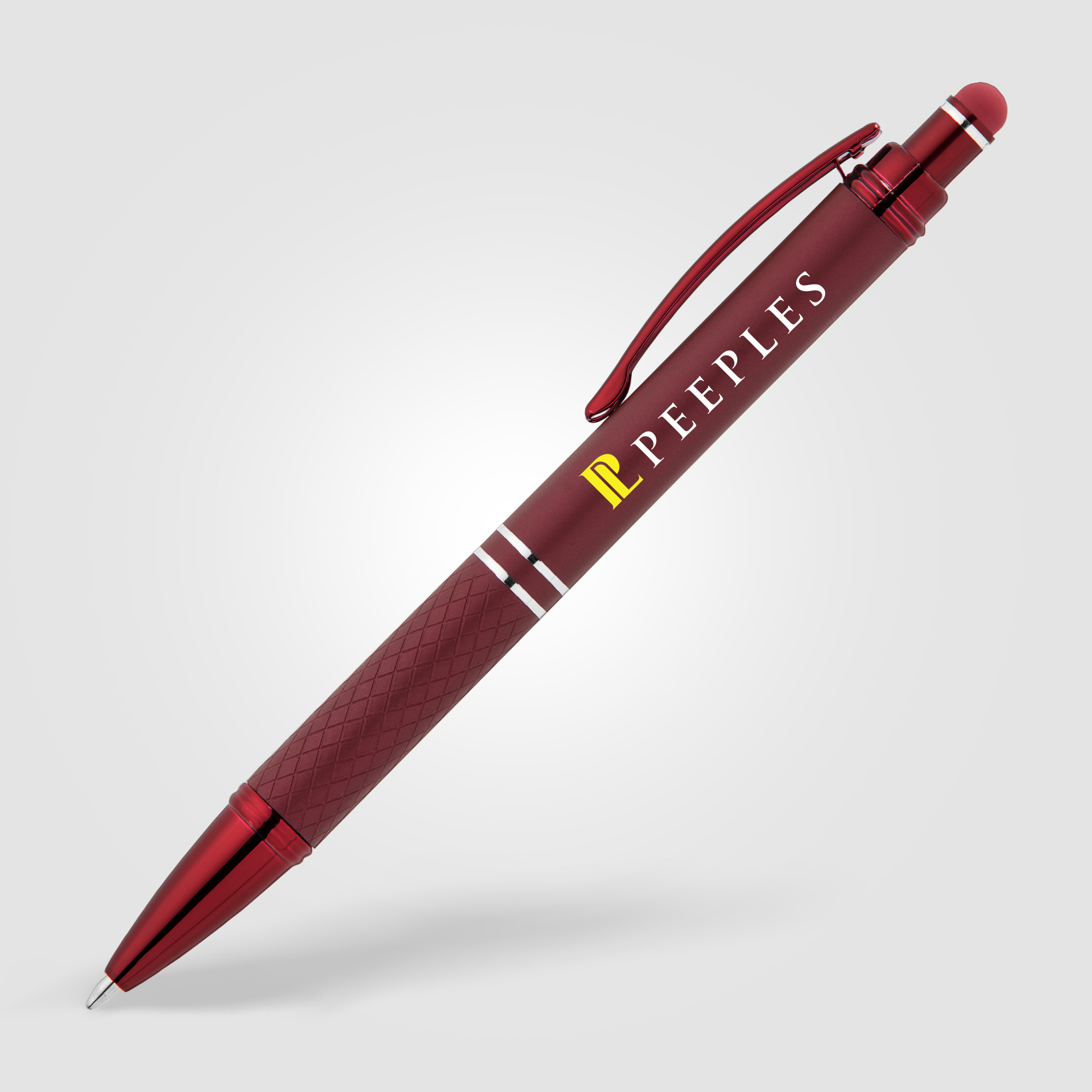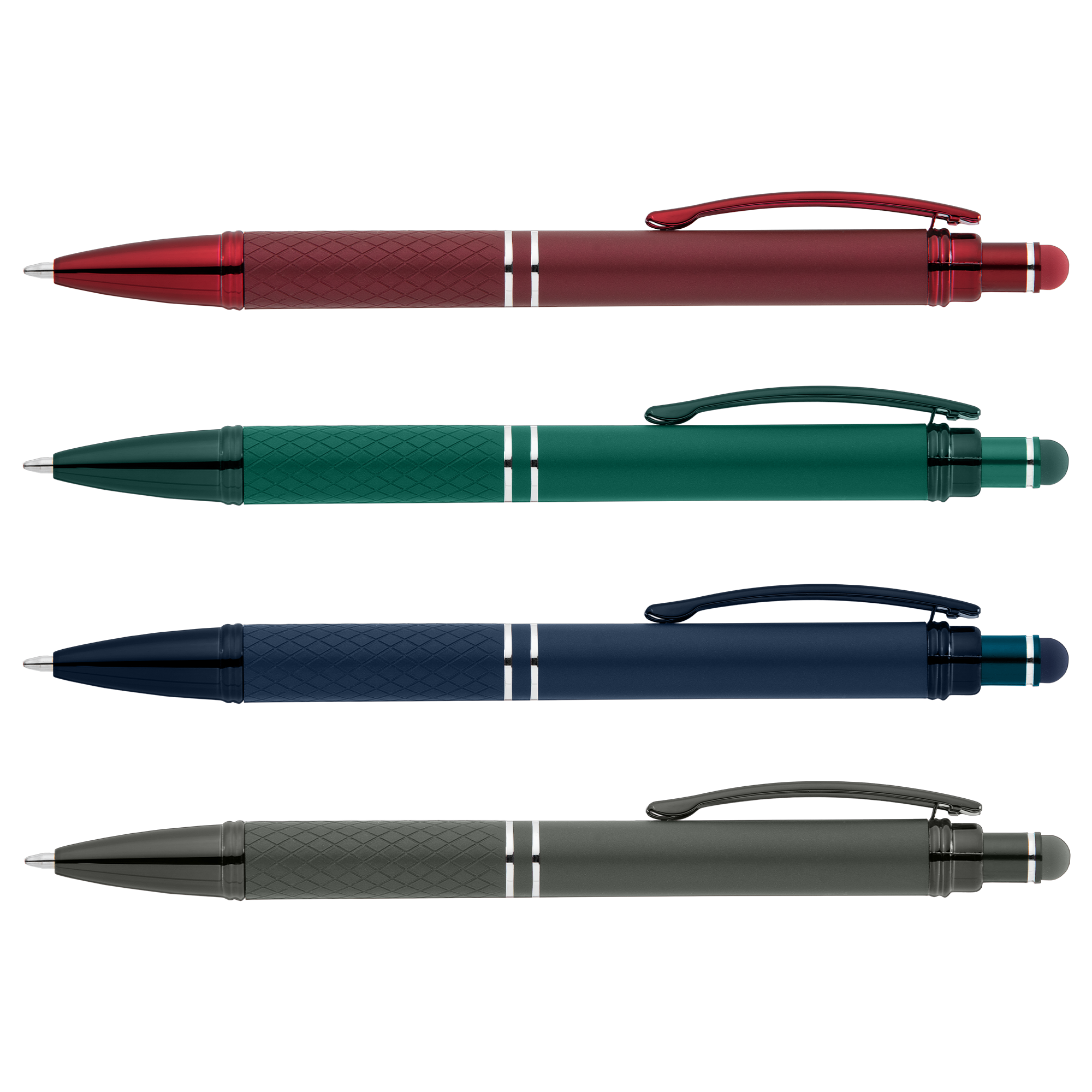 The Phoenix Softy Monochrome metal pen features a modern monochromatic design, with luxurious soft-touch finish in vibrant, metallic colors on the barrel and on the diamond-textured grip, with matching metallic trim. The capacitive stylus adds useful touchscreen functionality. .