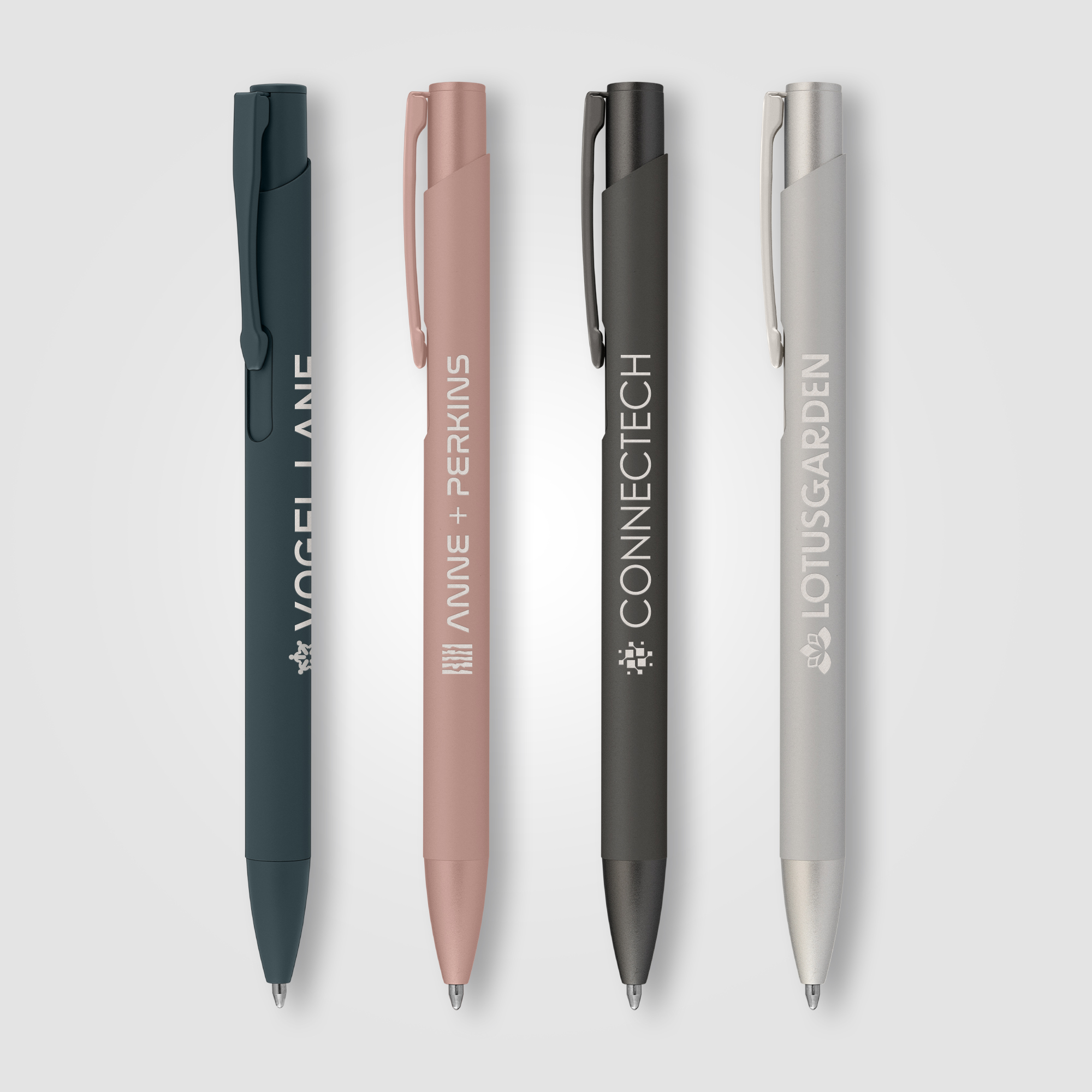 The Crosby Softy Monochrome Metallic Pen stands out with its matte painted metallic finish and coordinated trim. Designed for a seamless writing experience, it uses a slim refill with Dokumental ink for precise, consistent flow.