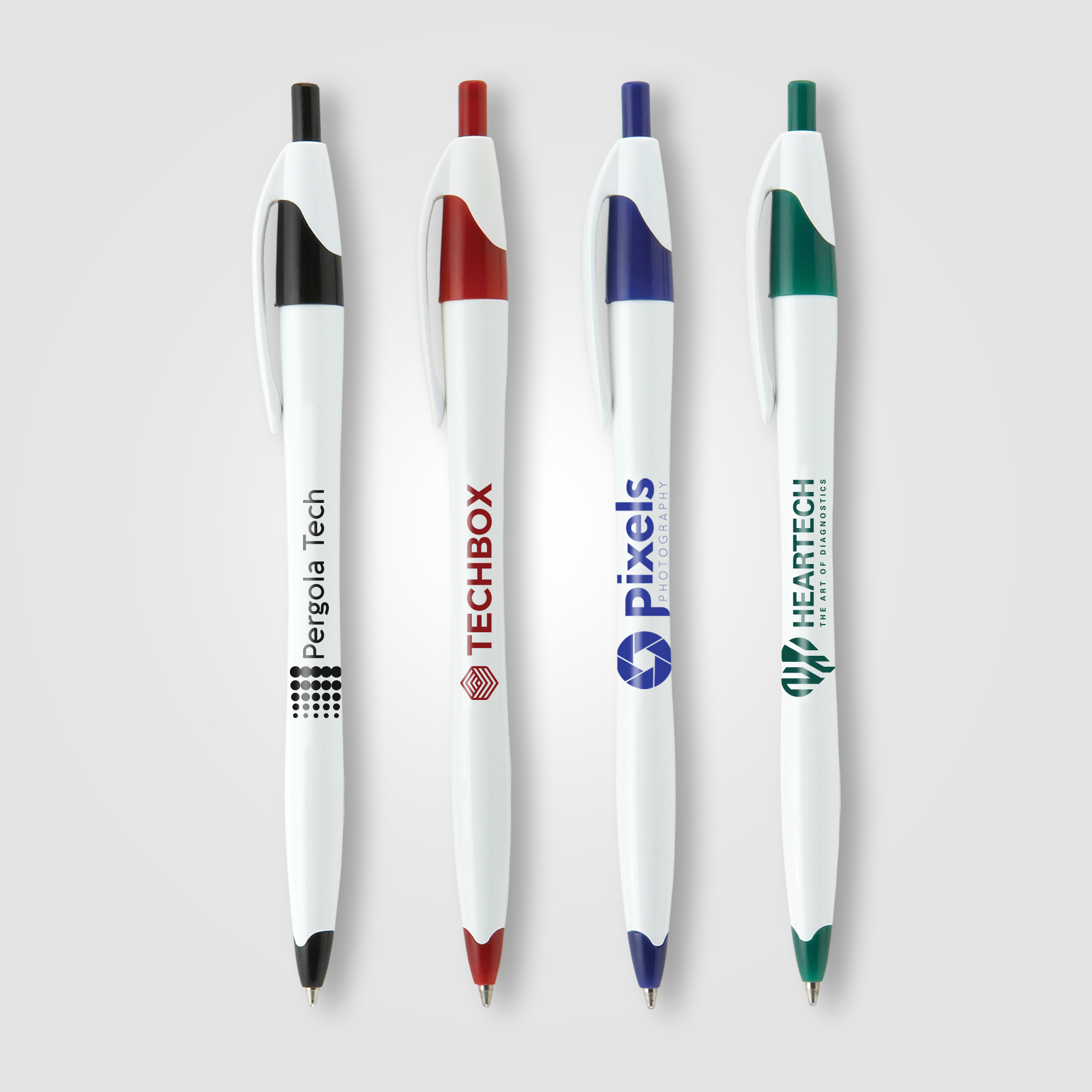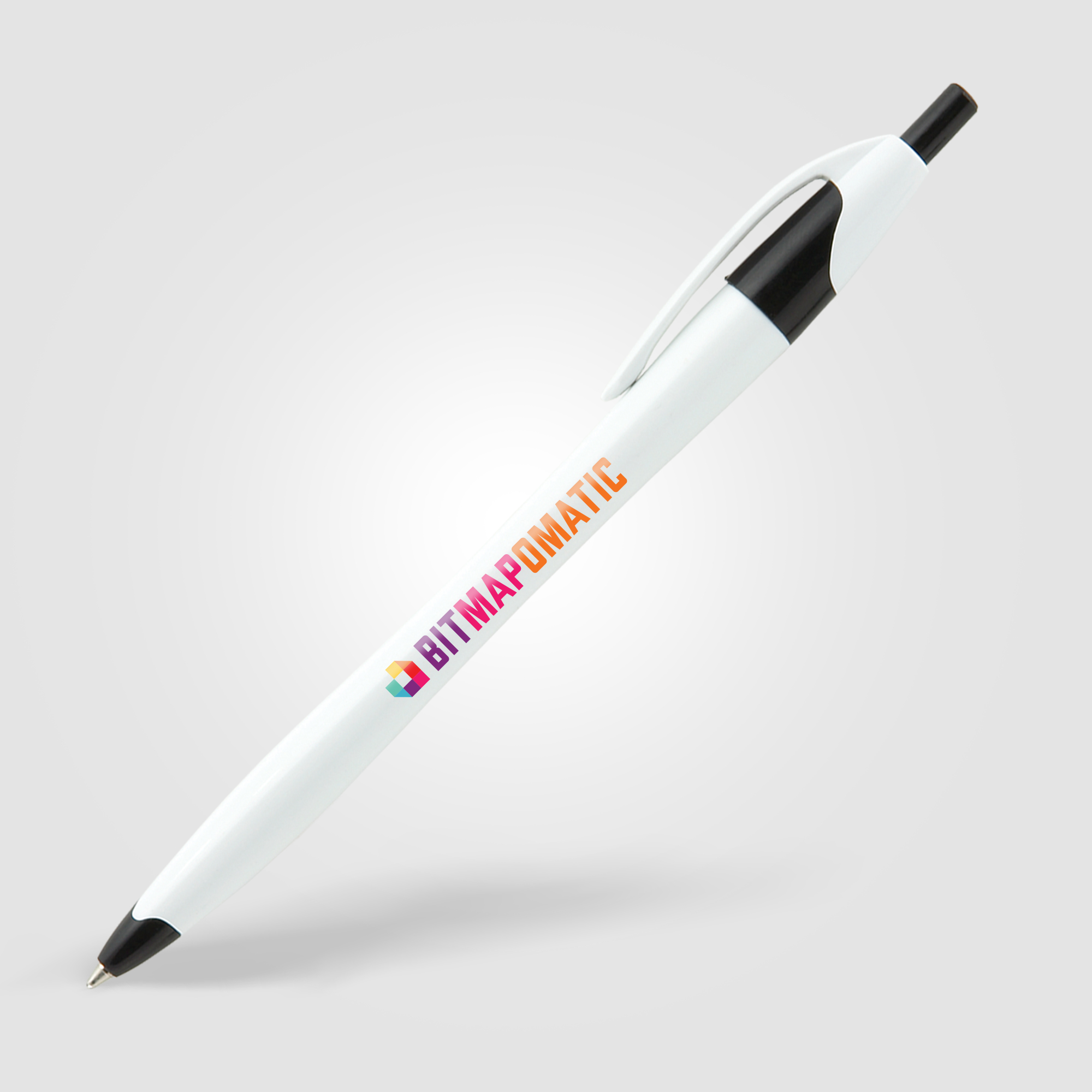 The iconic design of the Stratus Classic plastic ballpoint pen features smooth curves, a solid white barrel, and vibrant trim colors. Customize this retractable pen with a full-color direct imprint (ColorJet technology). An excellent giveaway item for open houses, seminars, events, and so much more!