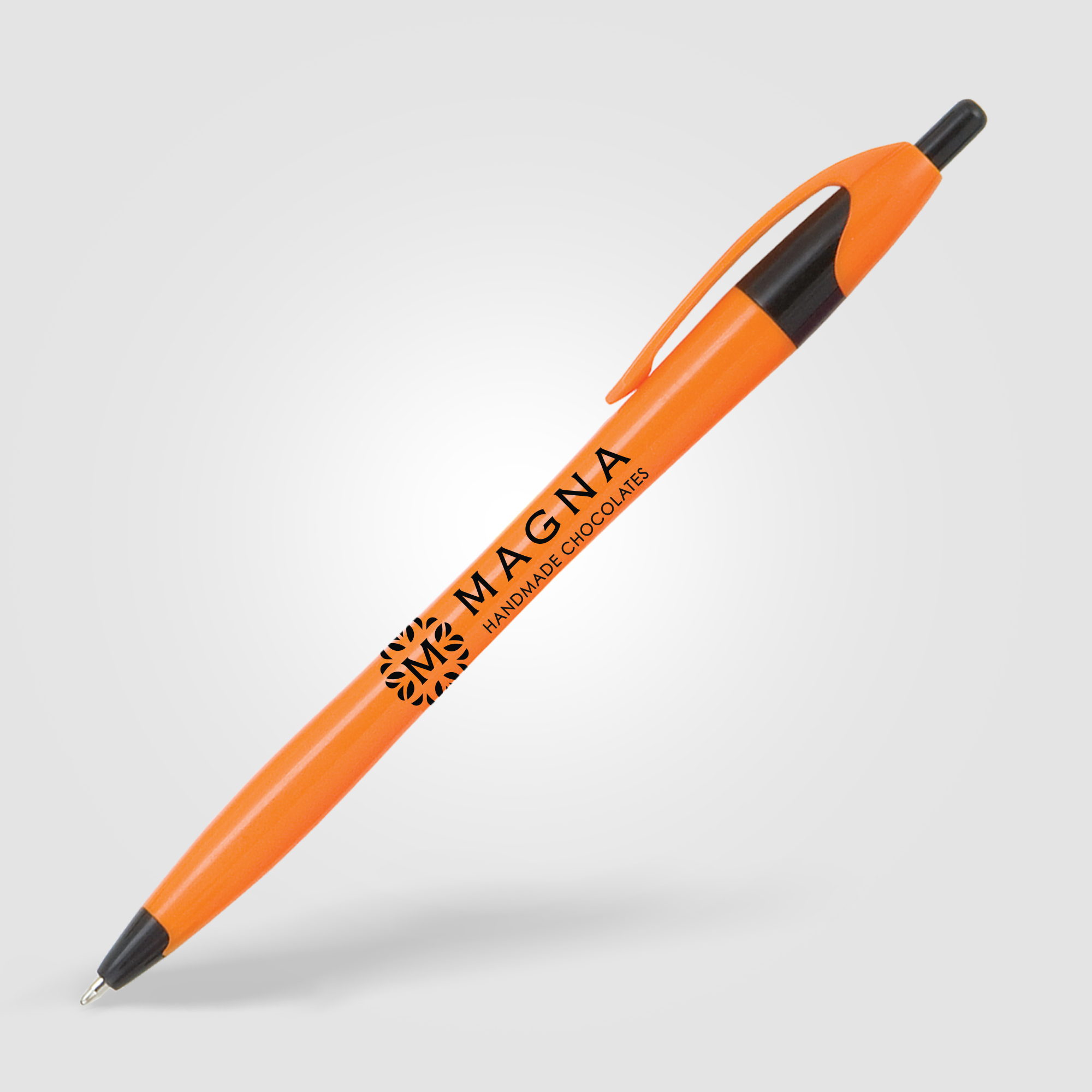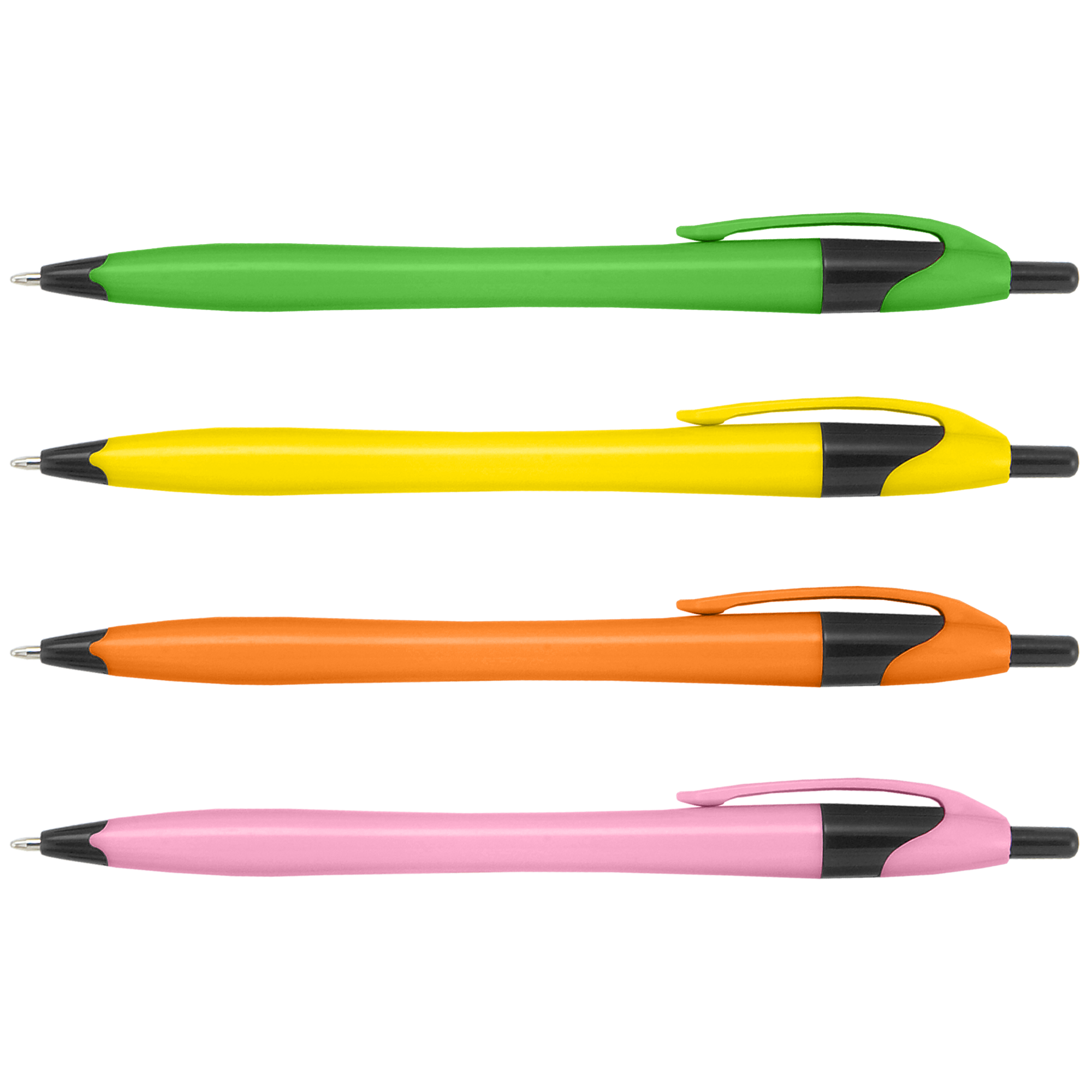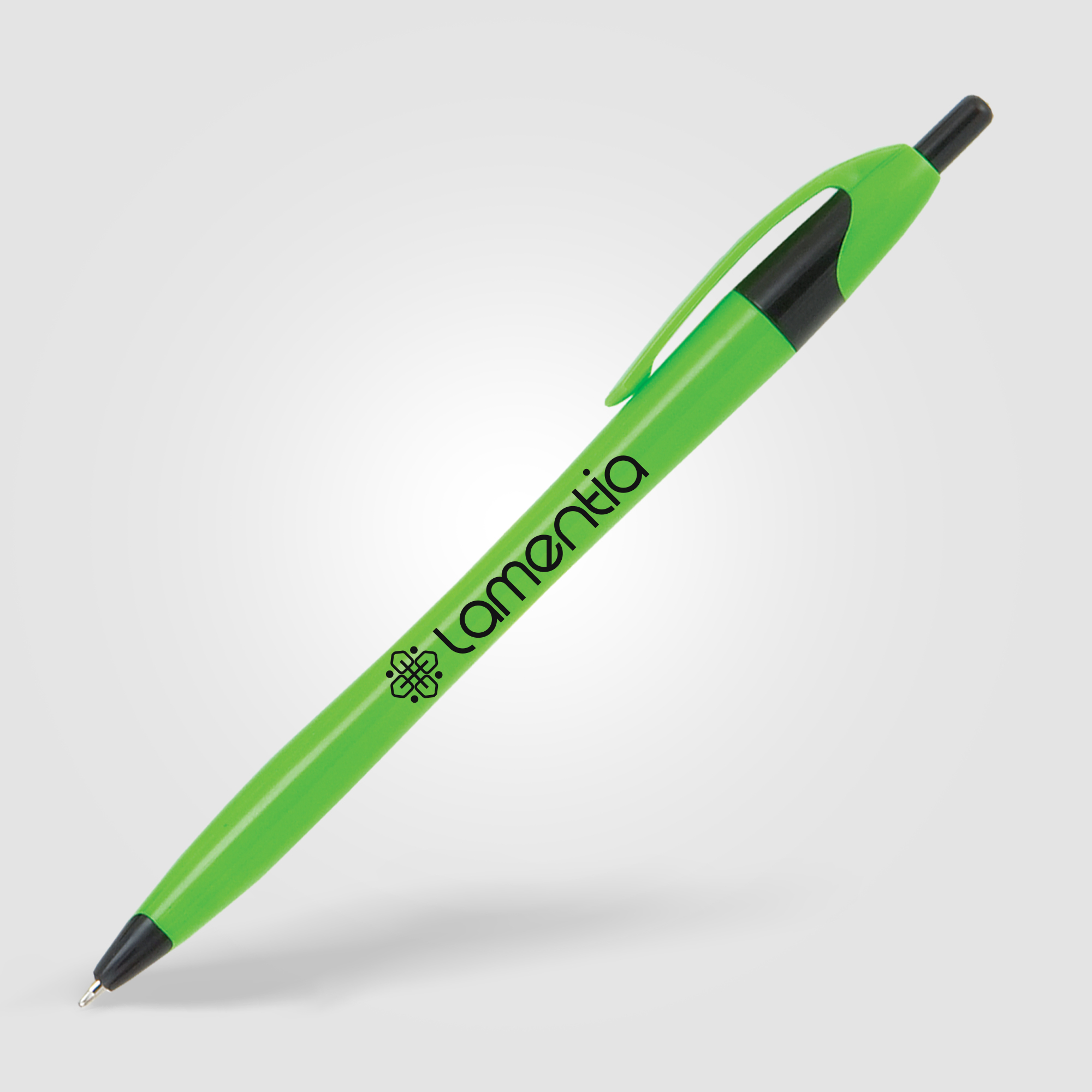 Make a stunning presentation for your company with the Stratus Brights Pen! It features an iconic design that includes smooth curves and matching bright-colored barrel and pocket clip with crisp black trims. This medium ballpoint plastic pen comes with black ink. Add a silkscreened imprint of your company name, logo, and marketing message to create a great promotional pen that will help expand your brand's reach!