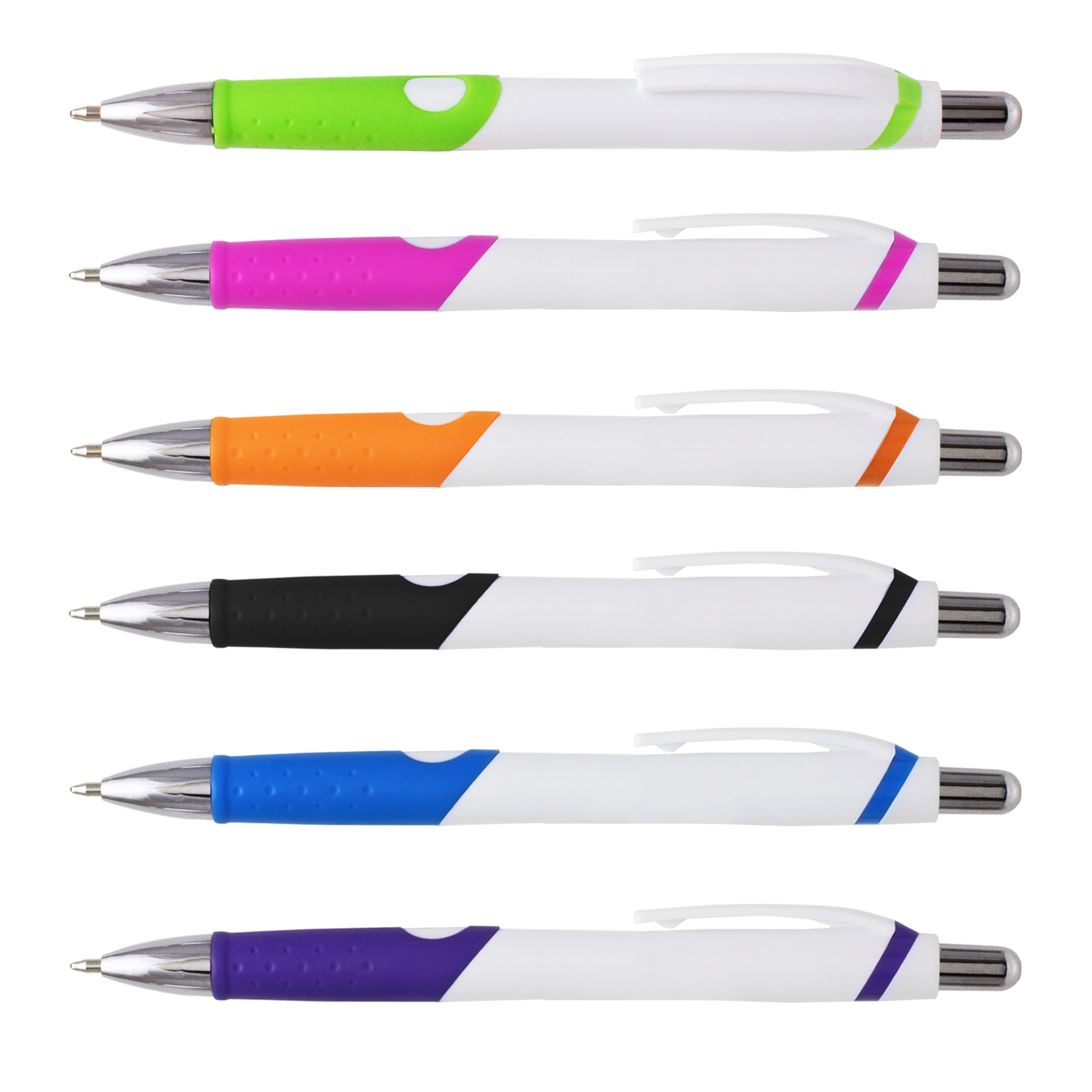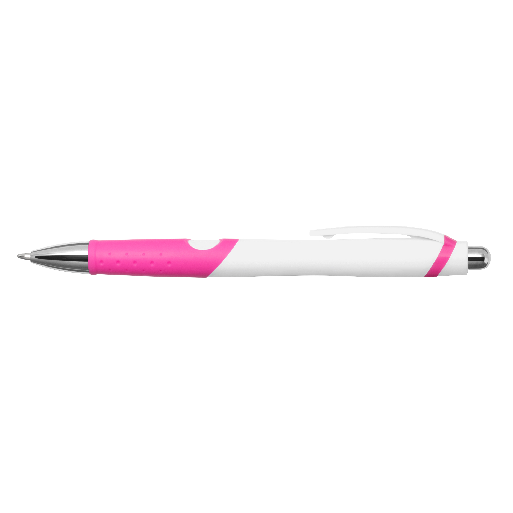 The Tyler Pen is a sleek retractable plastic ballpoint pen with a chrome-plated nose cone and plunger, and soft rubber grip, available in a range of bright colors. Promote your brand with a 1-color silkscreen imprint.