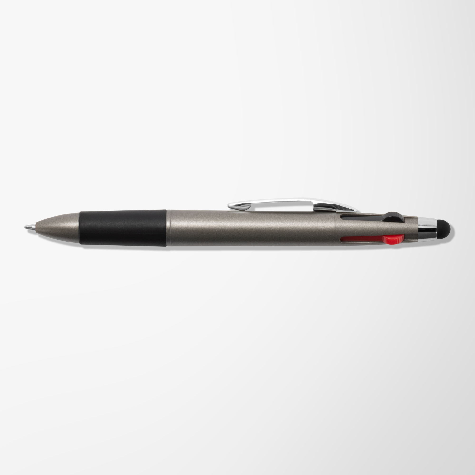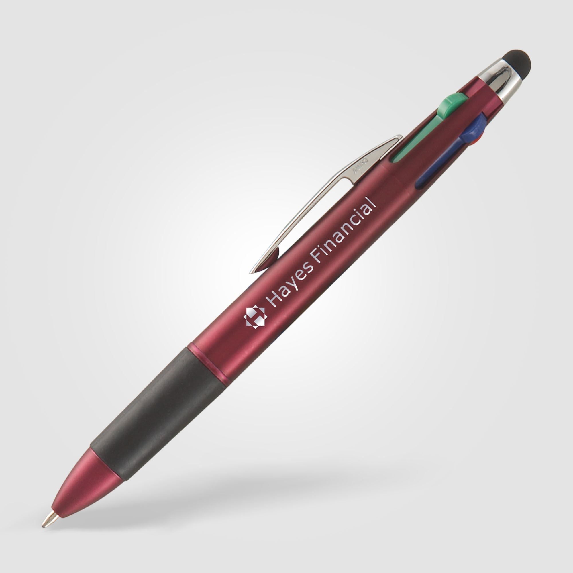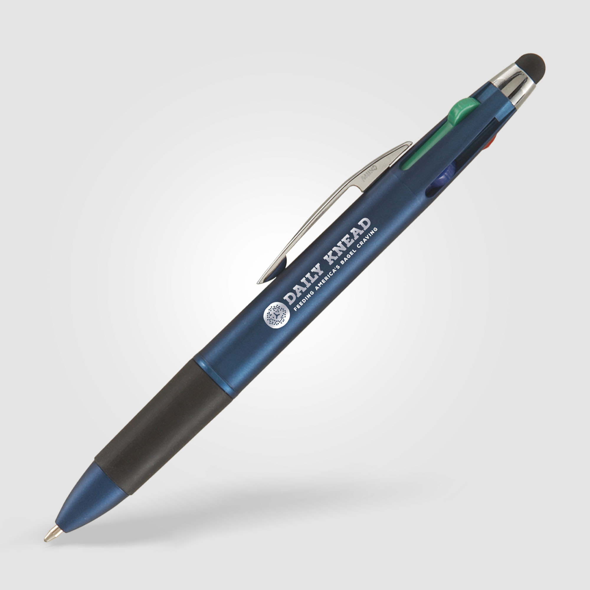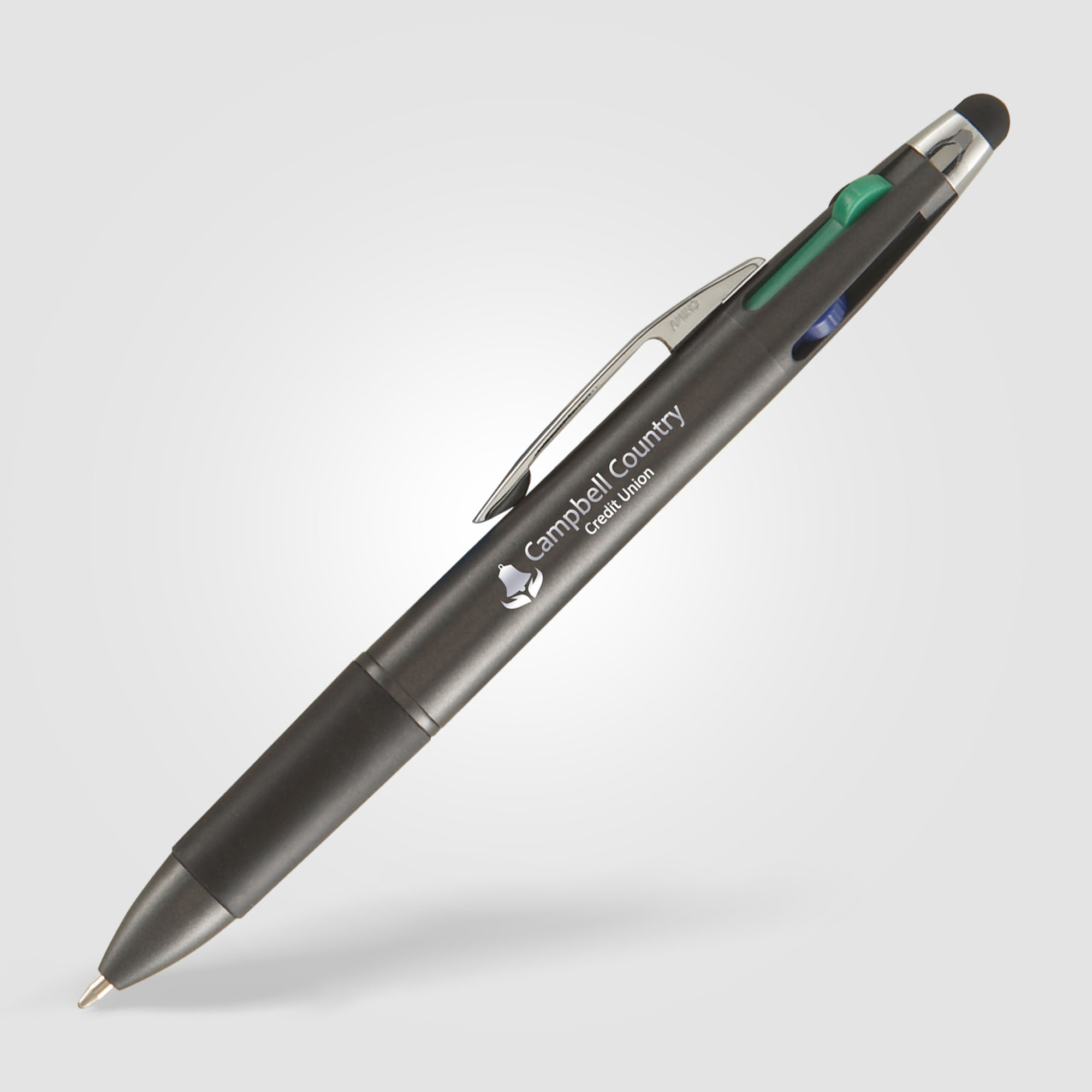 Your clients will love the Quattro Multi-Pen with Stylus! This multi-functional, click action pen features four ink colors: Red, Green, Blue and Black! It also has a soft comfort grip and a capacitive touch stylus to use on smartphones, tablets and any touchscreen devices. Available in classic colors, the Quattro is a very useful and memorable promotional pen.
