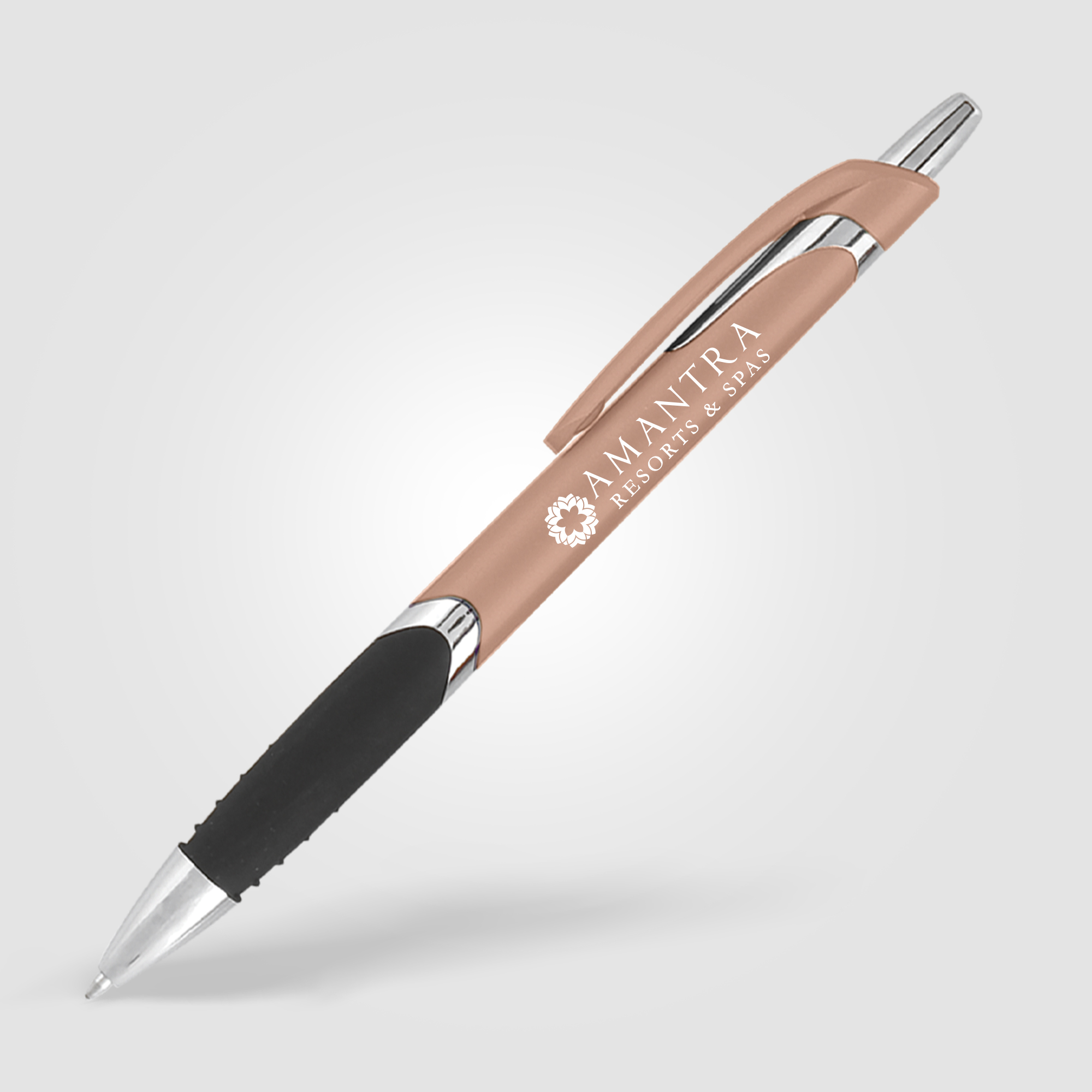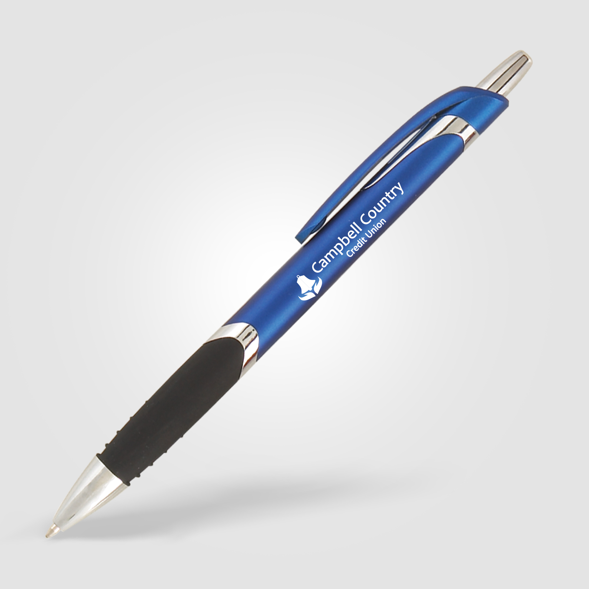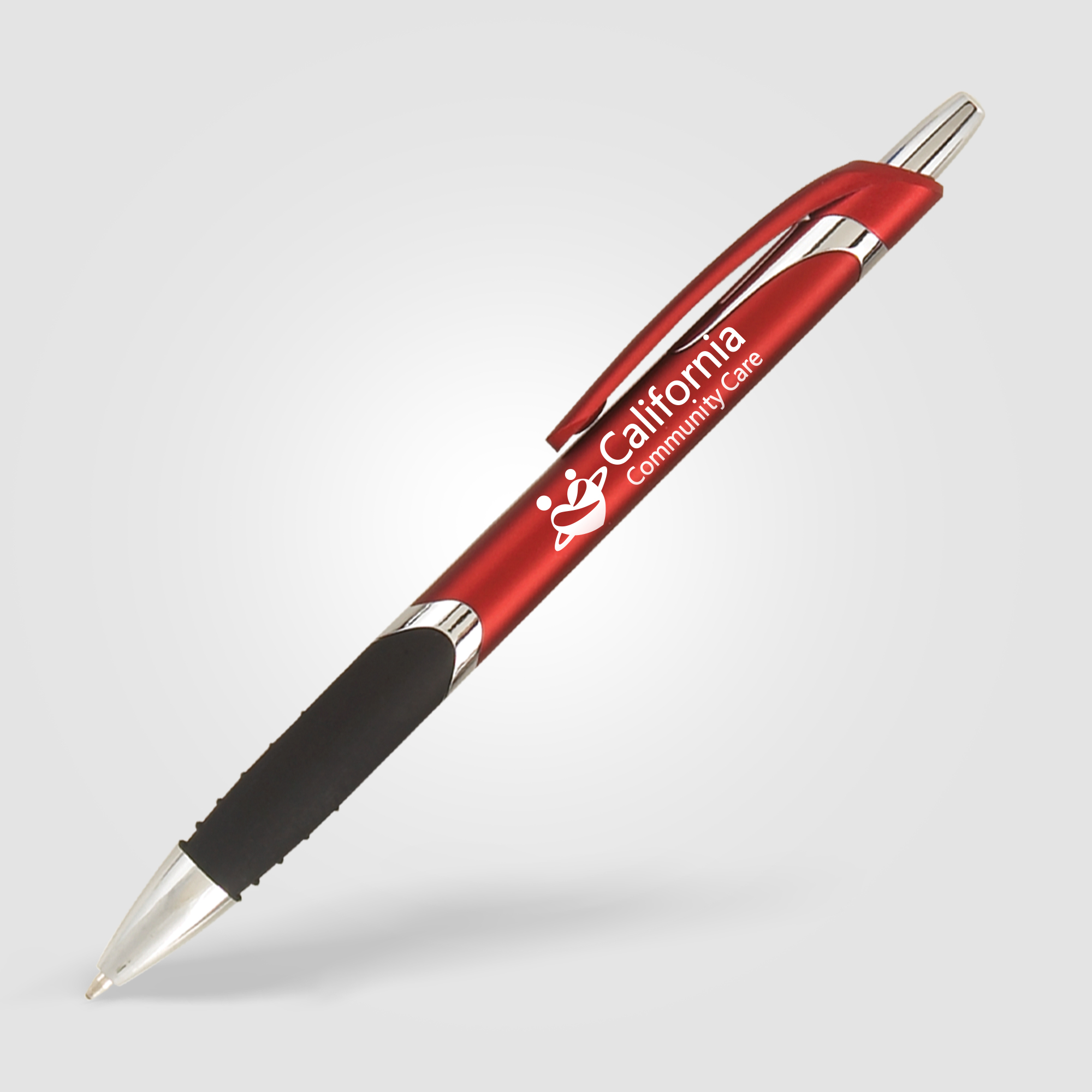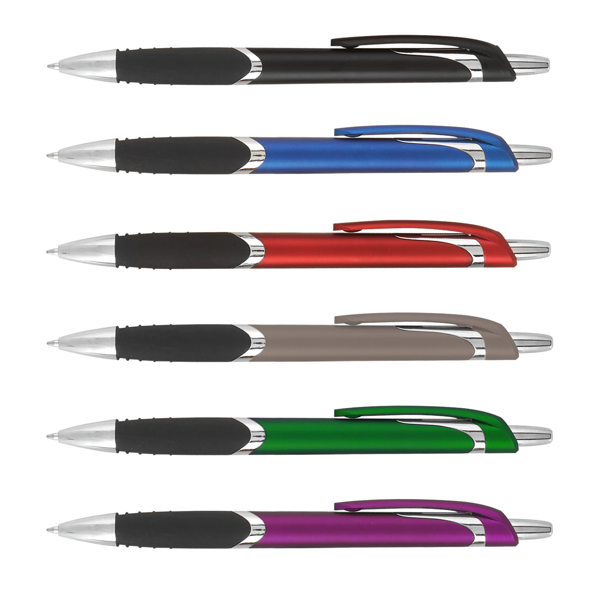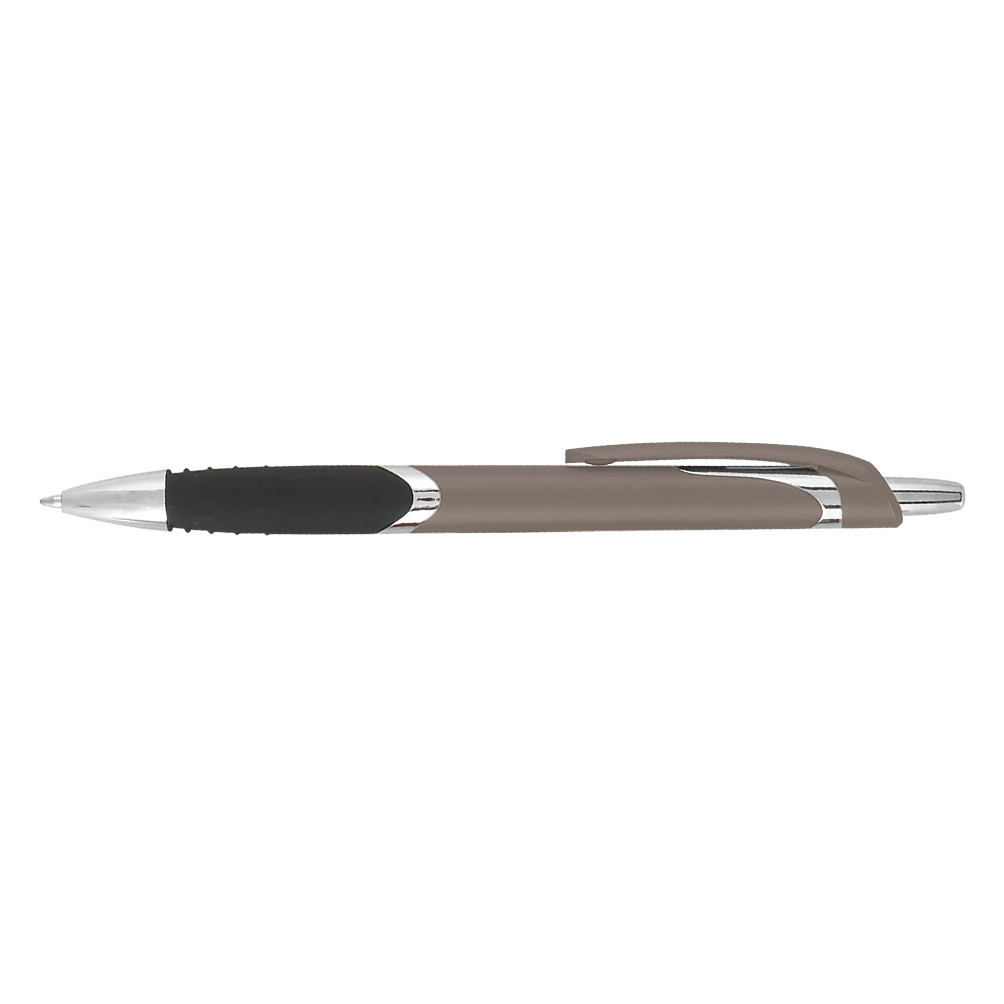 The Solana Grip pen features a black rubber grip and a quick-click plunger, for a smooth and comfortable writing experience. An affordable plastic pen with metallic curb appeal, the silver accents and imprints make this pen stand out from the rest. Great for clipping to brochures and collateral at tradeshows and events.