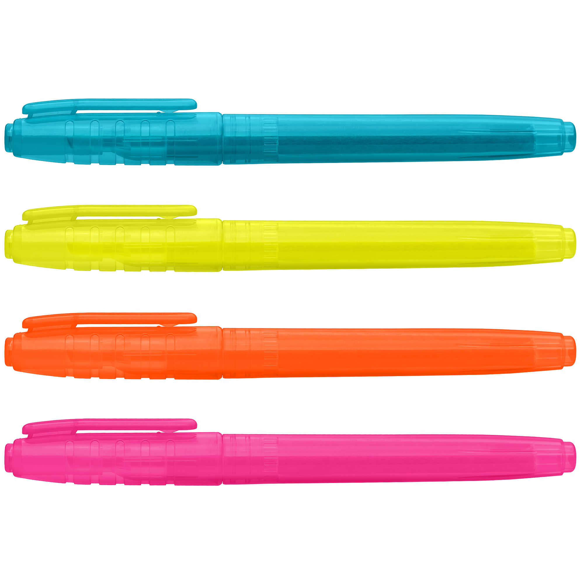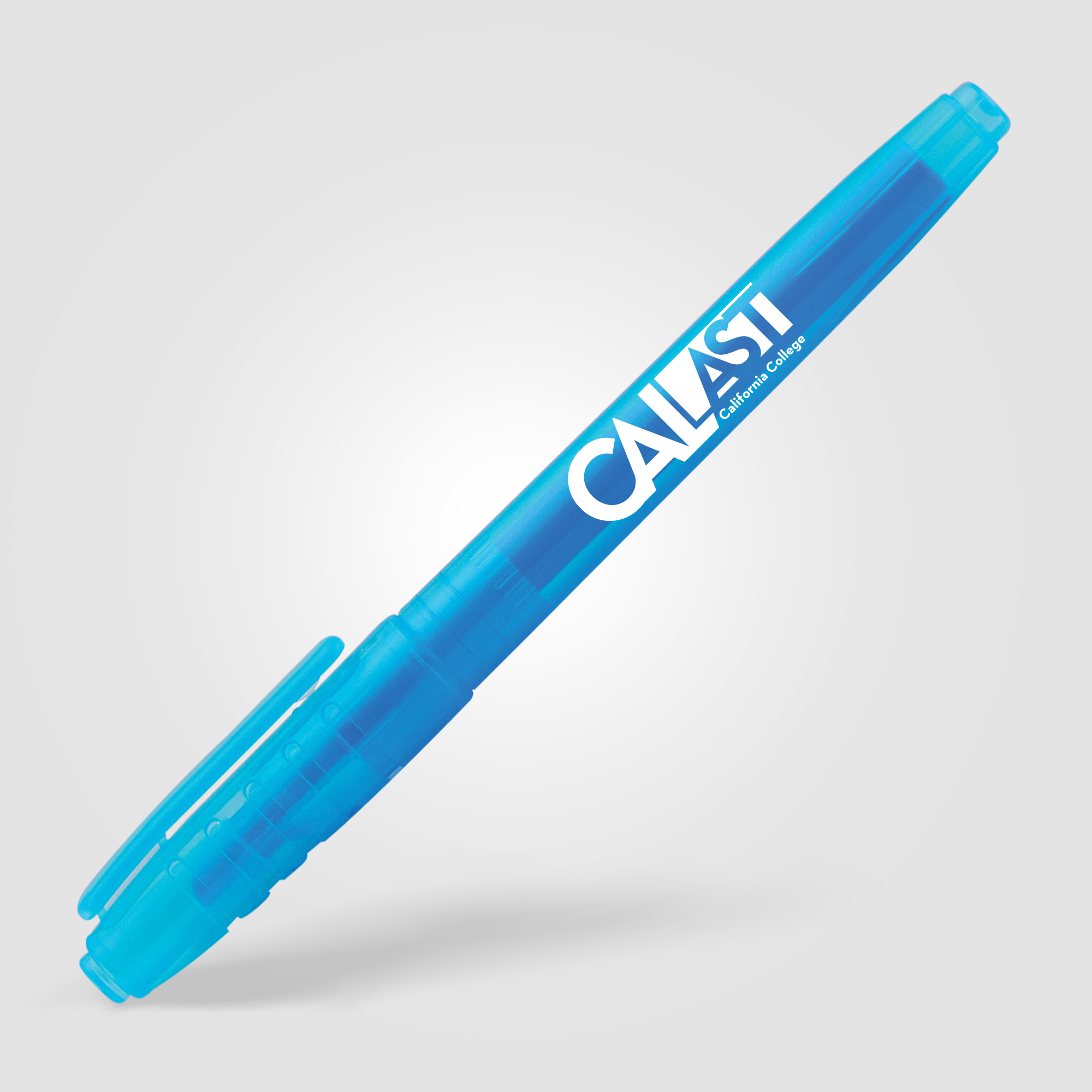 The Collegiate Highlighter is available in your choice of different bright colors with matching highlighter tips. It features an ergonomic ribbed cap, making it ideal for use at school, home, in the office, or anywhere you need it.