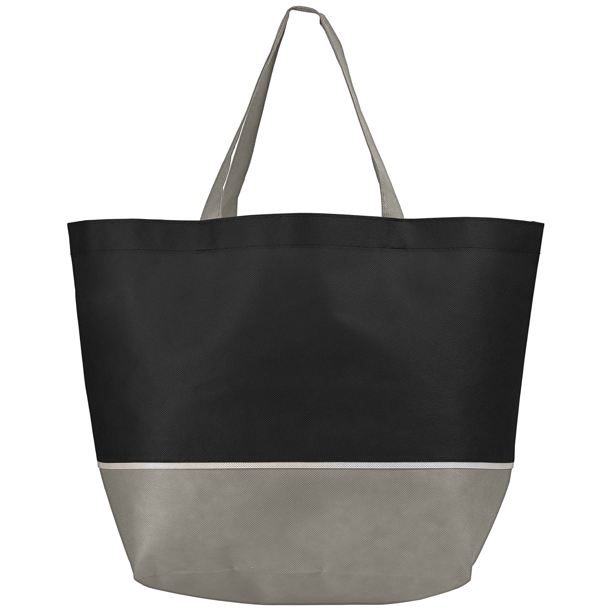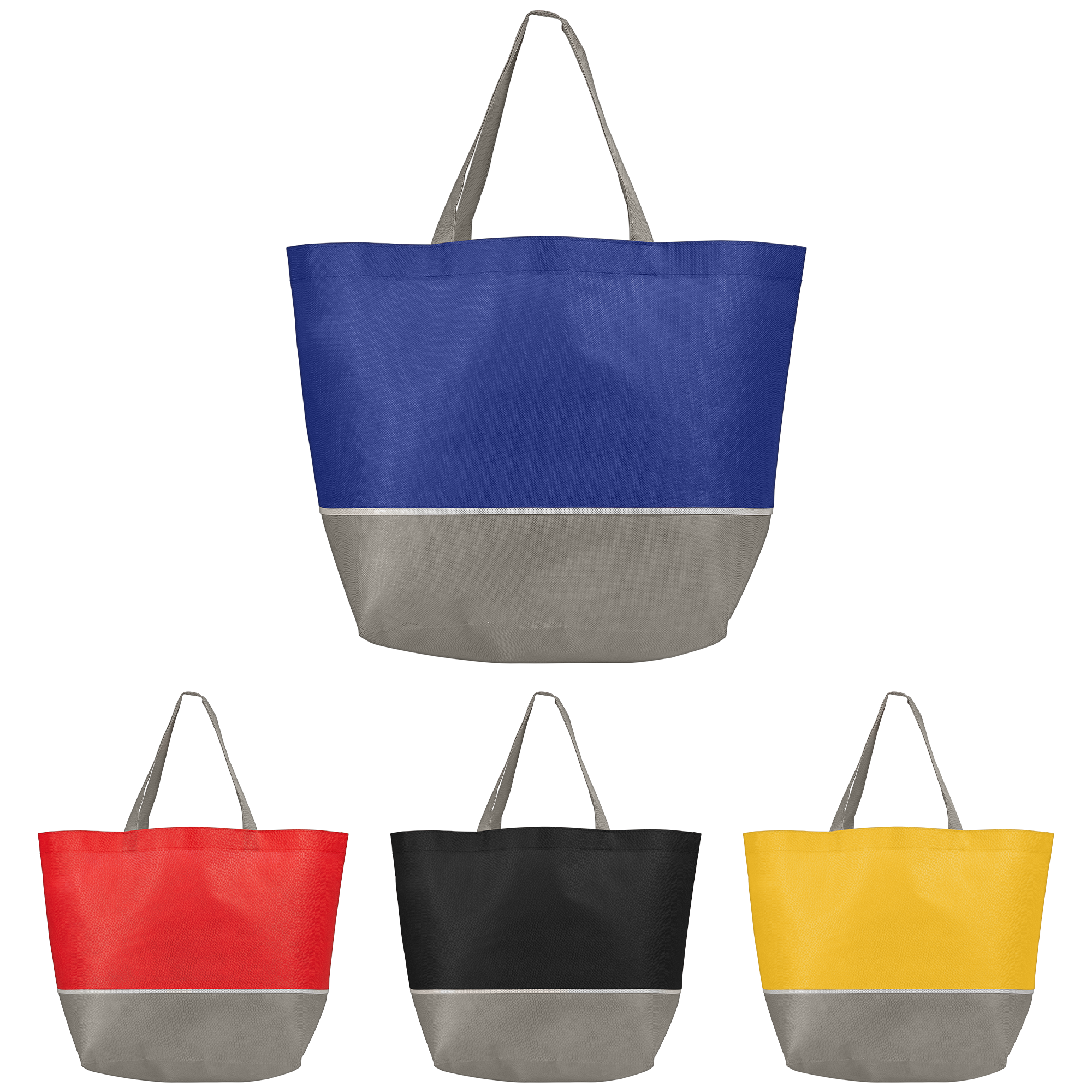 The Julian Two-Tone Shopping Tote is constructed with 80 gram non-woven polypropylene with two-tone design featuring color bag with gray trim and handles. This reusable tote bag measures 20" wide x 13" high, with an 8" wide gusset, so it's ideal for shopping. This tote bag is perfect for advertising your company with a 1-color silkscreen imprint.
