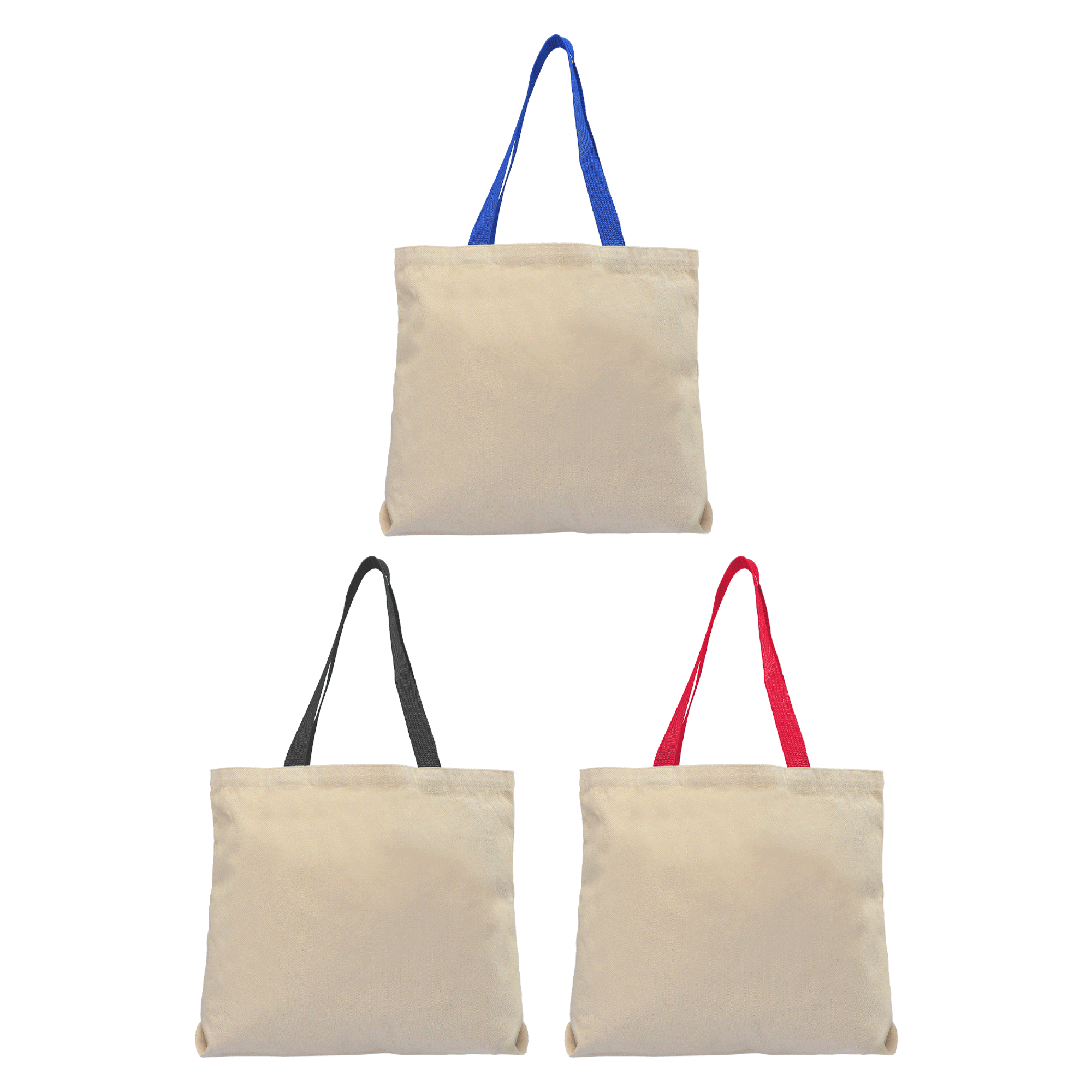 Our Sumatra cotton canvas tote is made from renewable, natural 10 oz. cotton, with colorful polyester handles for extra strength. This sturdy tote is equipped to carry up to 44 lbs., featuring durable 20” handles. 16.22”w x 12.44”h x 2.68”d gusset. Your logo will look great, .