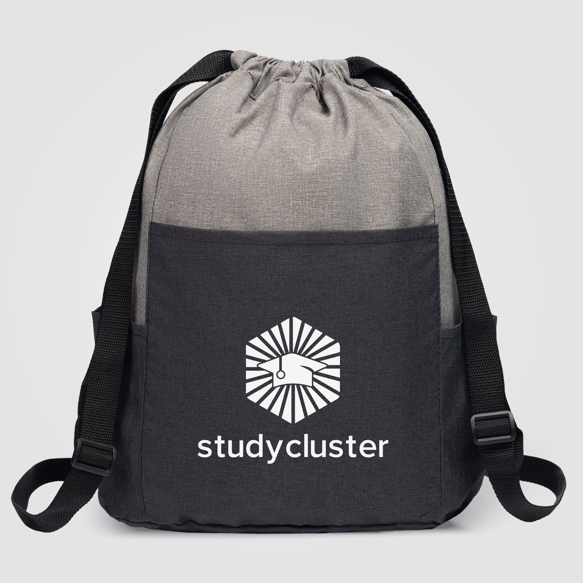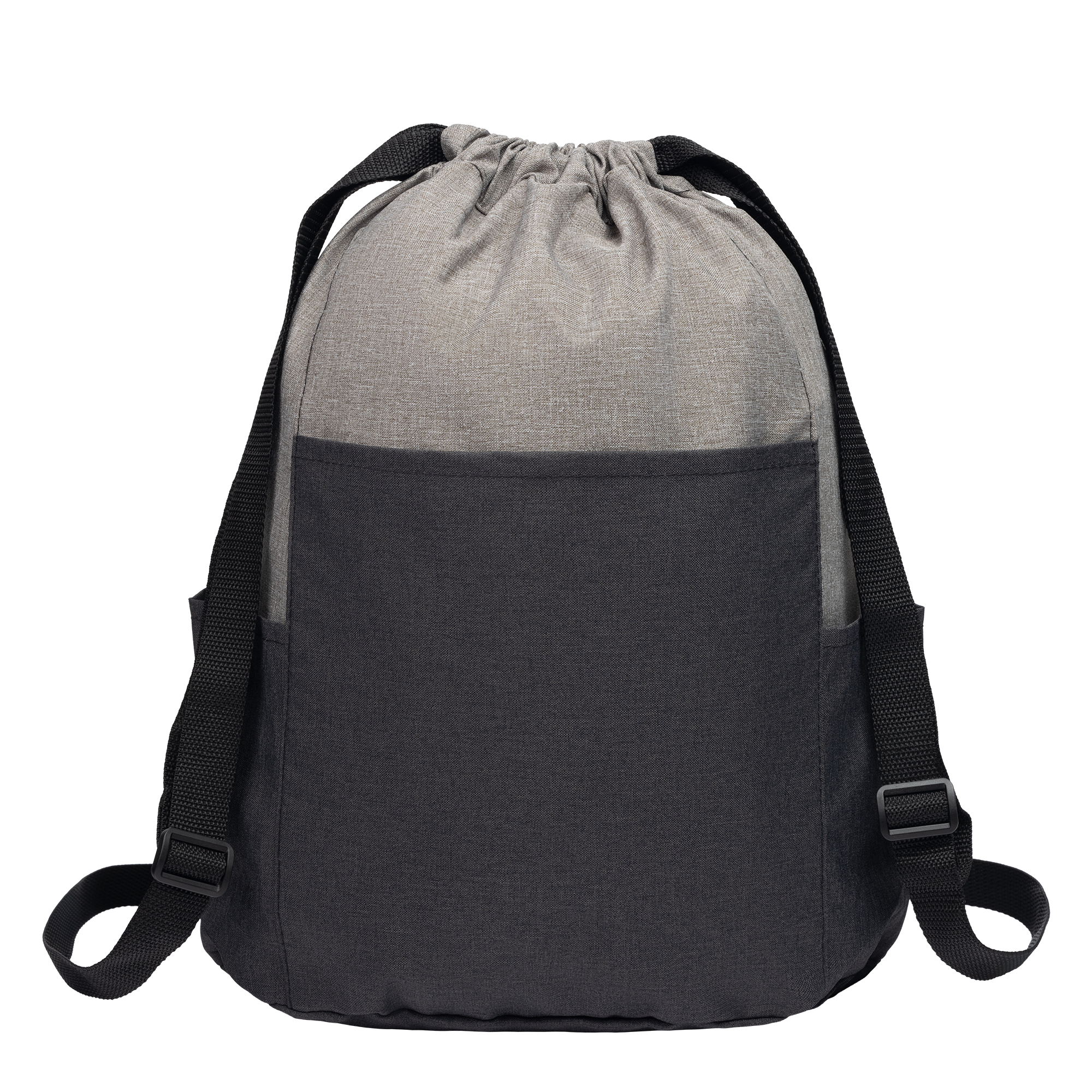 Our Metropolis Sport Drawstring Bag is ideal for promoting company logos on the go. This reusable promotional marketing bag is on-trend, featuring a two-tone look with grey and black sections of the 300D polyester material. This drawstring backpack also features 2 convenient side pockets for drinkware or mobile phone, a front center pocket, and wide, adjustable webbed straps for added comfort. .