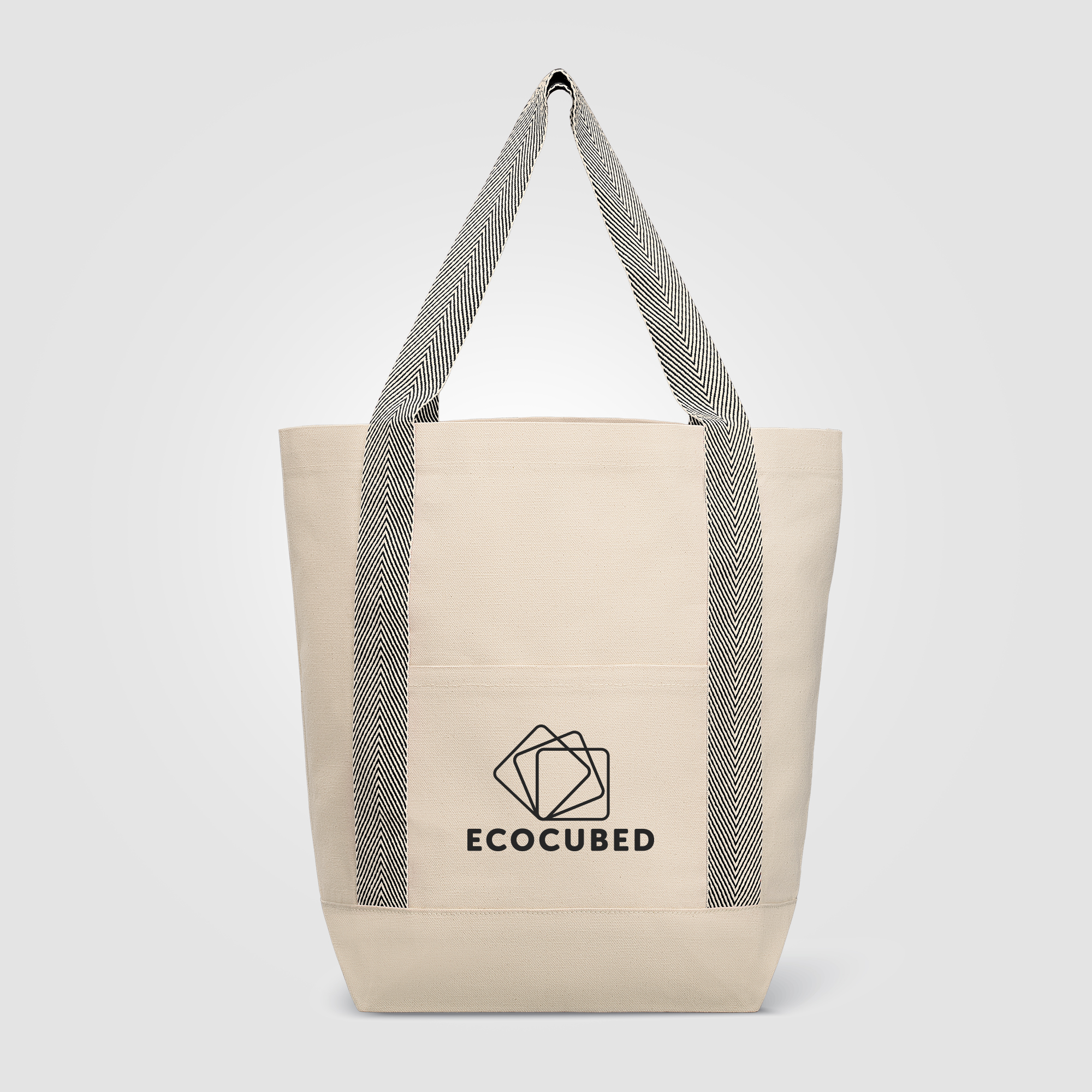 Carry daily essentials with the Cotton Strap Tote Bag. This versatile everyday tote is crafted from 10oz recycled cotton canvas. It features a sturdy gusseted base and soft herringbone cotton webbing handles for comfortable carrying. A convenient open front pocket offers quick access to essentials. With a 12.25L capacity and a 22lb weight limit, it's ideal for groceries, work items, or casual outings.