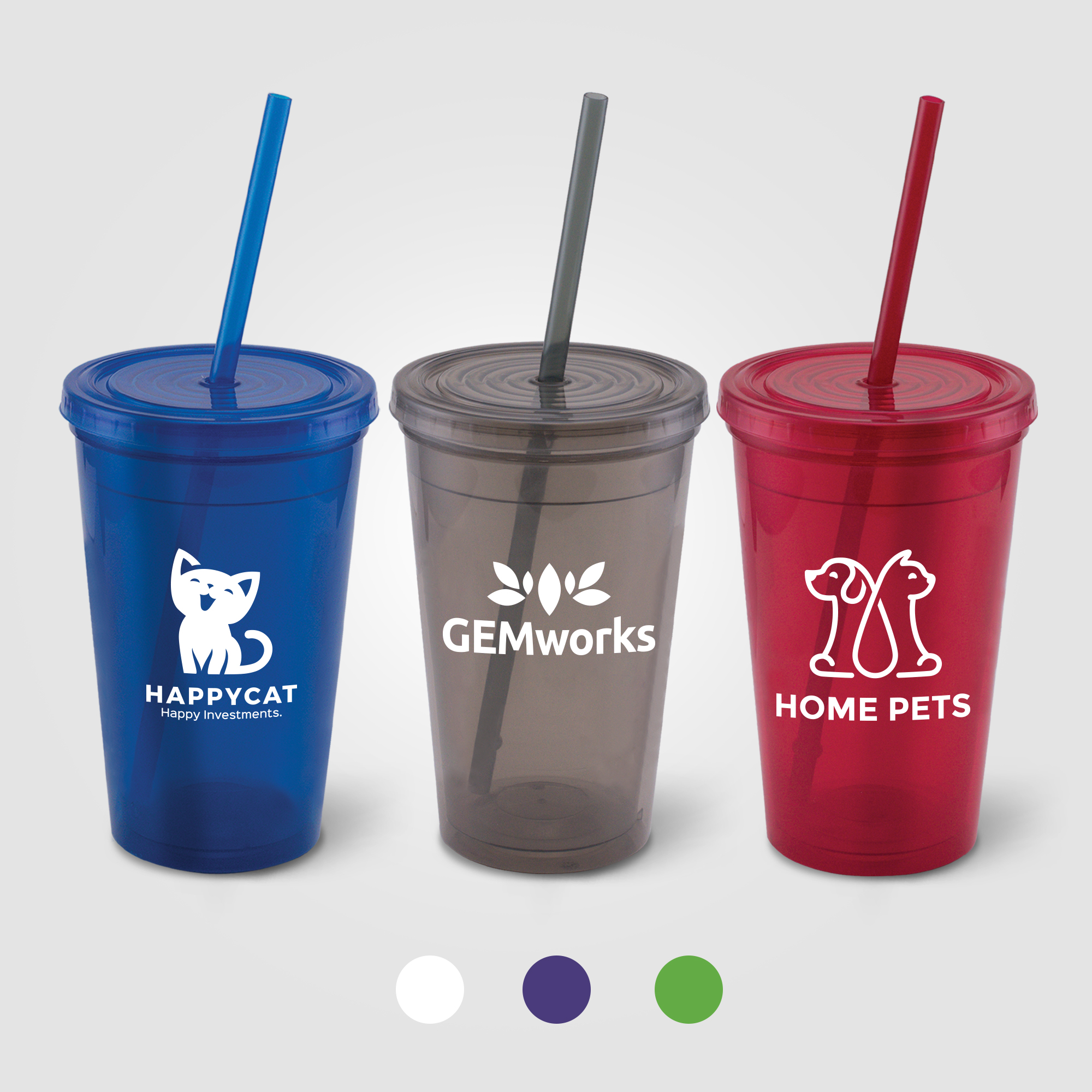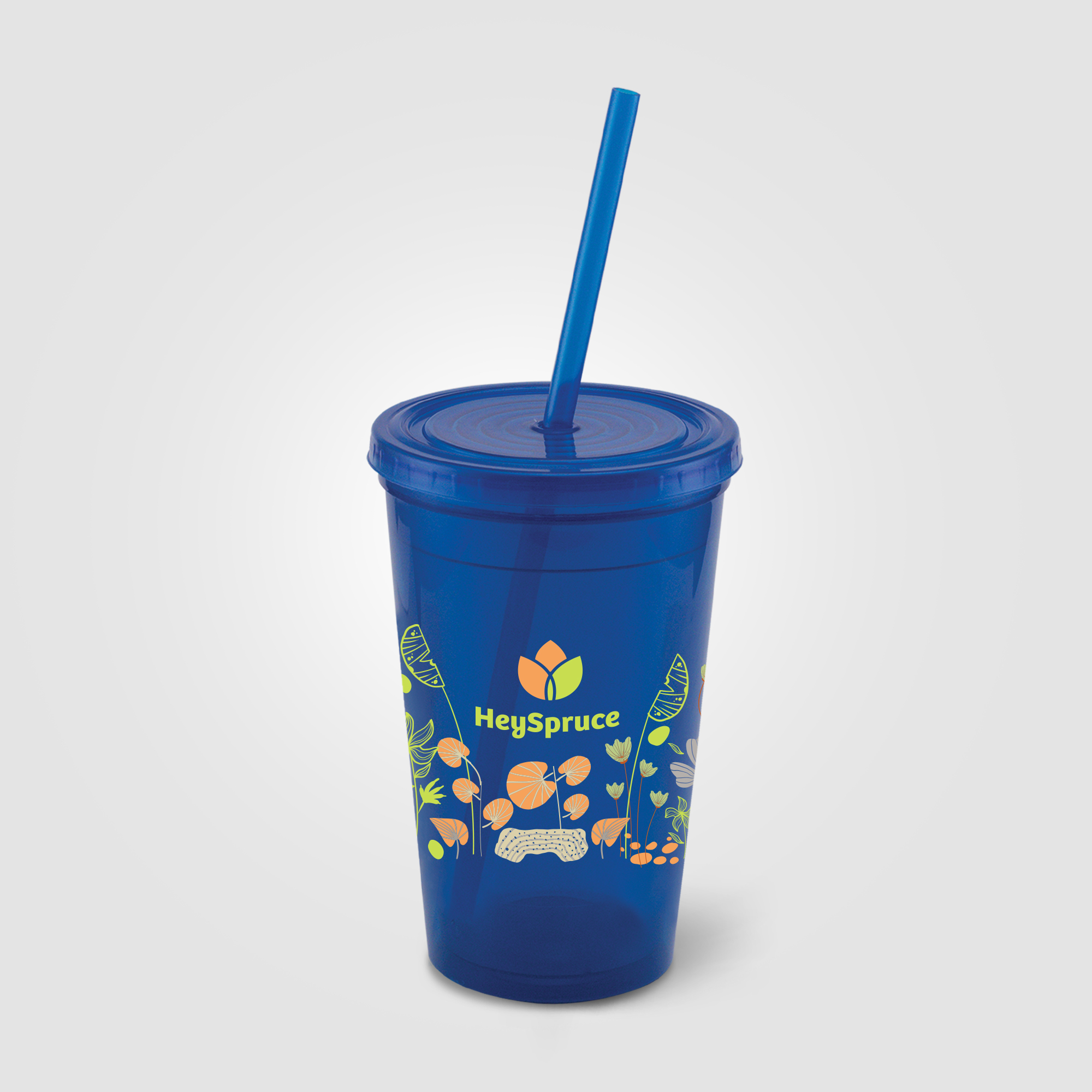Available in 7 bold product colors, customize this tumbler with an impressive full-color direct imprint (ColorJet technology) that features a gloss UV clearcoat to make artwork pop. This 16 oz. double wall tumbler makes it easy to take cold drinks on the go with its double wall insulation, snap-on lid, and smoothie sized straw. With a tapered base that's designed to fit in most car cup holders, the Explore Tumbler will go wherever you go. Hand wash only. BPA-free, Lead-free, CPSIA Certified, CA Prop 65 Compliant, and FDA Approved.