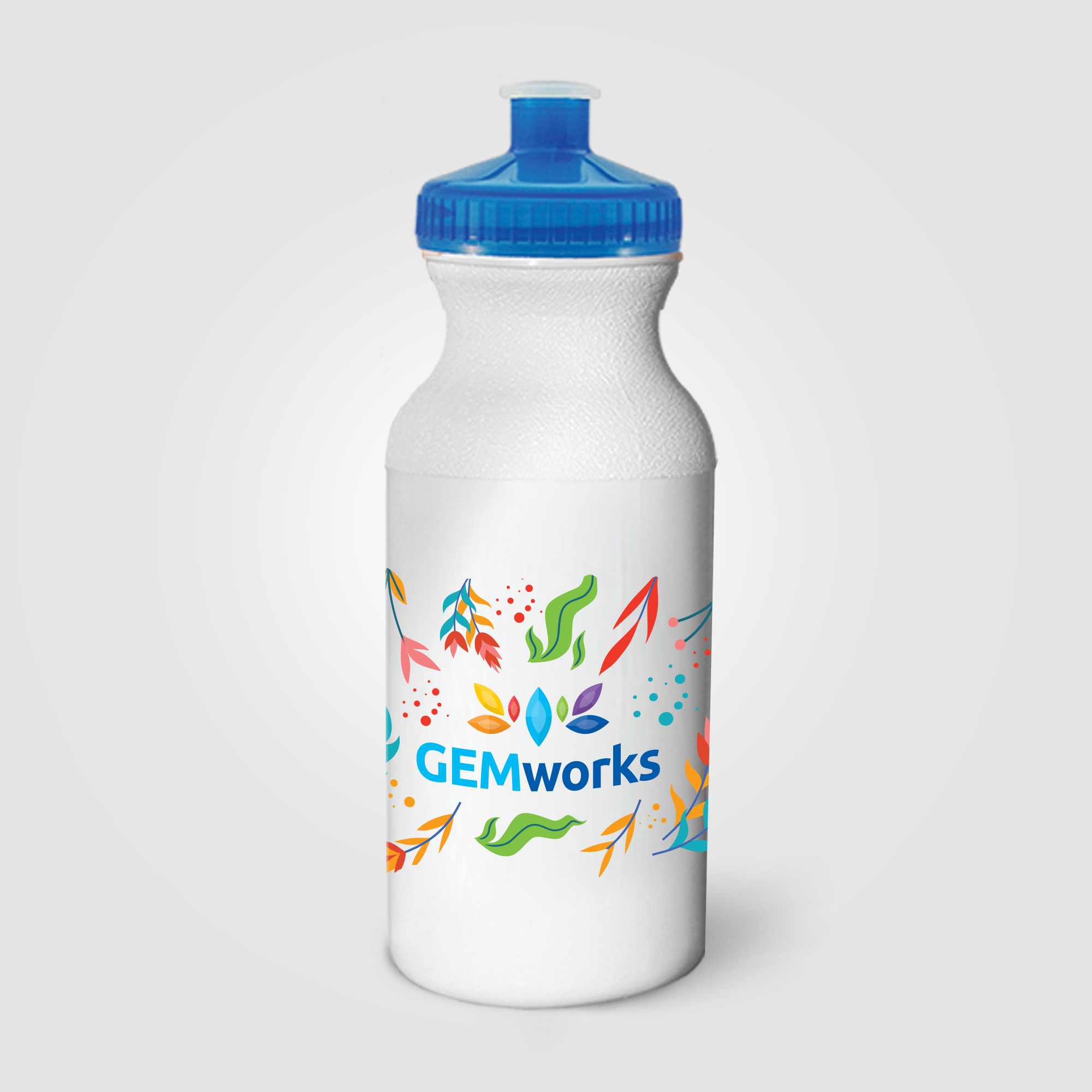 Made in USA. Our 20 oz. Bike Bottle is perfect for quenching thirst on the run, with its fast push-pull spout lid. The lid is available in a selection of color options to coordinate with an impressive full-color direct imprint (ColorJet technology) that features a gloss UV clearcoat to make artwork pop. With recycled materials. BPA-free, Lead-free, CA Prop 65 Compliant, and FDA Approved. Hand wash only.