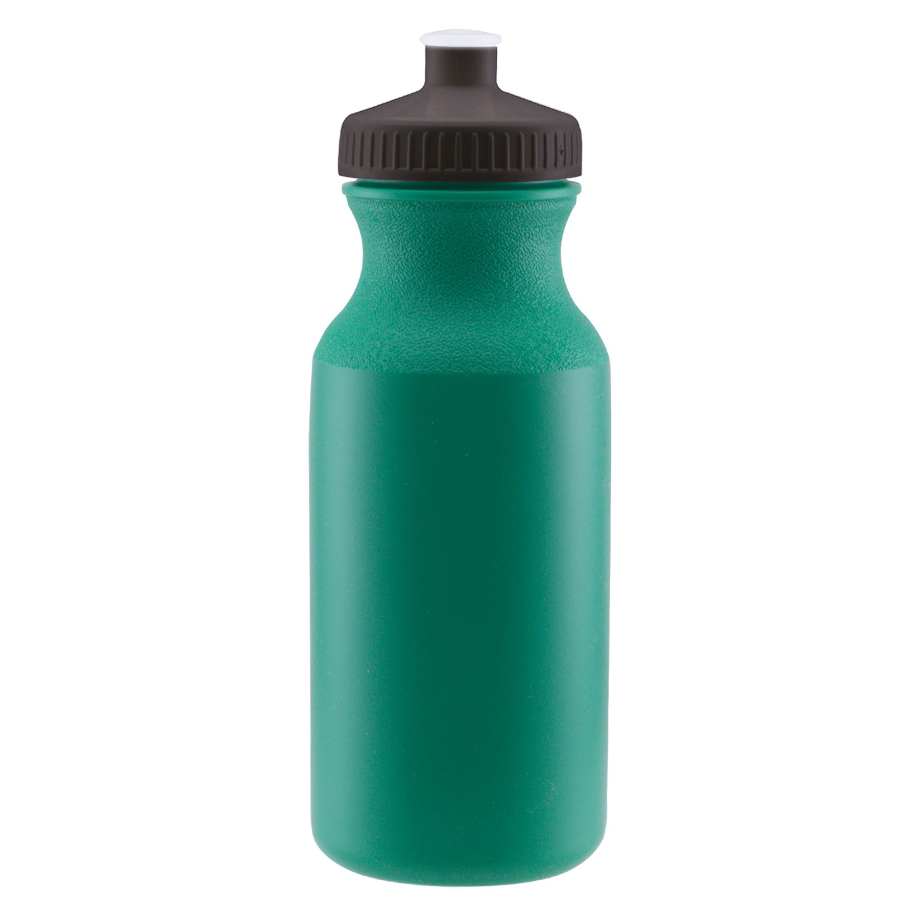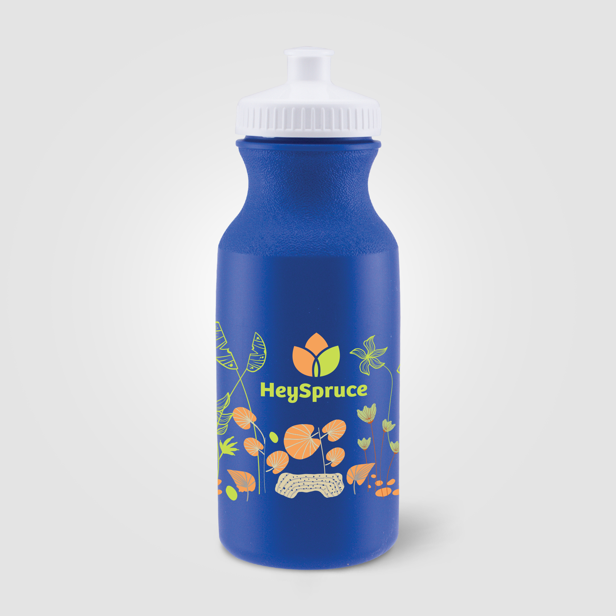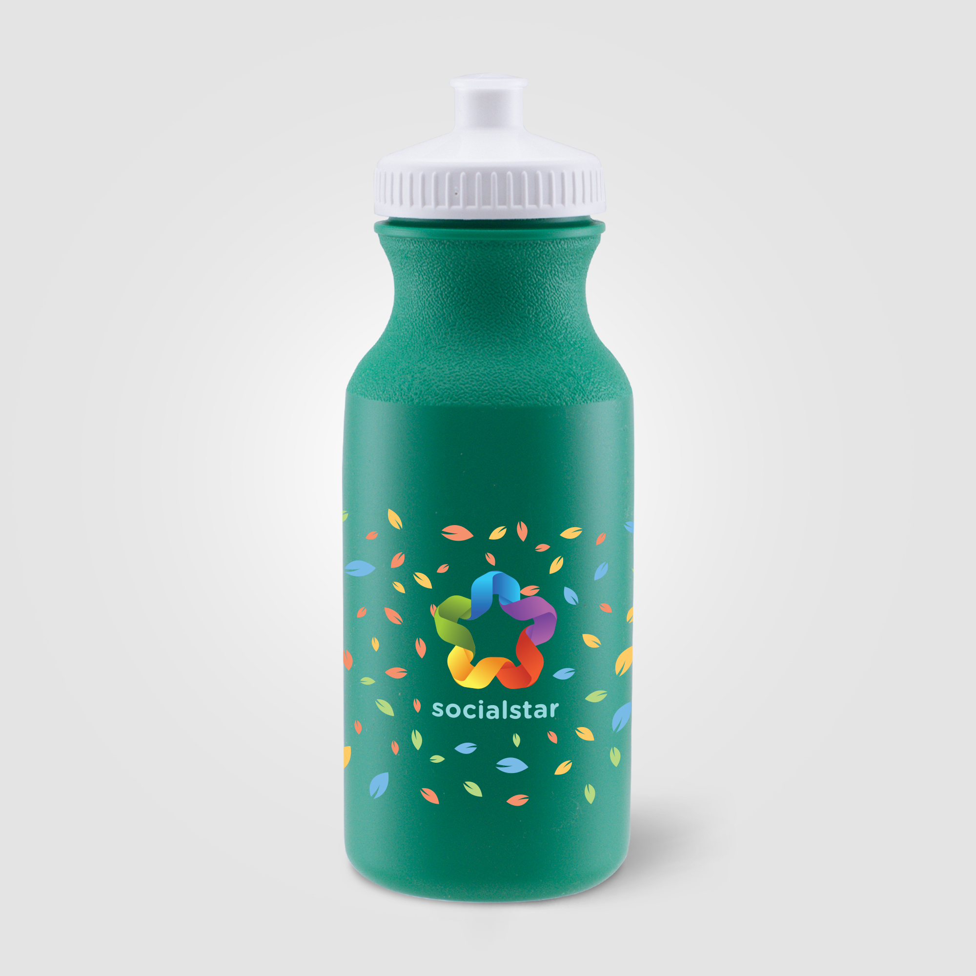 Made in USA. The 20 oz. Bike II Sports Bottle comes in popular colors designed to complement your logo. This lightweight HDPE plastic bottle has a push/pull spout lid and a contoured body for fast, easy hydration, and branding on the go. Up to 30% recycled material. BPA-free and lead-free. CA Prop 65 Compliant and FDA Approved. Hand wash only.