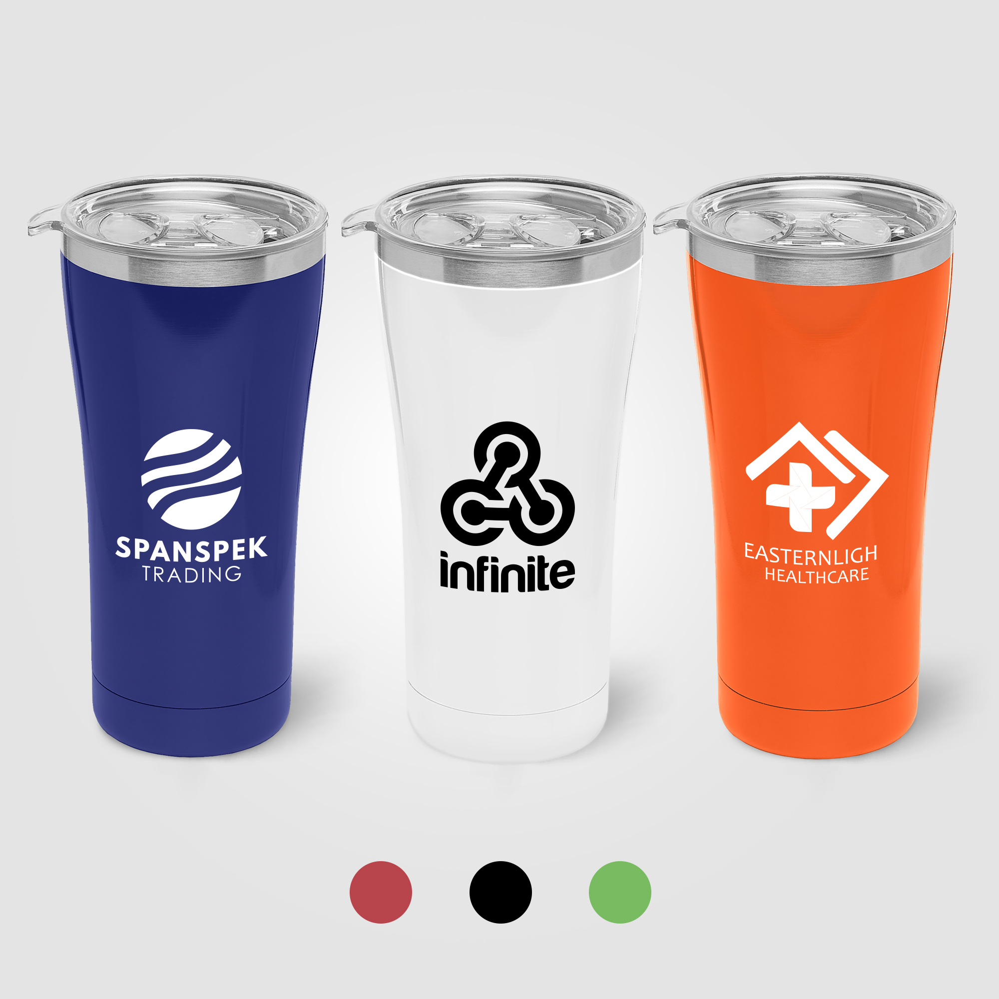 Set out on your next adventure with the Voyage travel companion. This stylish and tall 21 oz. tumbler features a stainless steel contoured base, available in a variety of popular colors to match your brand. Designed for daily use, it includes a clear plastic snap-on, spill-resistant sip-top lid. The Voyage is vacuum-insulated, making it perfect for both hot and cold beverages, keeping drinks at the ideal temperature for up to 6 hours. Customize with a 1-color silkscreen imprint. CA Prop 65 compliant, BPA free, and meets all FDA requirements.