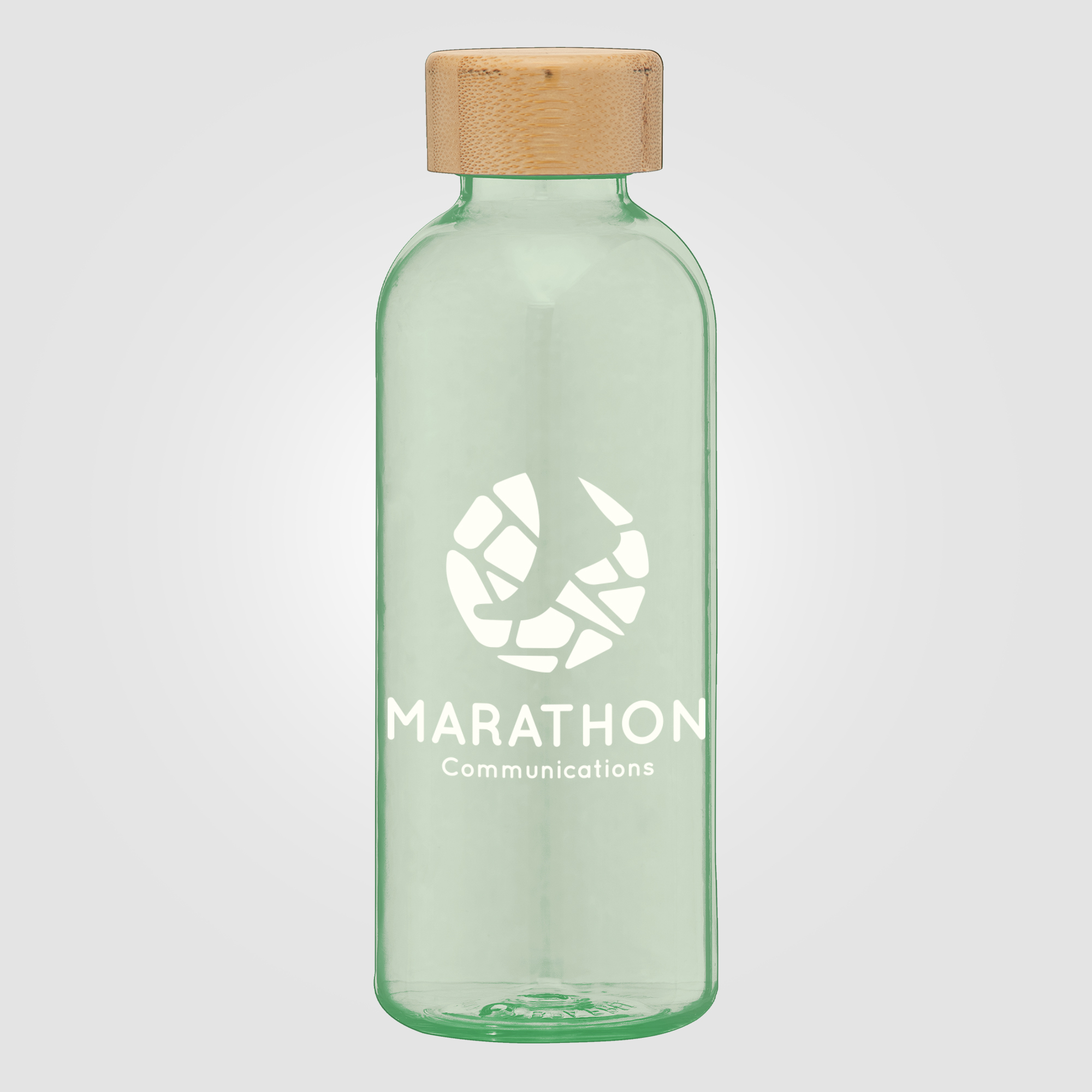 The Strom 22 oz. Water Bottle pairs everyday functionality with a modern, natural finish. Made from lightweight rPET plastic, this single-wall bottle is ideal for cold beverages on the go. It features a twist-on lid with a smooth bamboo outer surface and a secure leakproof seal. The wide-mouth opening makes it easy to refill, while the clean, minimalist design is perfect for active routines, daily commutes, or desktop hydration.. Show your brand's true colors with ColorJet, our full-color inkjet imprint process.
