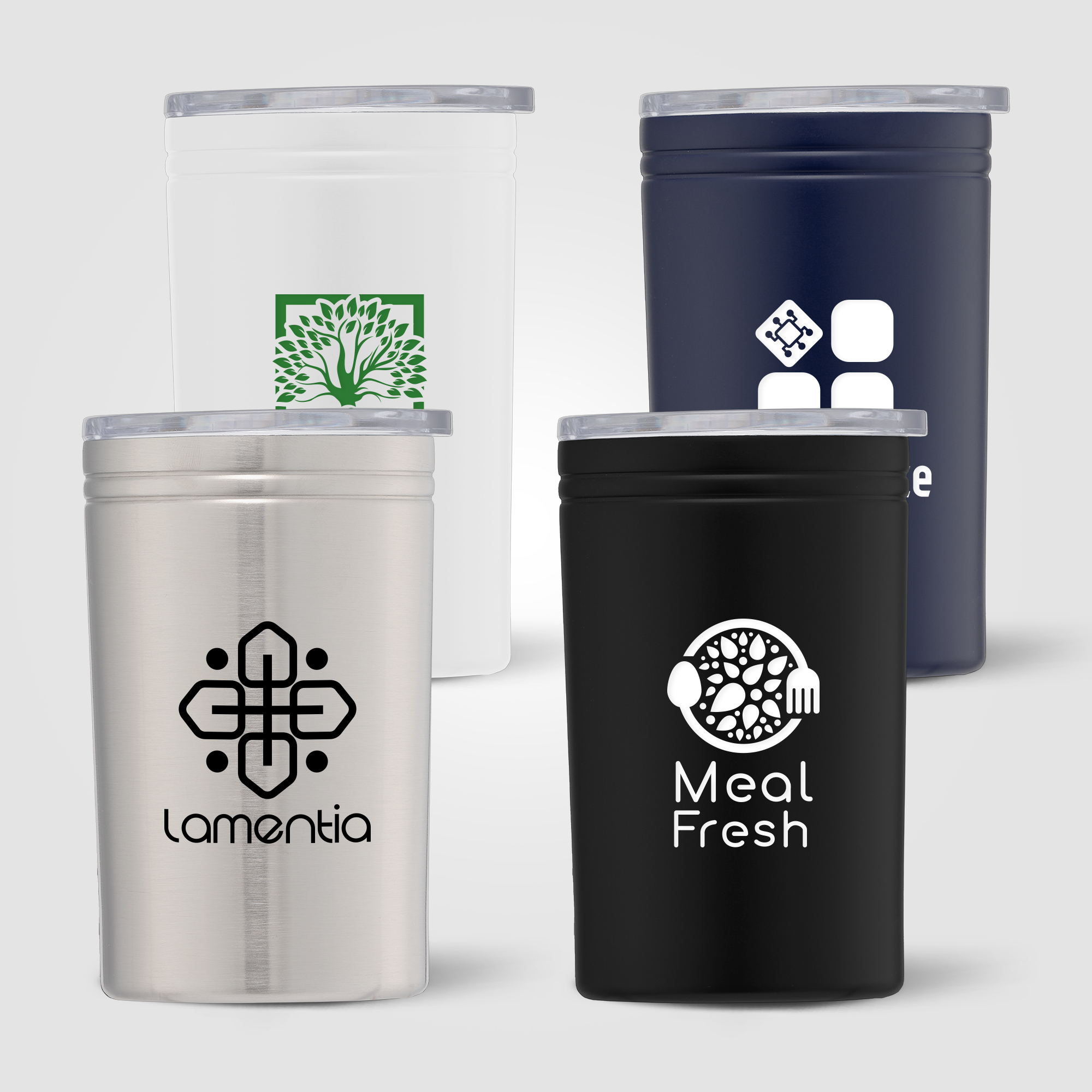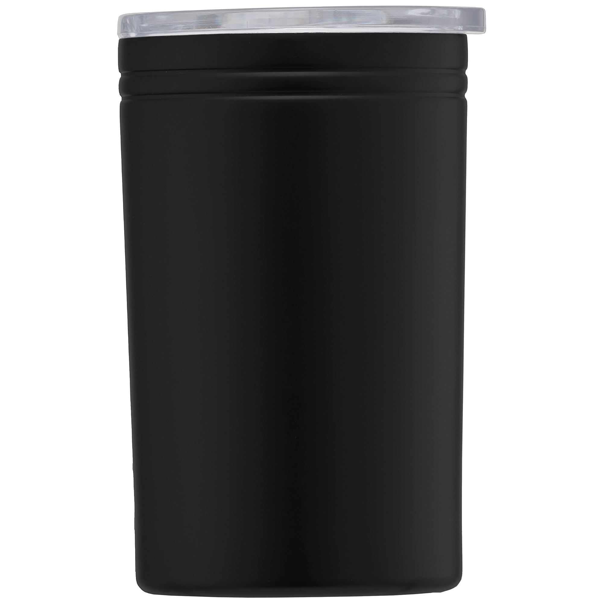 Our Chill 11 oz. 2-in-1 tumbler offers two great functions in one product. It's a vacuum insulated tumbler, with double wall stainless steel construction that helps keep beverages warm for up to 5 hours or cold up to 15 hours when used as a tumbler. There's a convenient clear lid with slide closure. Then when you're ready for a cold one, just remove the lid and insert your favorite 12 oz. beverage can. It keeps your drink cool, so you can chill! .