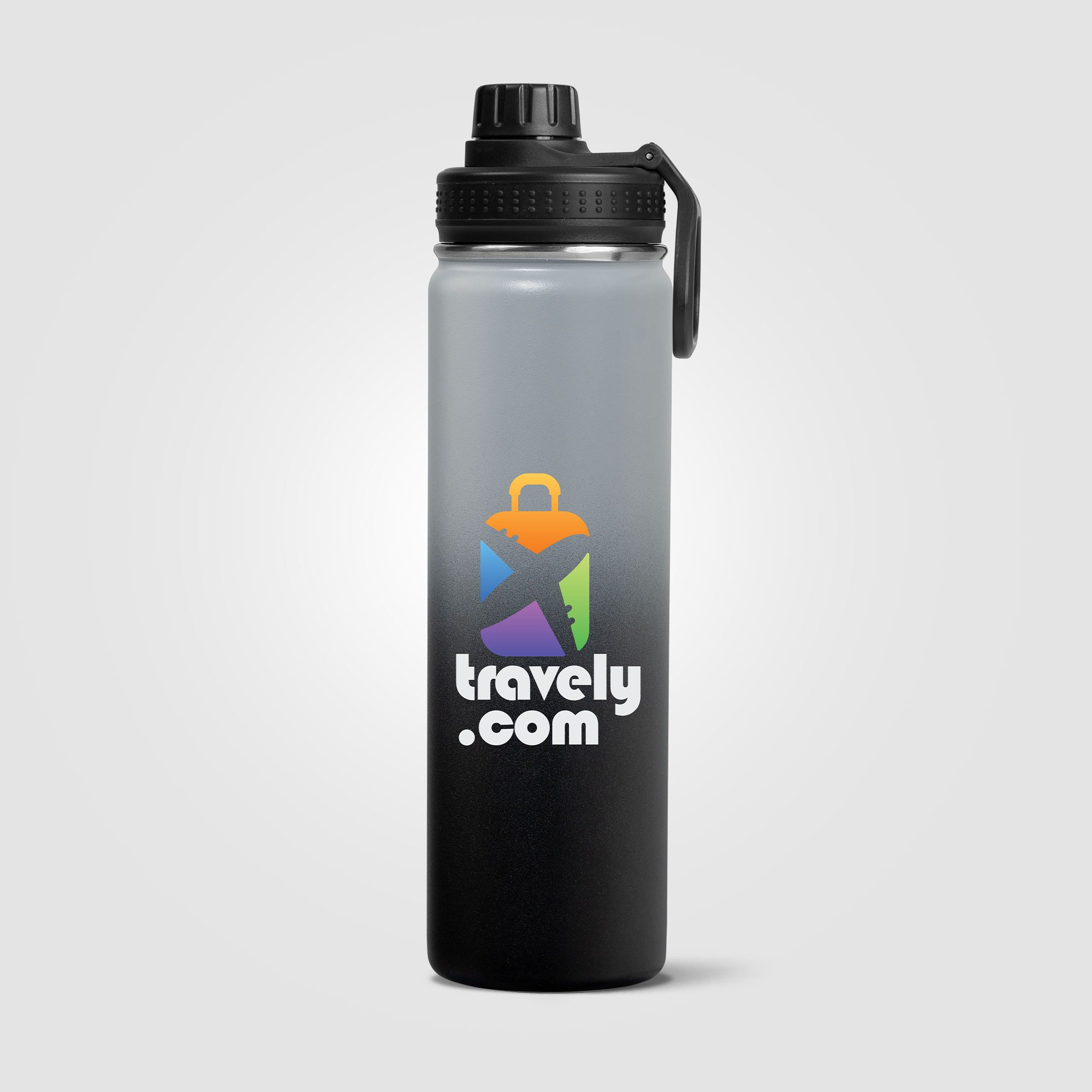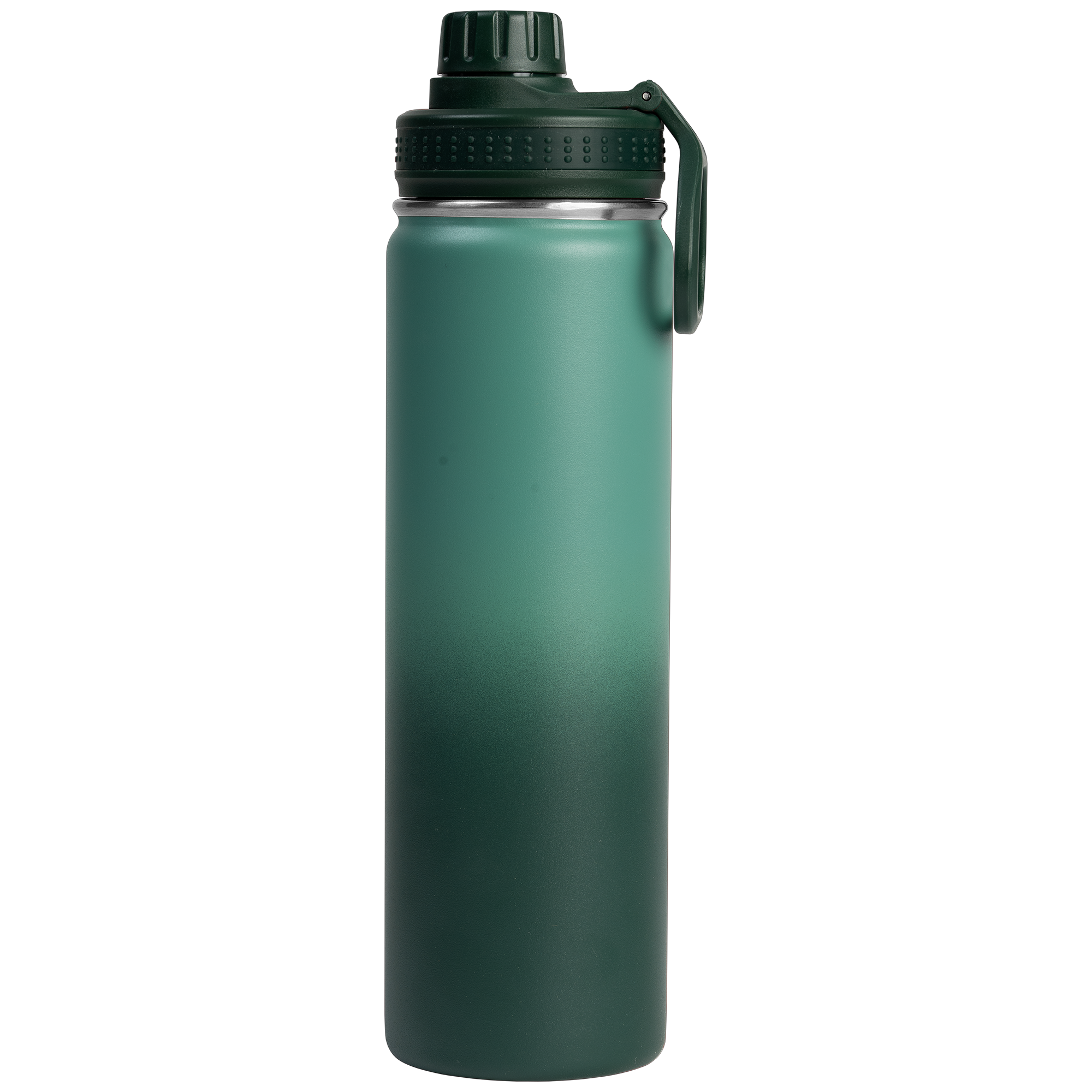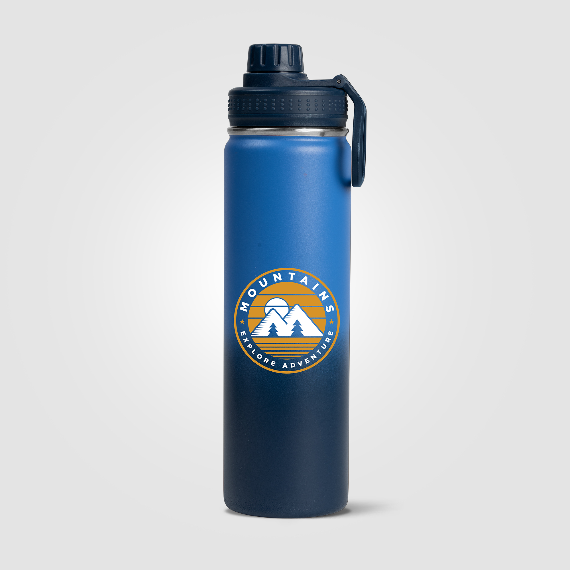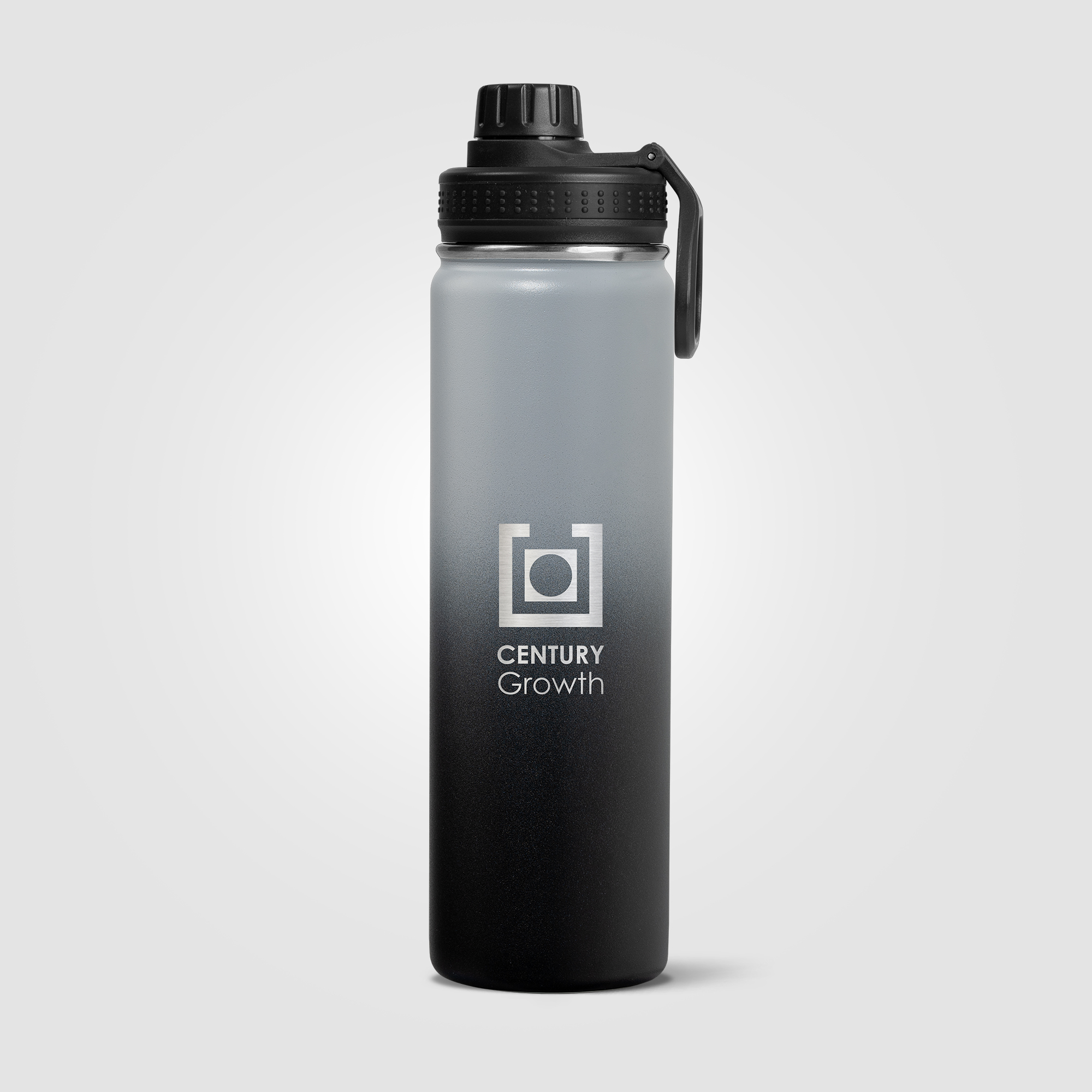 Our Alaska Ombre 24 oz Stainless Steel Double Wall Water Bottle has a beautiful ombre color gradient powder coating that is chip repellent and durable. Enjoy a Stainless Steel, Double wall vacuum water bottle with screw-on, leakproof lid, and carry handle. This generously sized water bottle can keep drinks cold for up to 6 hours. The Alaska bottle is a great way to help people keep hydrated, while showing off your company logo all day, every day. .