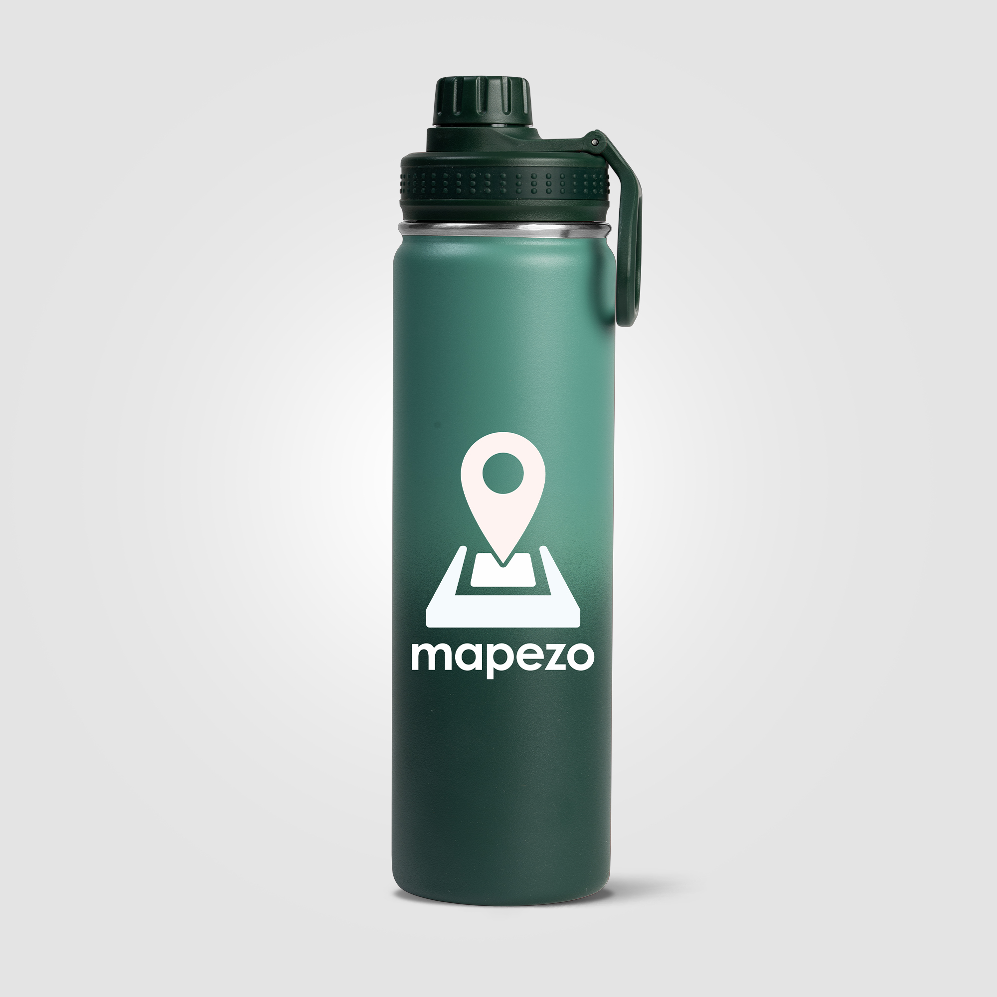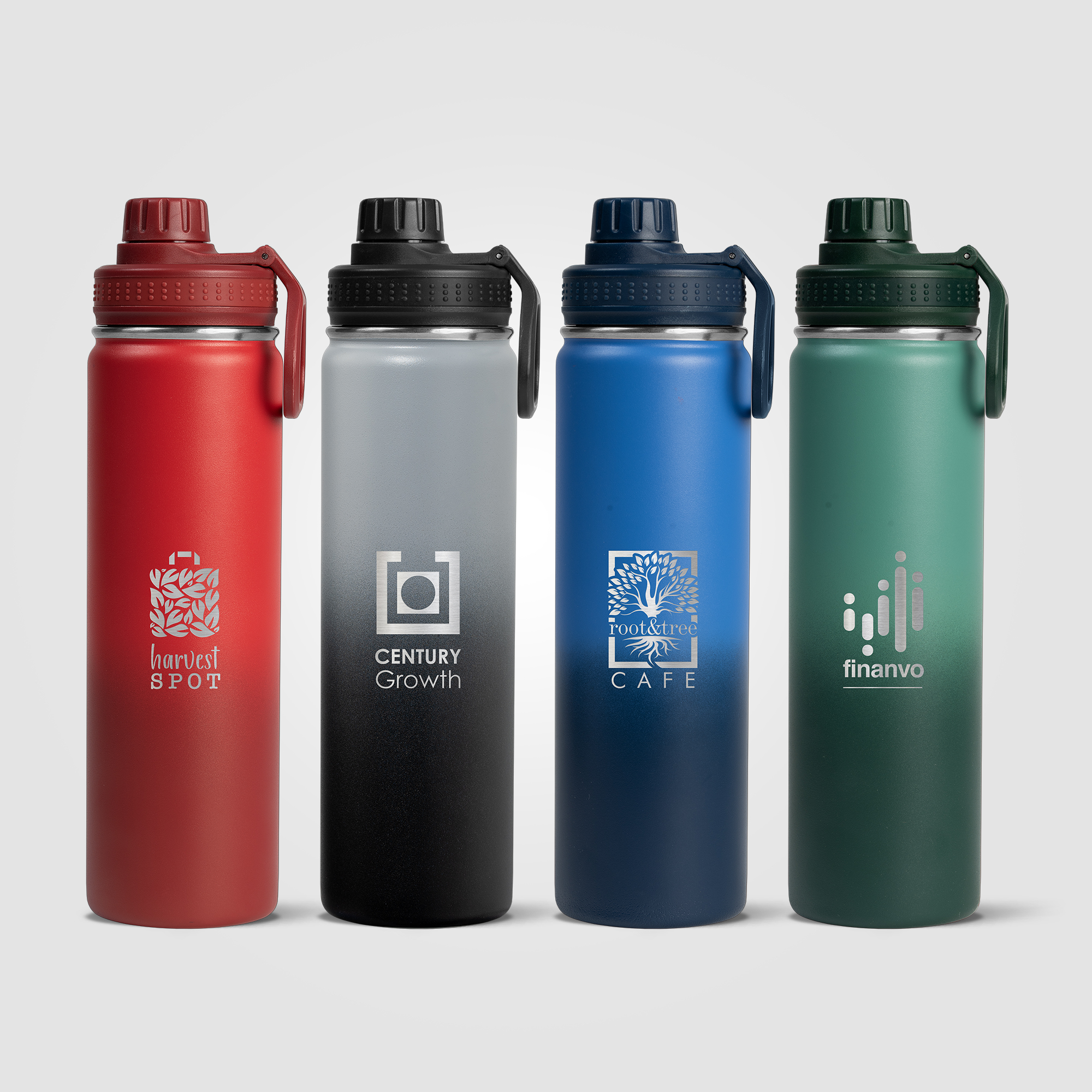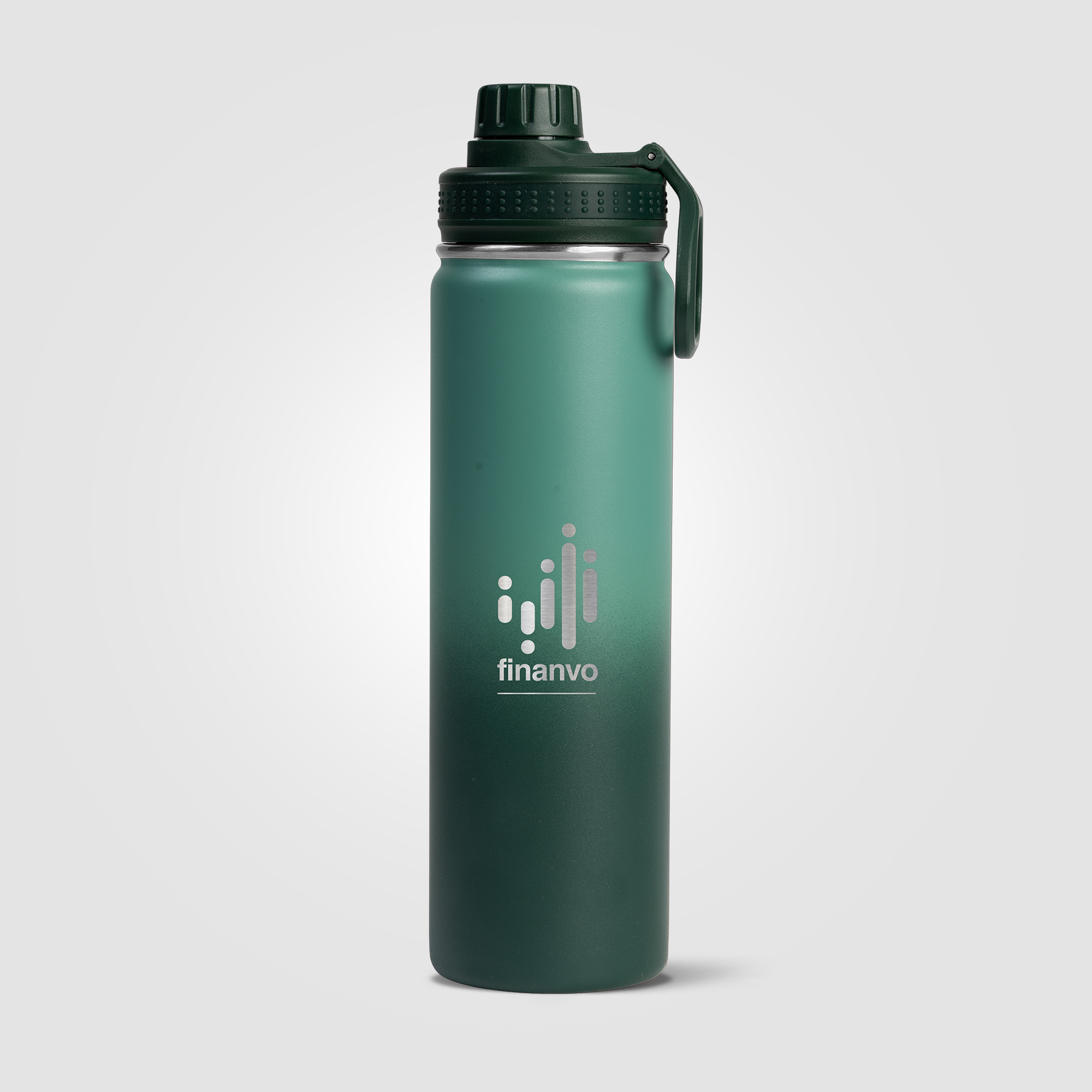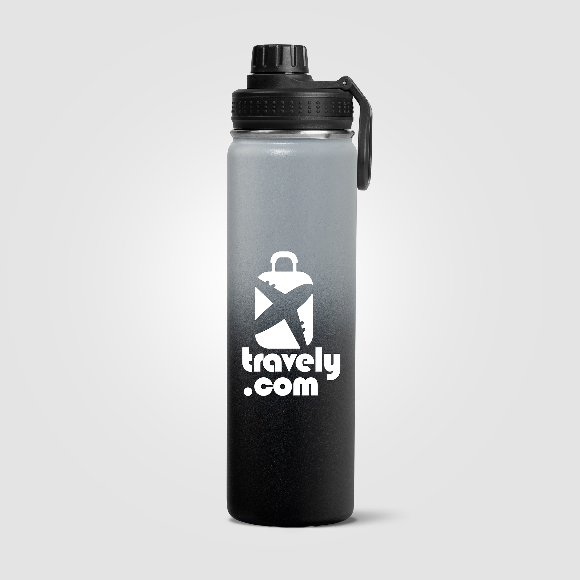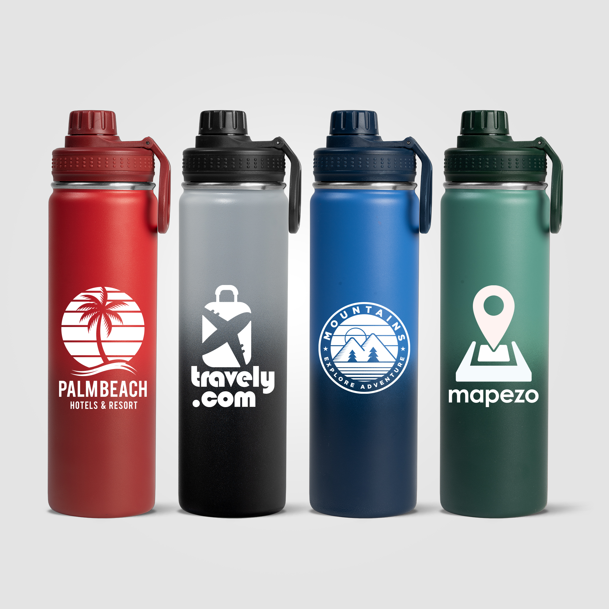 Our Alaska Ombre 24 oz Stainless Steel Double Wall Water Bottle has a beautiful ombre color gradient powder coating that is chip repellent and durable. Enjoy a Stainless Steel, Double wall vacuum water bottle with screw-on, leakproof lid, and carry handle. This generously sized water bottle can keep drinks cold for up to 6 hours. The Alaska bottle is a great way to help people keep hydrated, while showing off your company logo all day, every day. .
