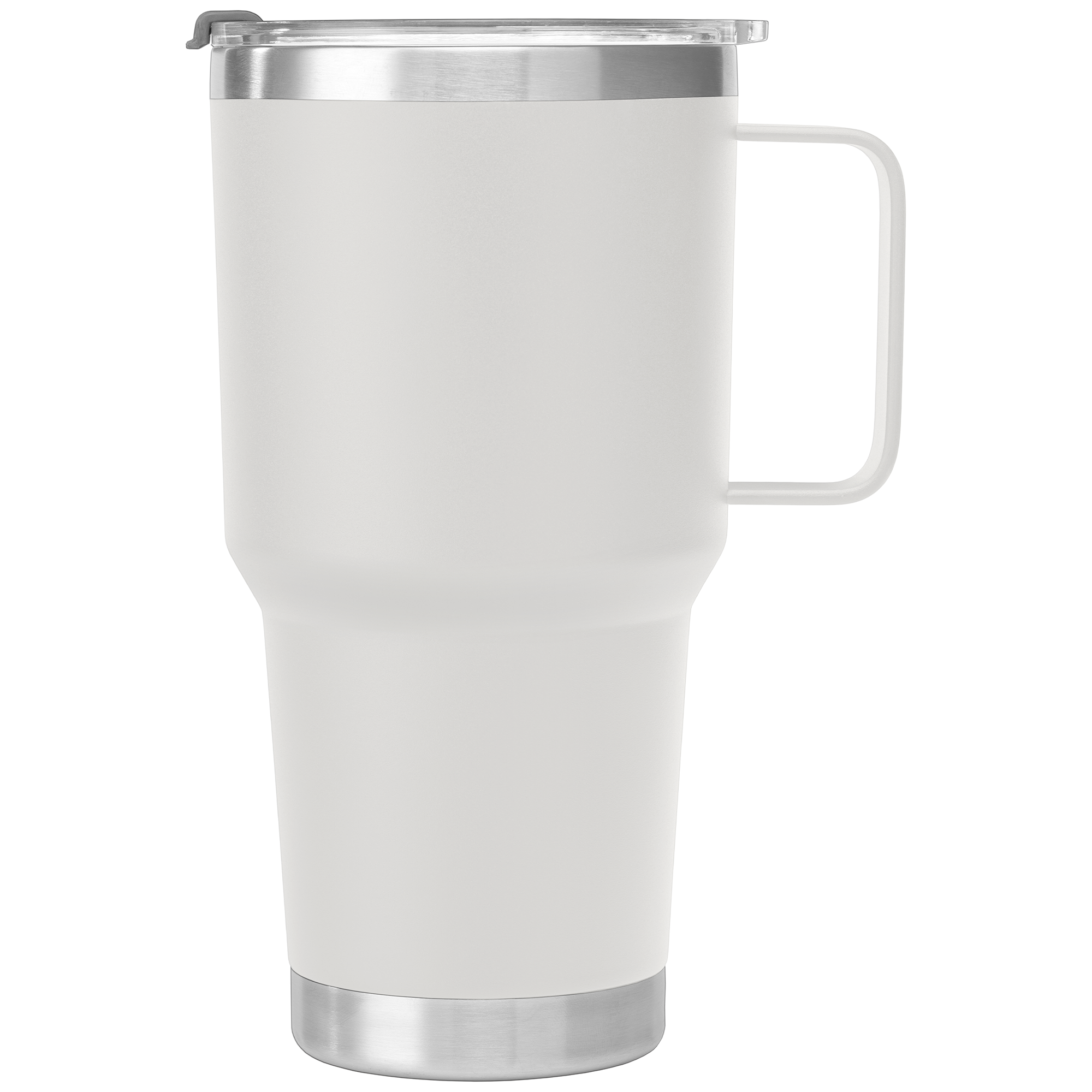 Introducing our Anchorage Pro - 30 oz. Double-Wall Recycled Stainless Steel Tumbler - a mindful option the outer and inner are made of recycled 304 stainless steel and the lid is made of recycled AS (Acrylonitrile Styrene). With a Double walled vacuum insulation it keeps drinks hot for 8 hours and cold for 24 hours. The tumbler boasts a 30 oz. Capacity and features an ergonomic handle, chrome accents and a matte finish powder coating. Measuring 7.68" × 2.87", it fits car cup holders. Your logo will be imprinted in Laser Engraving.