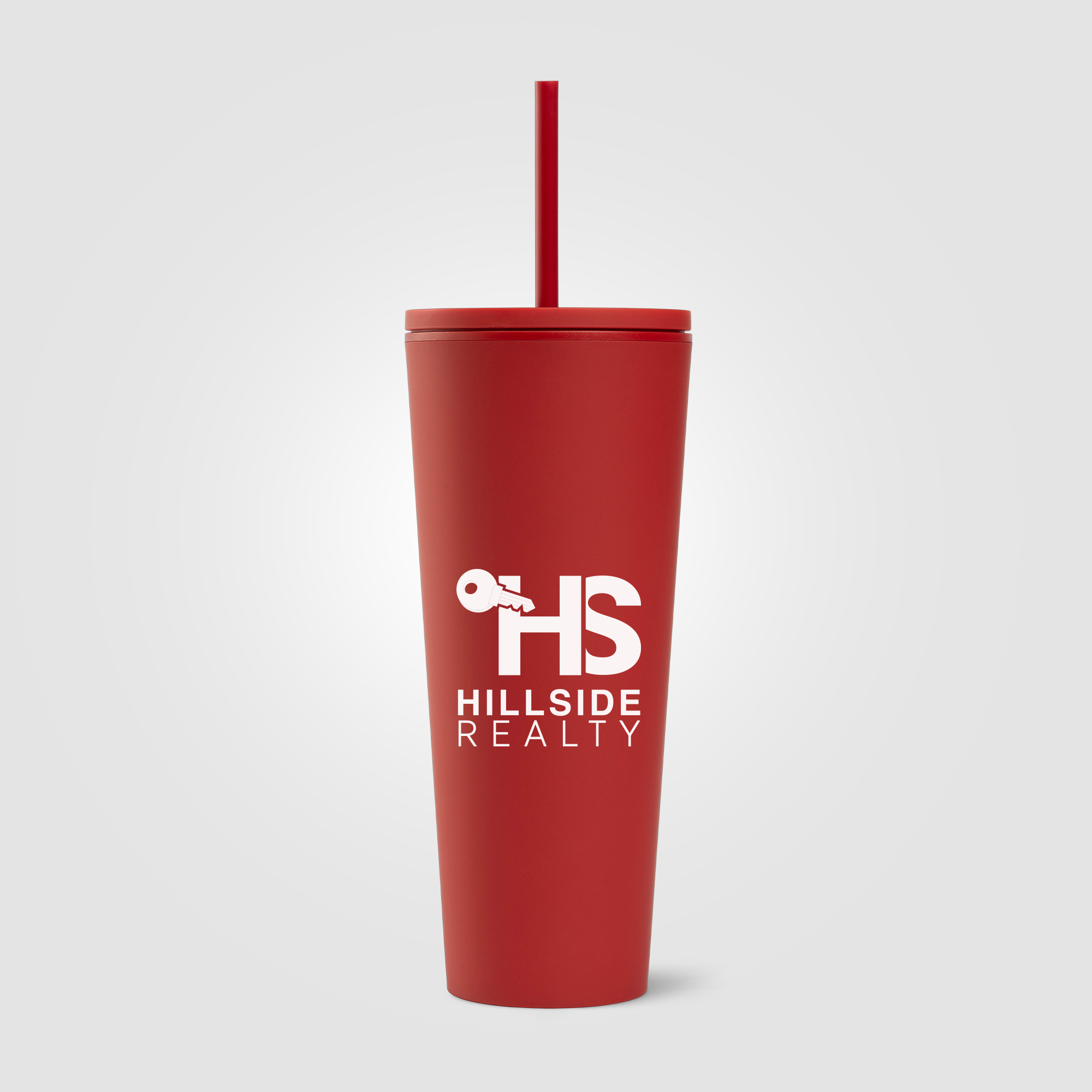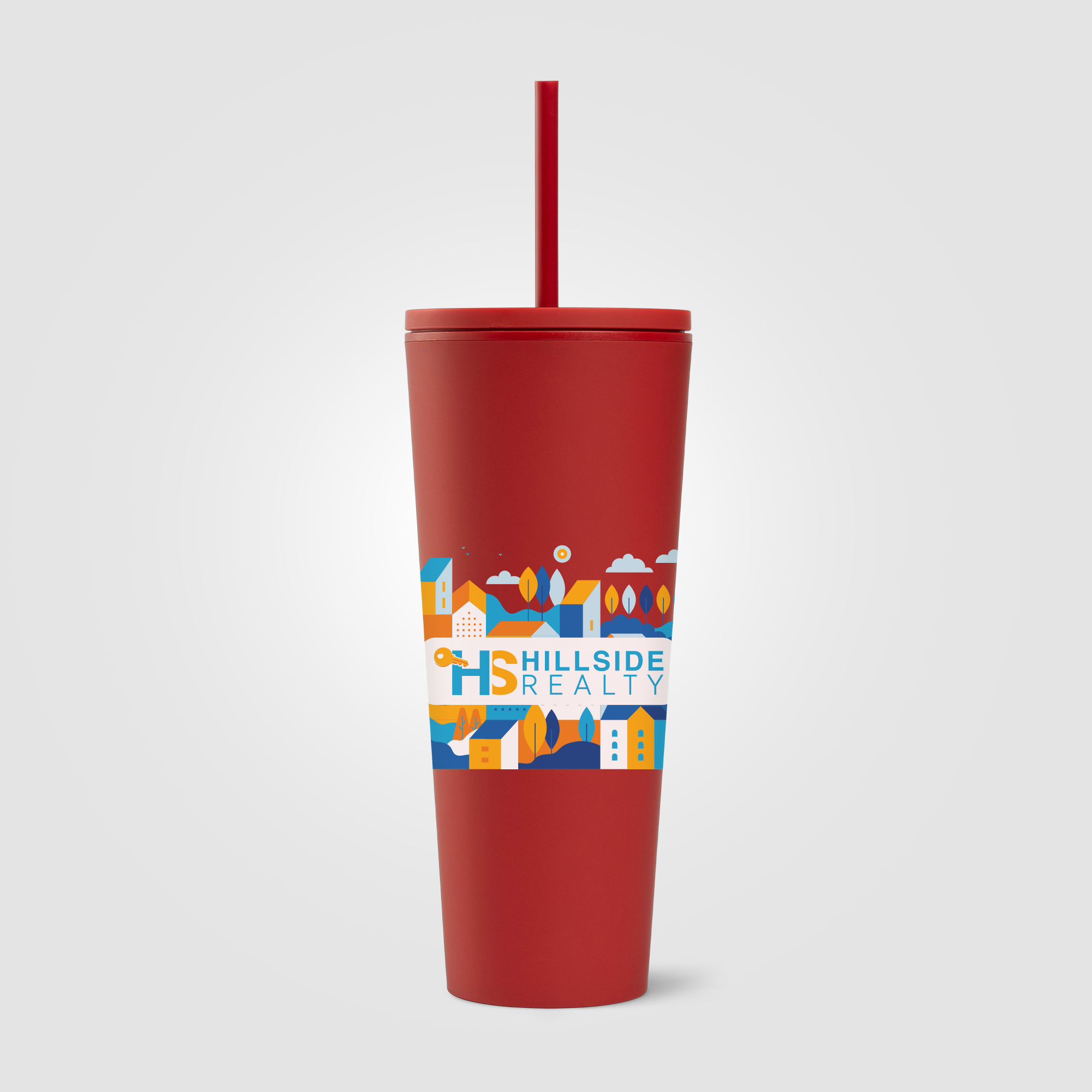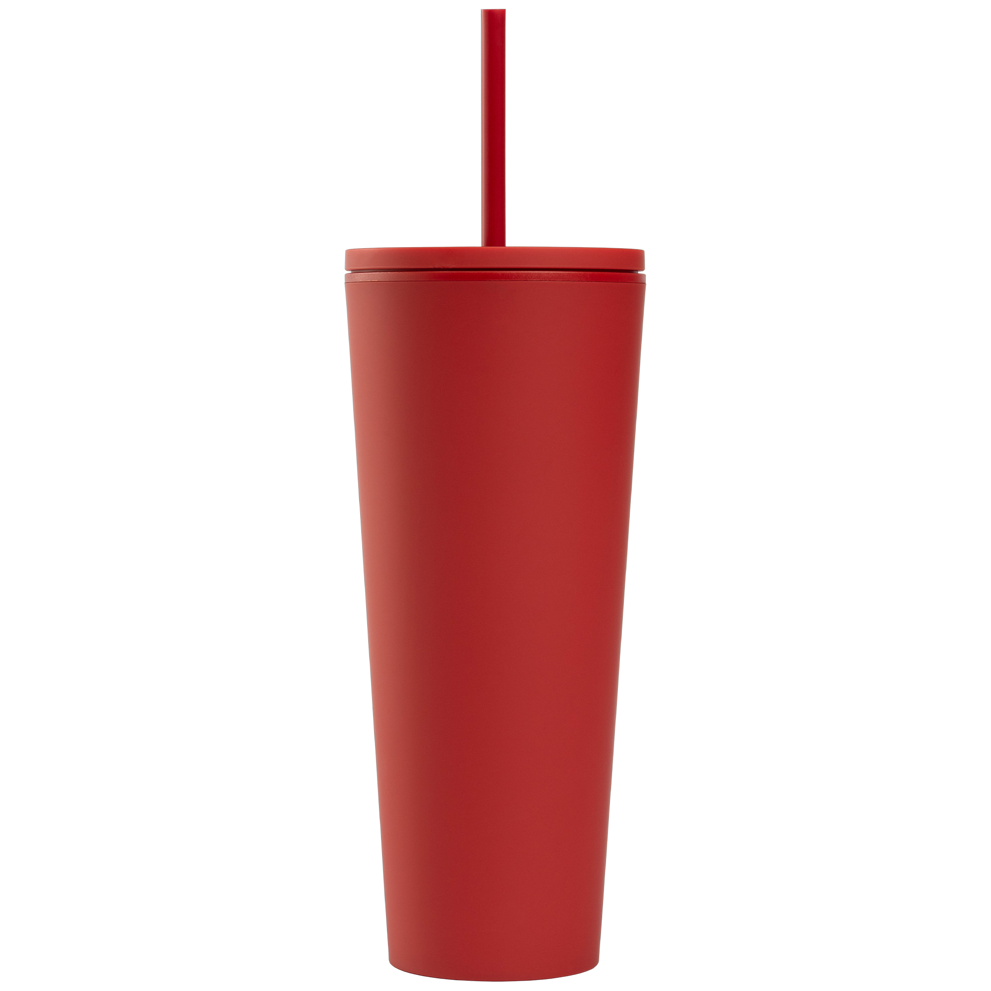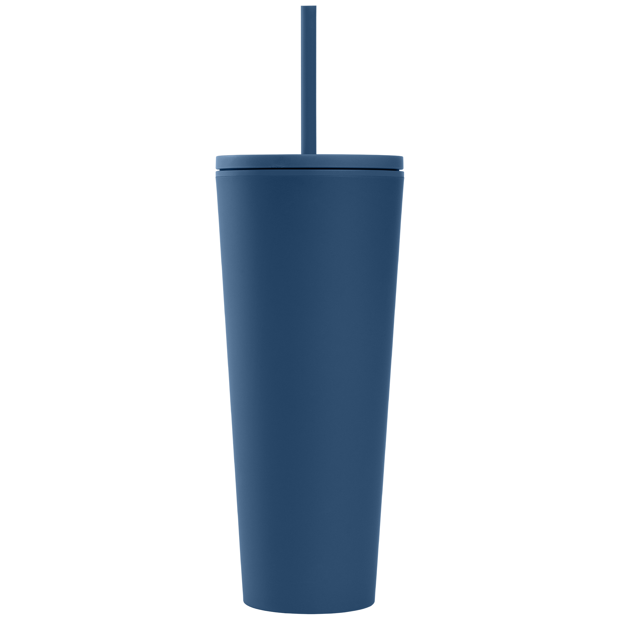 Spire - 24 oz Soft Touch Double Wall Recycled Plastic Tumbler w/ Straw