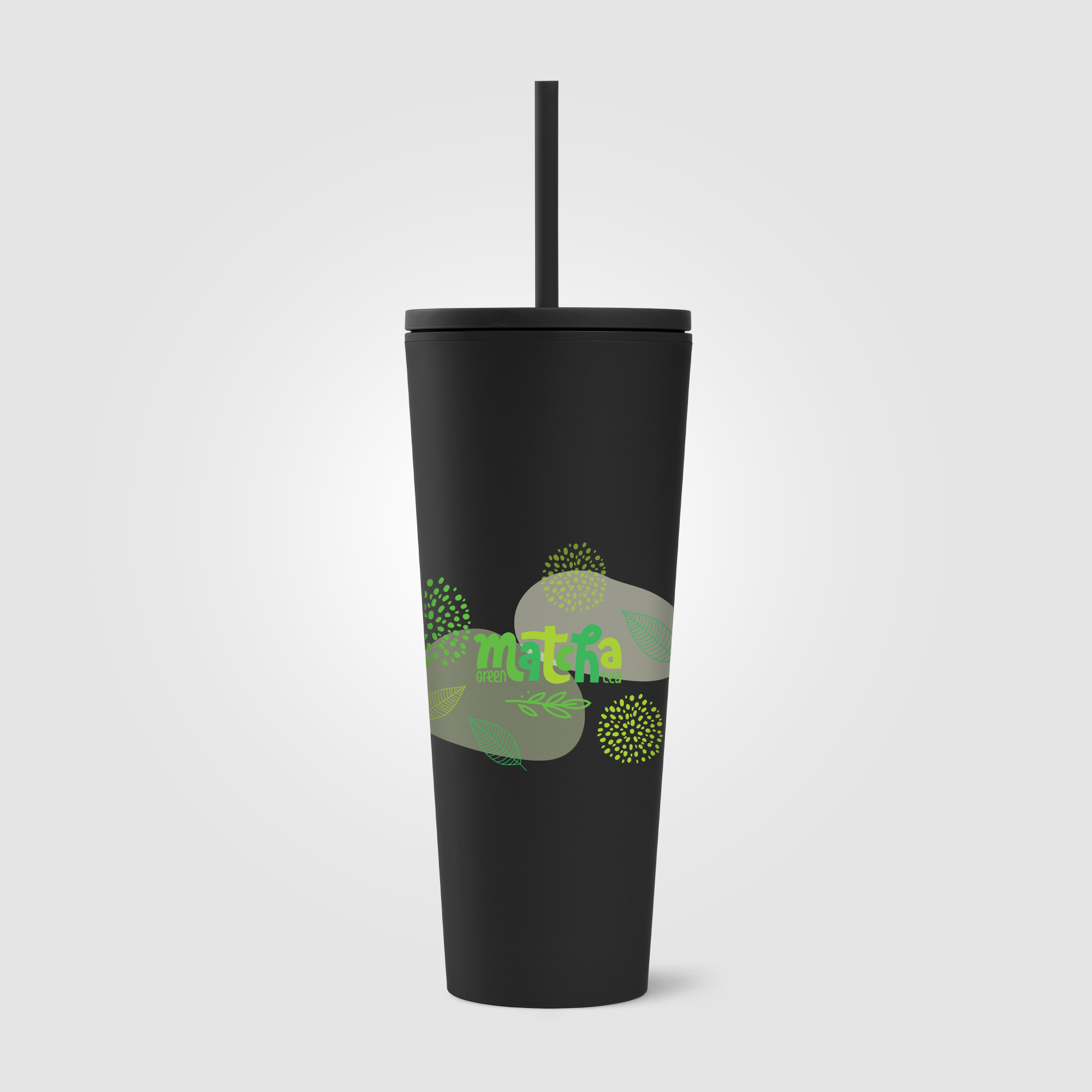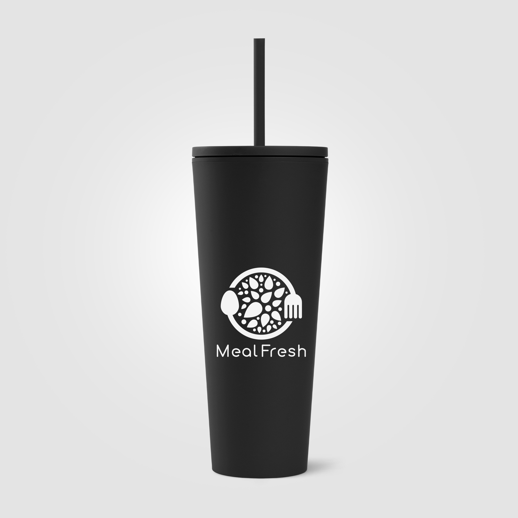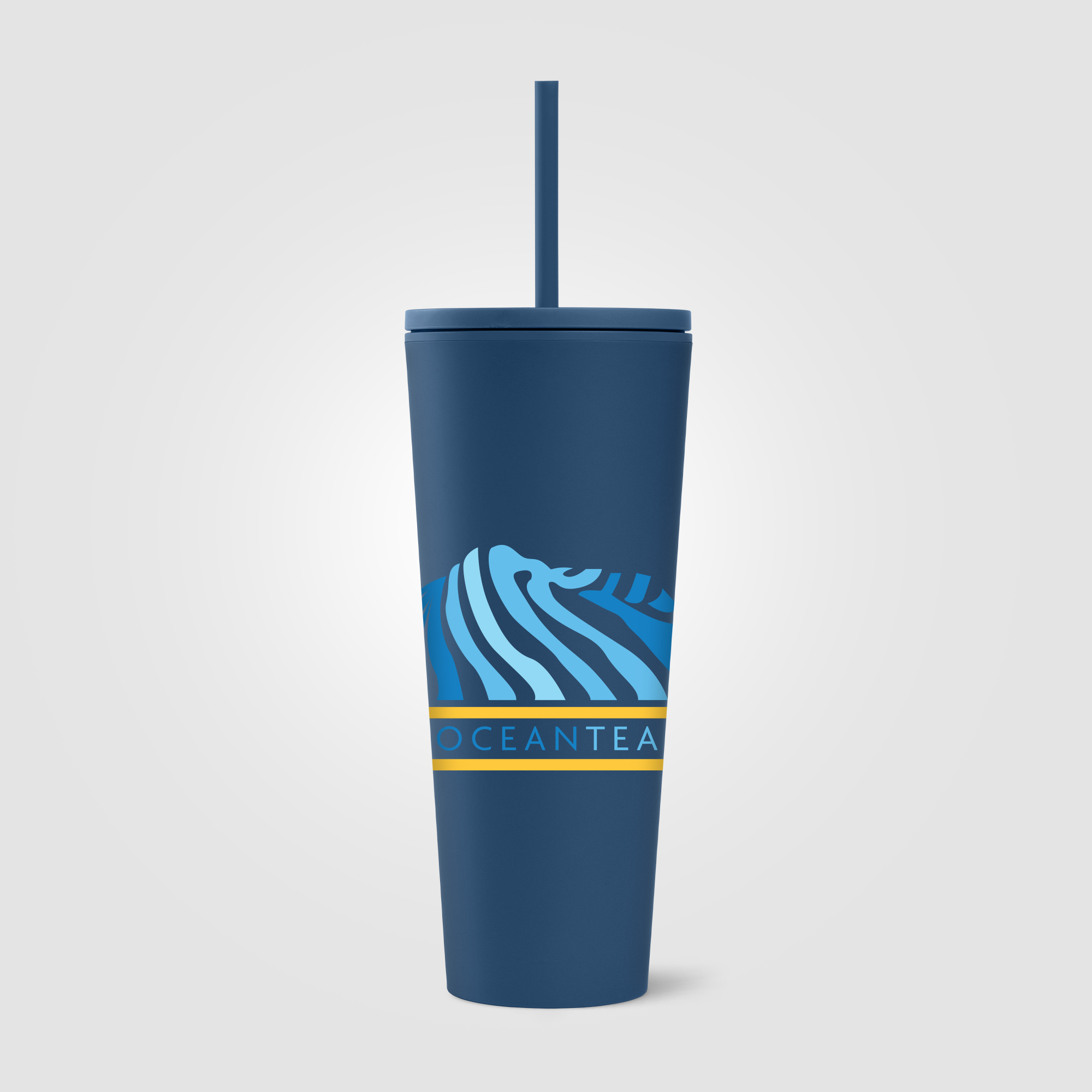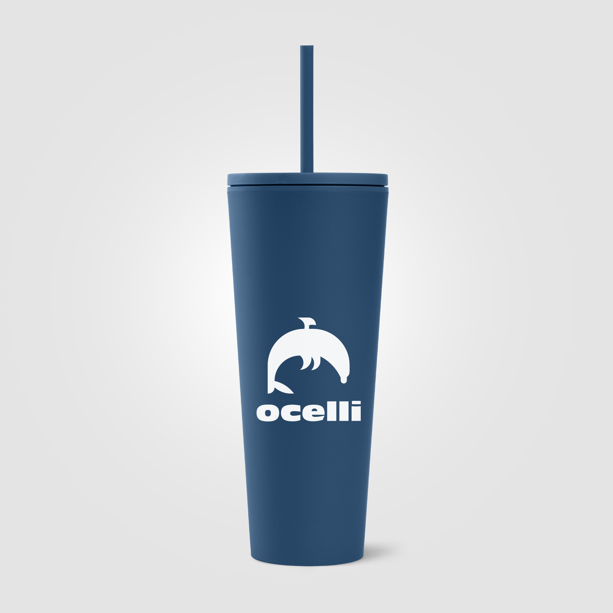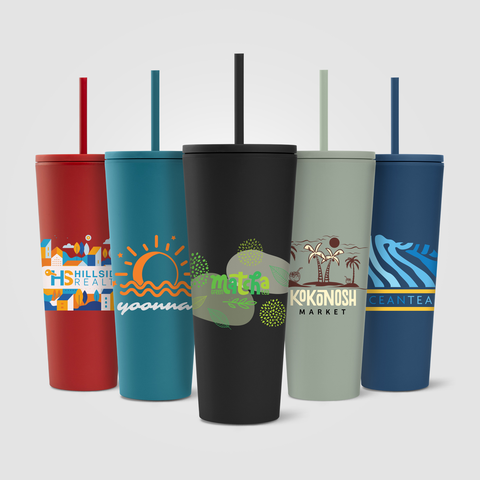 Spire - 24 oz Soft Touch Double Wall Recycled Plastic Tumbler w/ Straw