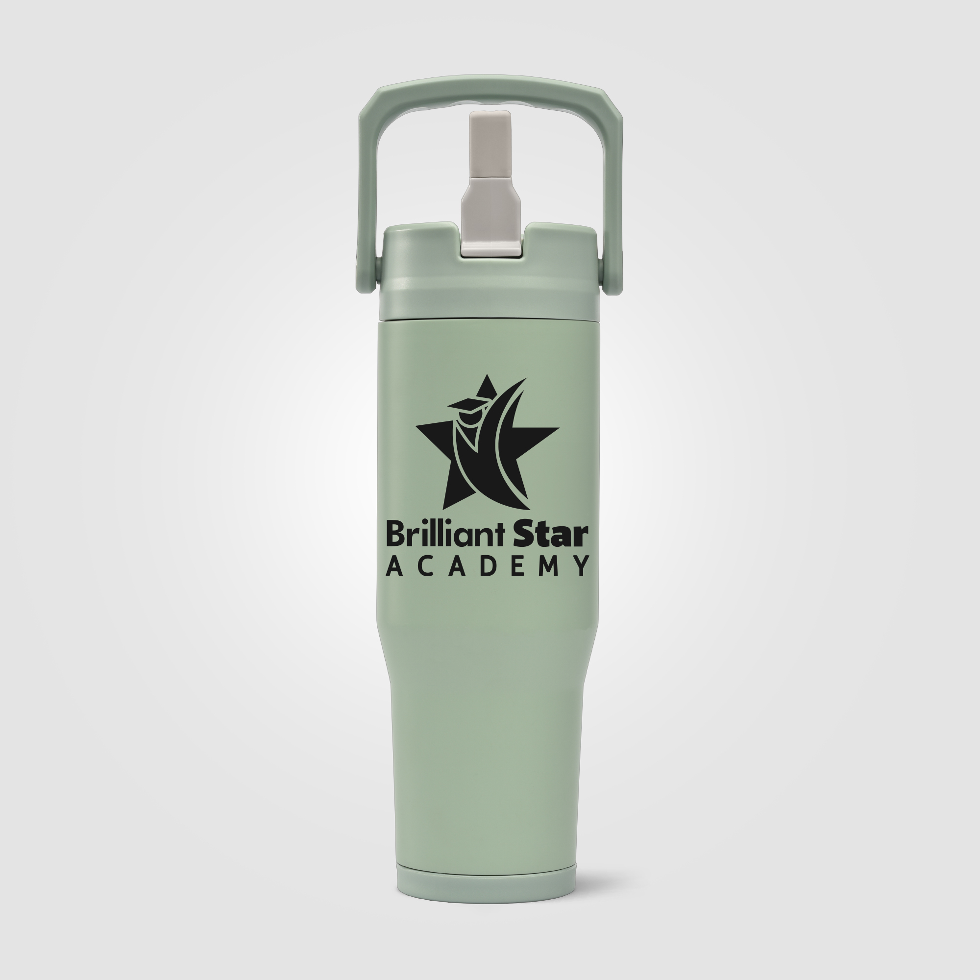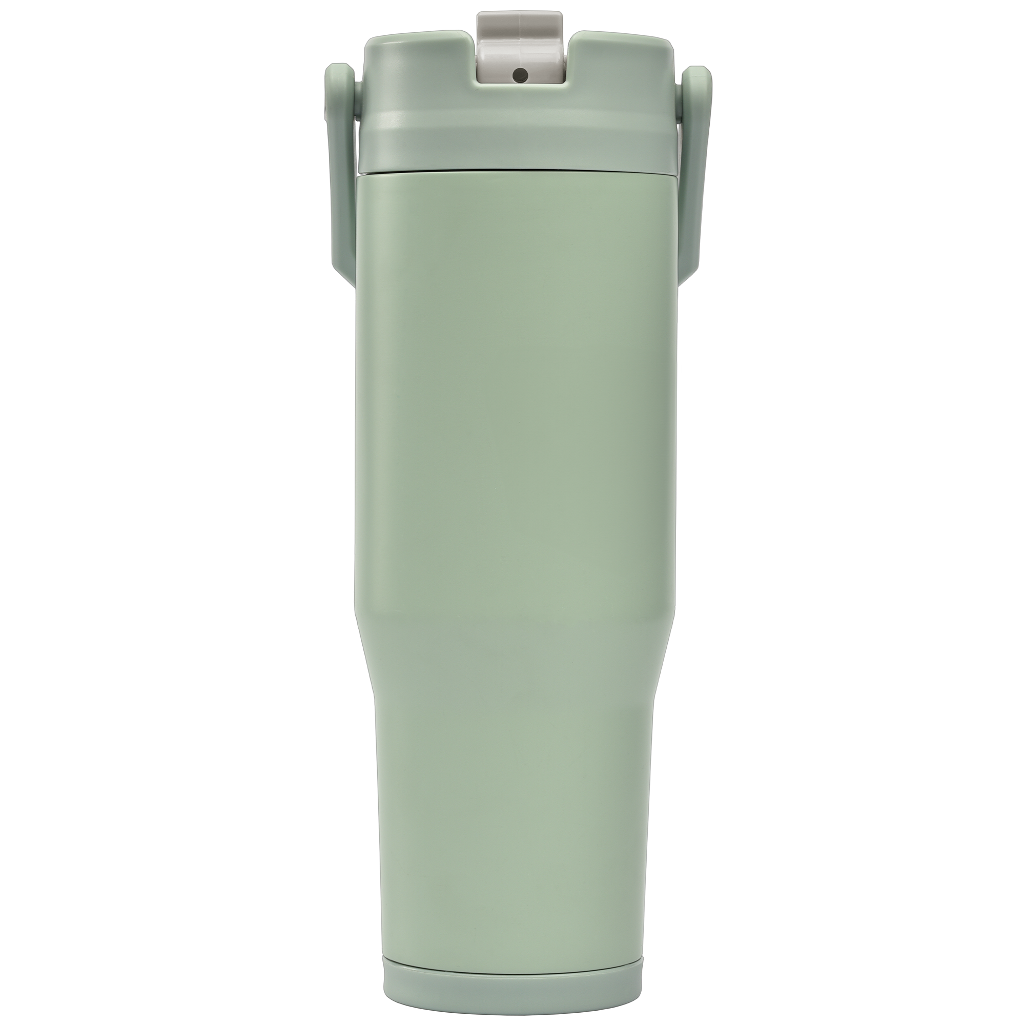 Introducing the Polar Duo - 32 oz. Double-Wall Recycled Stainless Steel Tumbler with Storage Base, crafted from 304 stainless steel for both the outer and inner body, featuring a sleek matte finish. The lid includes a PP base, AS suction nozzle, and silicone components that ensure a secure fit and prevent leaks, along with a 304 stainless steel rivet. With double-wall vacuum insulation, it keeps drinks hot or cold for up to 12 hours. Designed with a handle for easy carrying, a lid with a straw for convenient sipping, and a screw-on bottom storage compartment ideal for pills or small essentials, this BPA-free, FDA-approved tumbler is perfect for everyday use.